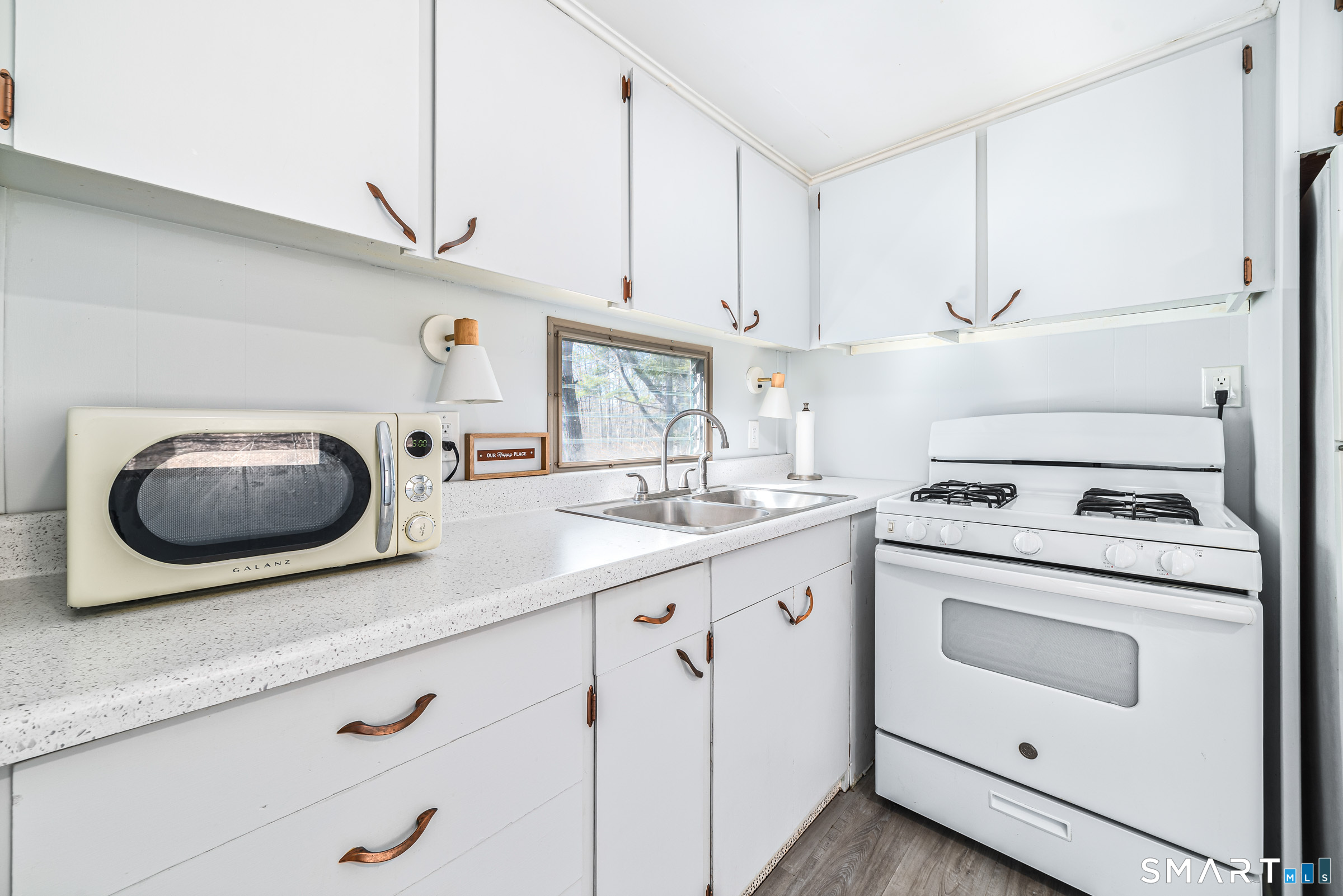 Fresh, Updated and RETRO-VIBED 2 BR w/Oversized 1 Car Garage, shed with a large, flat backyard-on private lot (this is NOT part of a park - no assoc fees) New Electrical, Fresh paint, new flooring, washer/dryer, new hot water heater. Conveniently located and Great alternative to condo living !! CASH TRANSACTION ONLY - FINANCING NOT AN OPTION (NO VIN #)