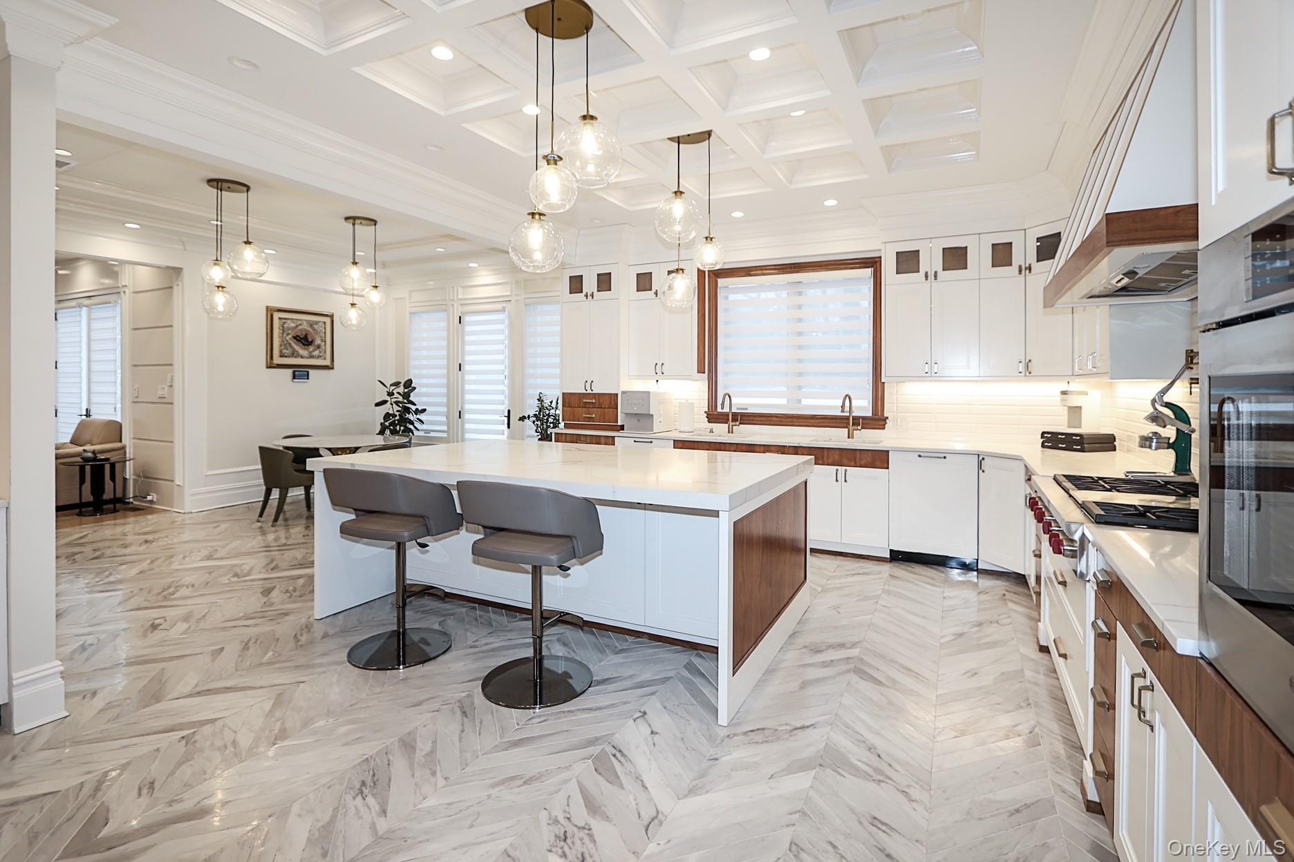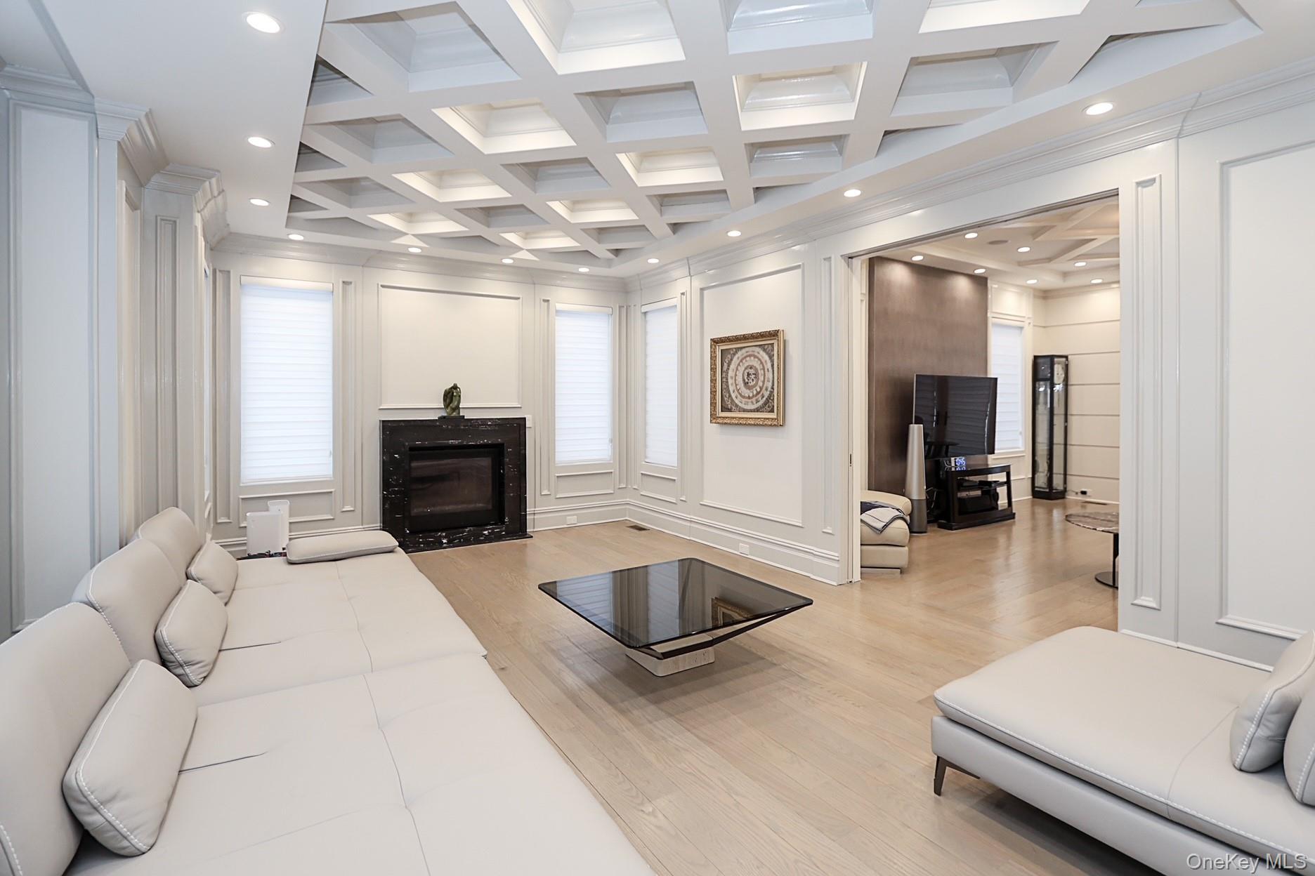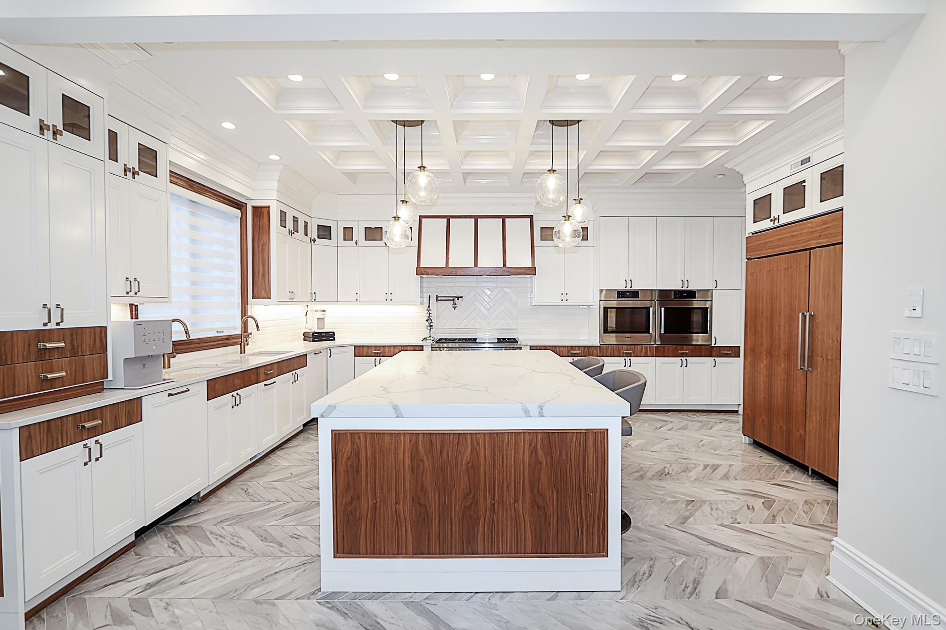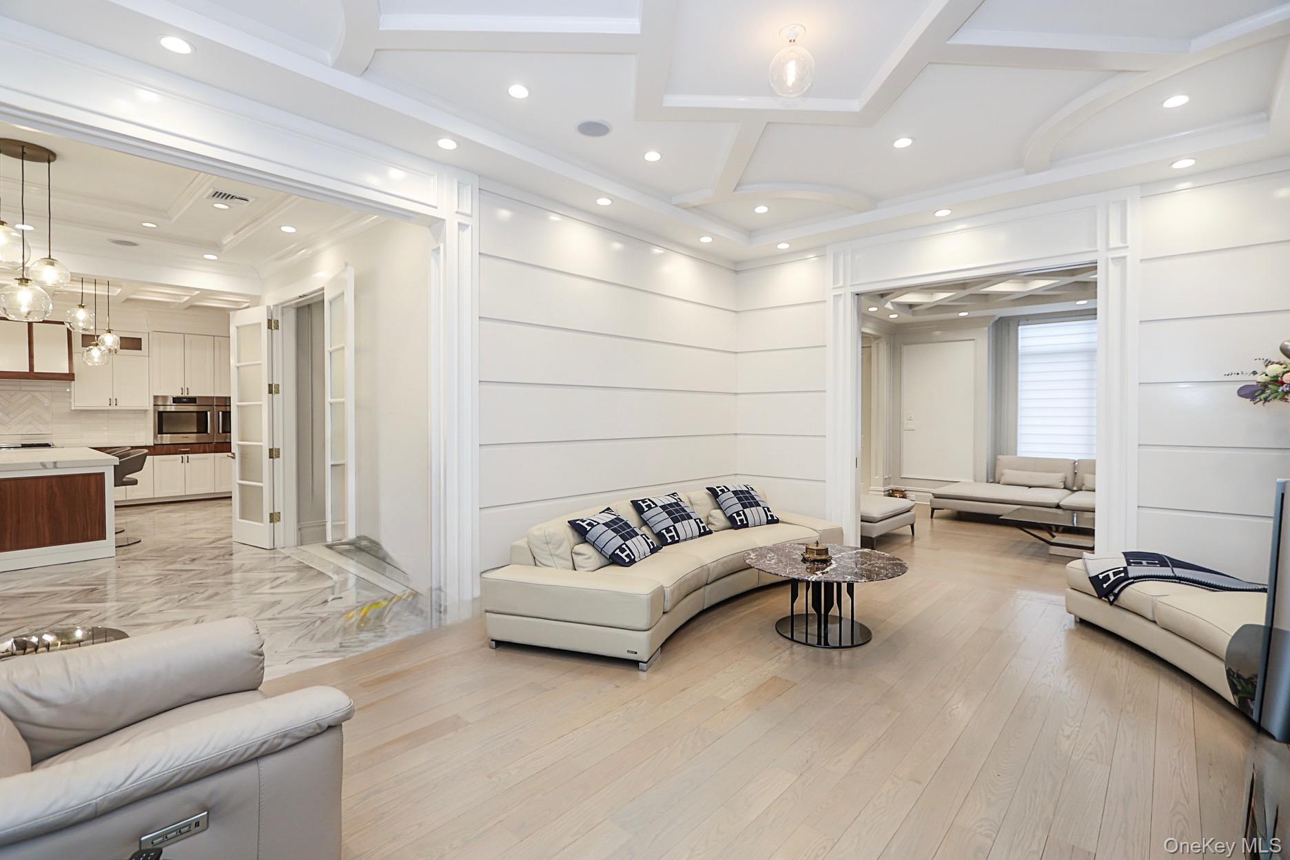 This magnificent Center Hall Brick Colonial showcases newer construction and represents the true epitome of luxury and sophistication. Thoughtfully designed with a fabulous flow for both grand entertaining and comfortable family living, this exceptional residence features high ceilings, superior craftsmanship, and elegant coffered ceilings throughout. The main level offers a grand living room, formal dining room, inviting den, and a stunning chef’s eat-in kitchen outfitted with top-of-the-line appliances. A stylish guest powder room completes the first floor. Upstairs, the luxurious primary suite boasts two spa-like baths and an expansive walk-in closet. Three additional generously sized bedrooms, three full baths, and a very large bonus room—perfect as an upstairs den, office, or playroom—provide flexible living space for today’s modern lifestyle. Additional highlights include a three-car garage and a full finished basement offering endless possibilities for recreation, a home gym, or extended living. Premium amenities abound multi-zone gas heat, central air conditioning, radiant heat, built-in speaker system, alarm system, central vacuum, sprinkler system, water purifier, and much more. This extraordinary home seamlessly blends timeless elegance with modern comfort—truly move-in ready and better than new! close proximity to houses of worship.