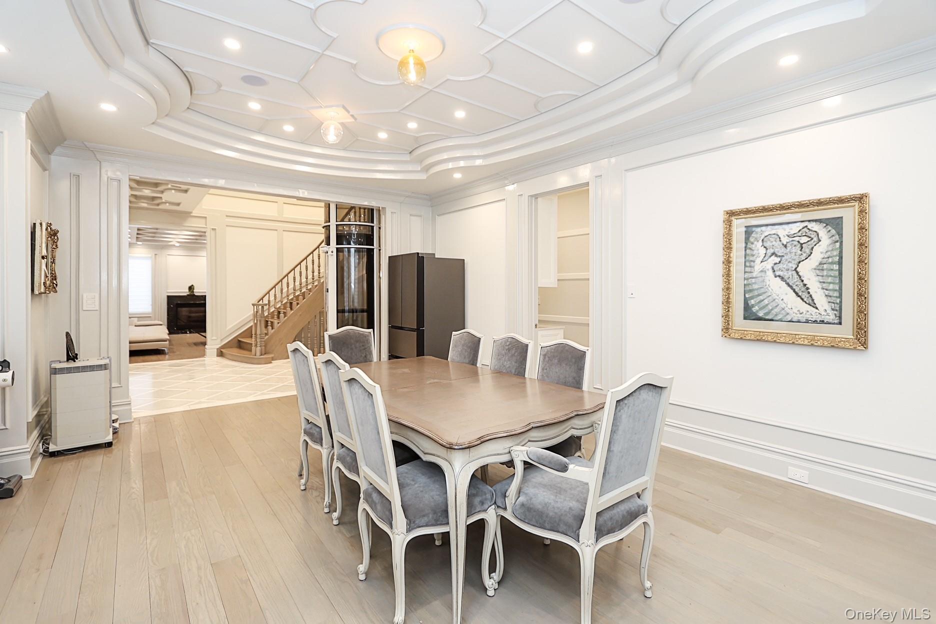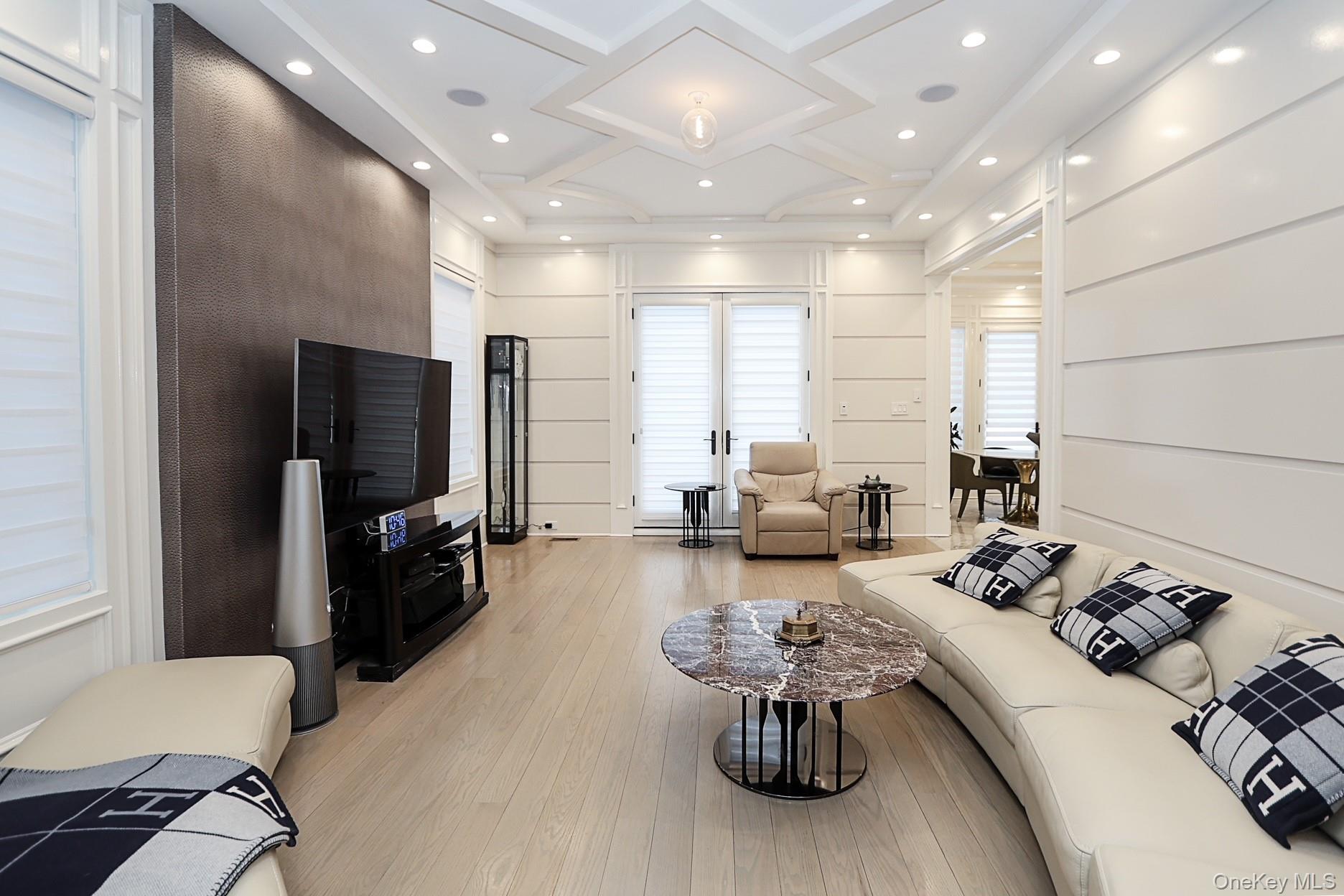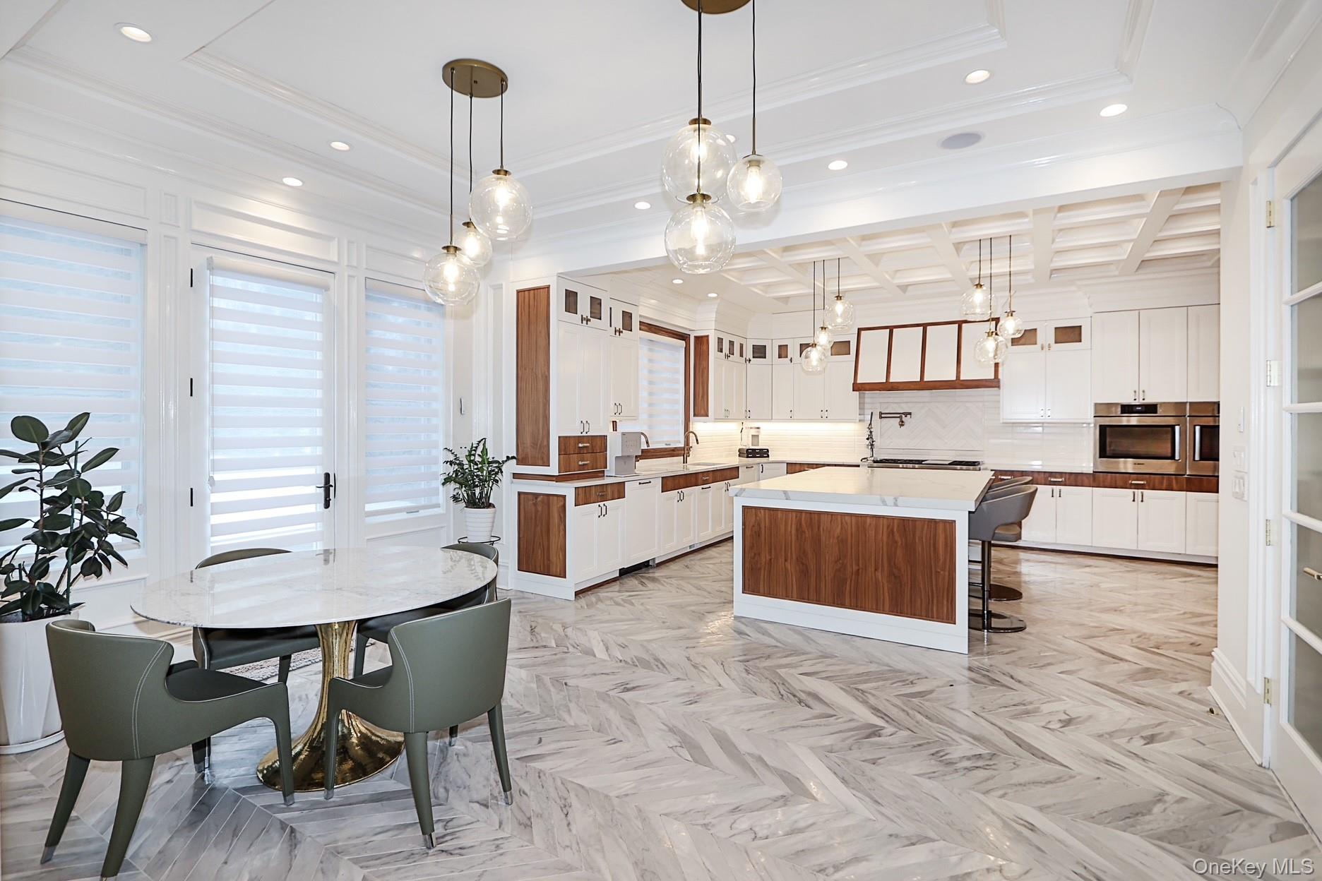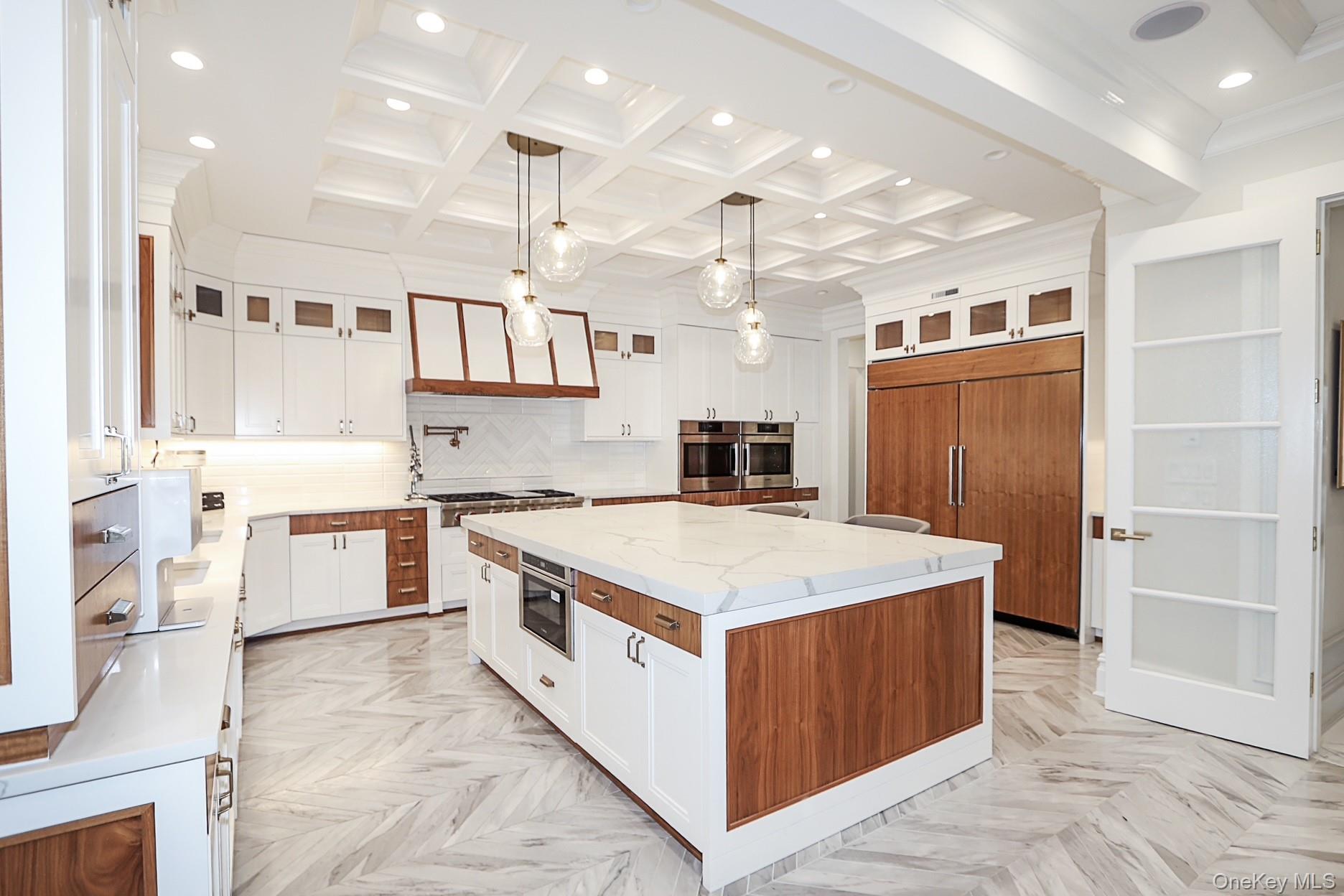 This magnificent Center Hall Brick Colonial showcases newer construction and represents the true epitome of luxury and sophistication. Thoughtfully designed with a fabulous flow for both grand entertaining and comfortable family living, this exceptional residence features high ceilings, superior craftsmanship, and elegant coffered ceilings throughout. The main level offers a grand living room, formal dining room, inviting den, and a stunning chef’s eat-in kitchen outfitted with top-of-the-line appliances. A stylish guest powder room completes the first floor. Upstairs, the luxurious primary suite boasts two spa-like baths and an expansive walk-in closet. Three additional generously sized bedrooms, three full baths, and a very large bonus room—perfect as an upstairs den, office, or playroom—provide flexible living space for today’s modern lifestyle. Additional highlights include a three-car garage and a full finished basement offering endless possibilities for recreation, a home gym, or extended living. Premium amenities abound multi-zone gas heat, central air conditioning, radiant heat, built-in speaker system, alarm system, central vacuum, sprinkler system, water purifier, and much more. This extraordinary home seamlessly blends timeless elegance with modern comfort—truly move-in ready and better than new! close proximity to houses of worship.