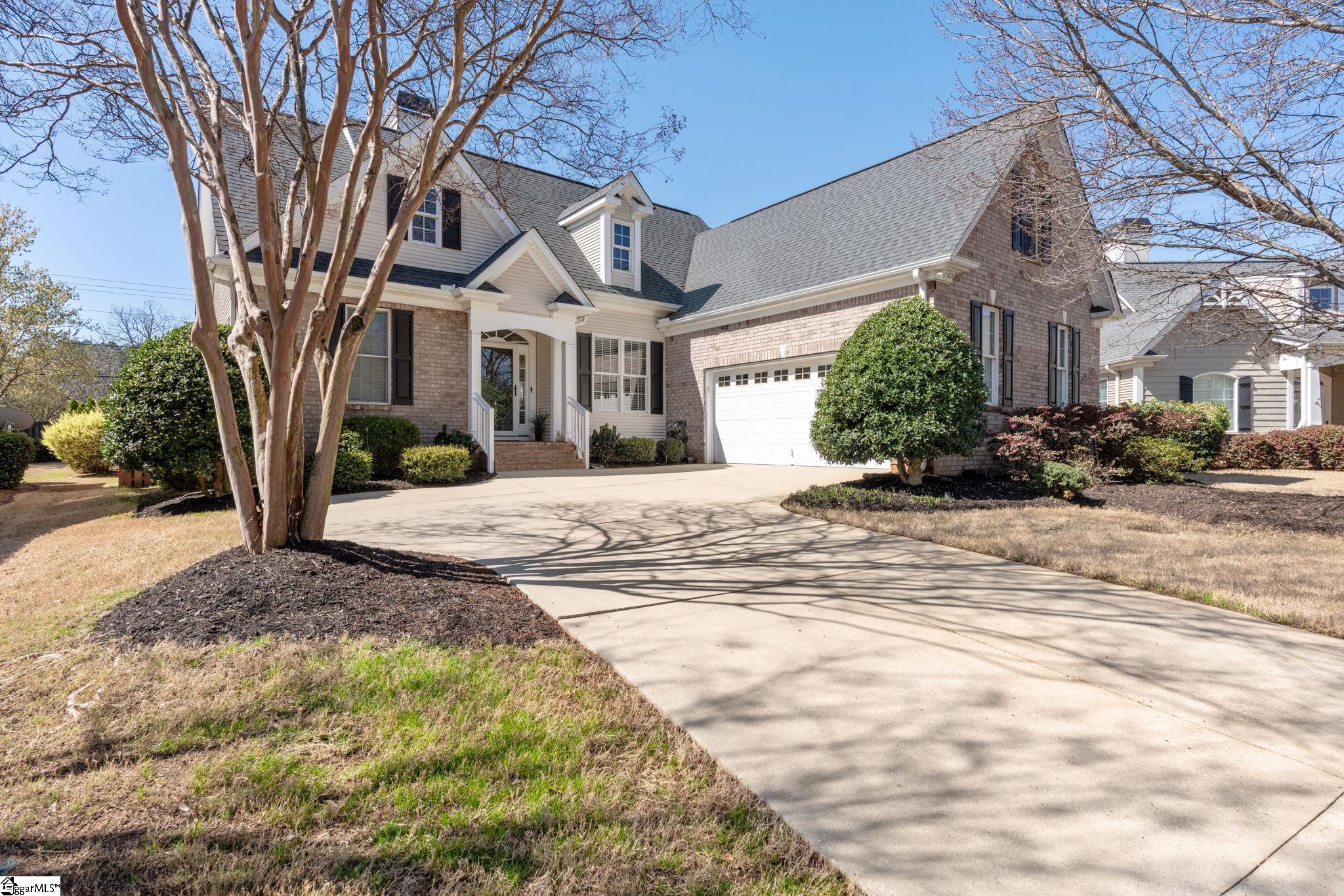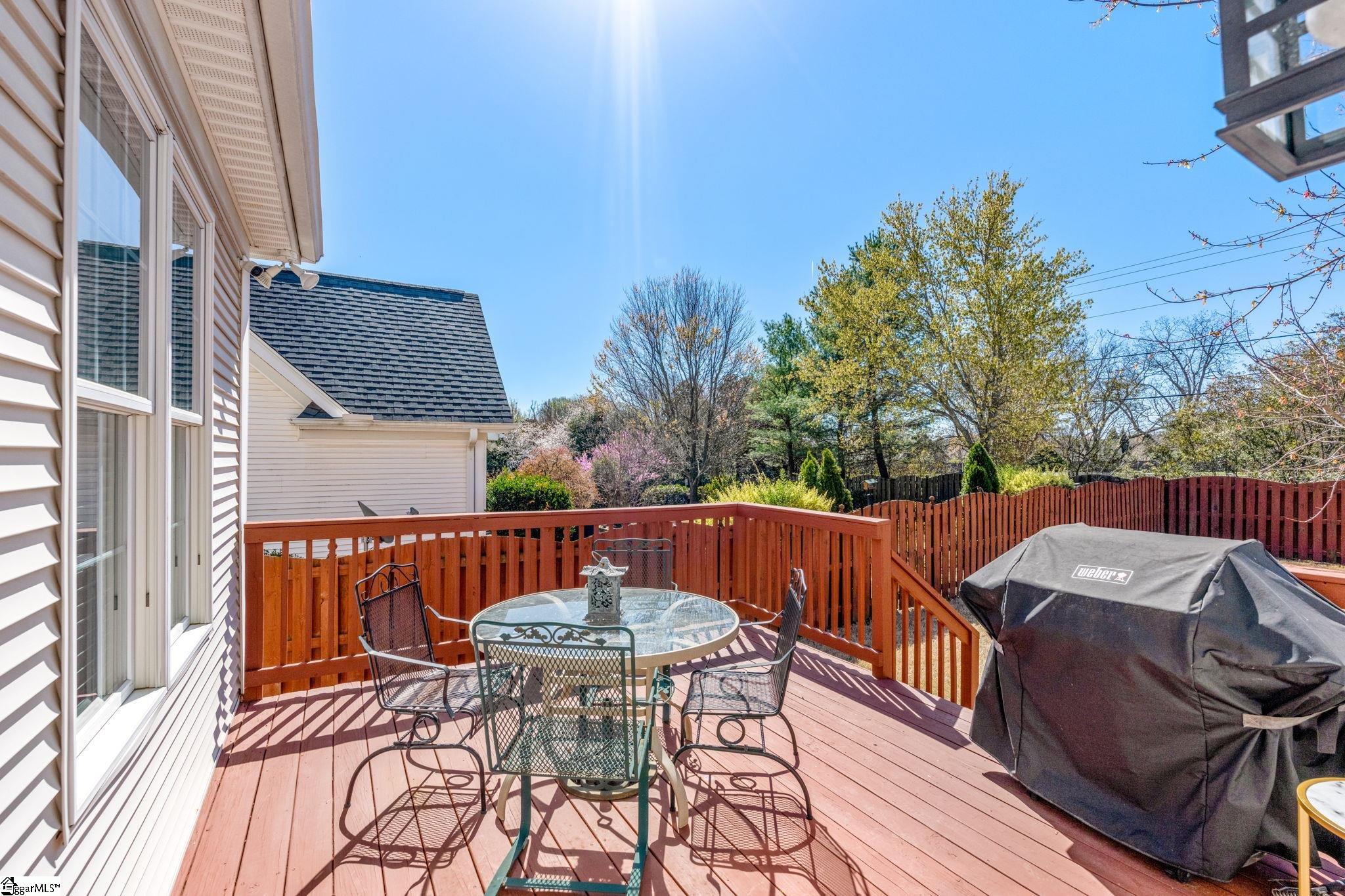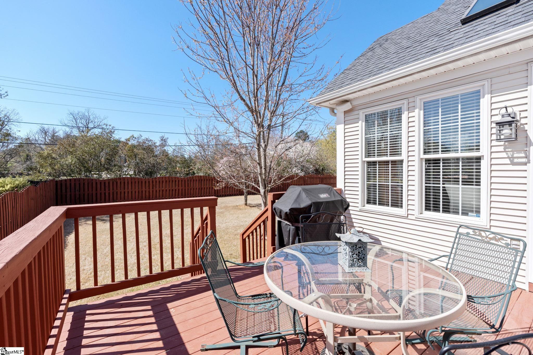Beautiful 3 bedroom 2 bath, 1. 5-story home with an open floor plan and vaulted ceilings in the main living area. The living room features a cozy gas log fireplace with built-in bookshelves and flows seamlessly into the dining room, sunroom, and breakfast area. The kitchen offers granite countertops, stainless steel appliances, and a gas range. The primary suite on the main includes dual vanities, a garden tub, separate shower, and walk-in closet. Two additional bedrooms and a full bath are also on the main level. Upstairs flex room over the garage is perfect for a media room, playroom, or home office. Enjoy hardwood floors in the main living areas, a deck off the sunroom, and a large flat fenced backyard perfect for entertaining, pets, or play. Beautifully landscaped neighborhood with sidewalks and tree-lined streets!