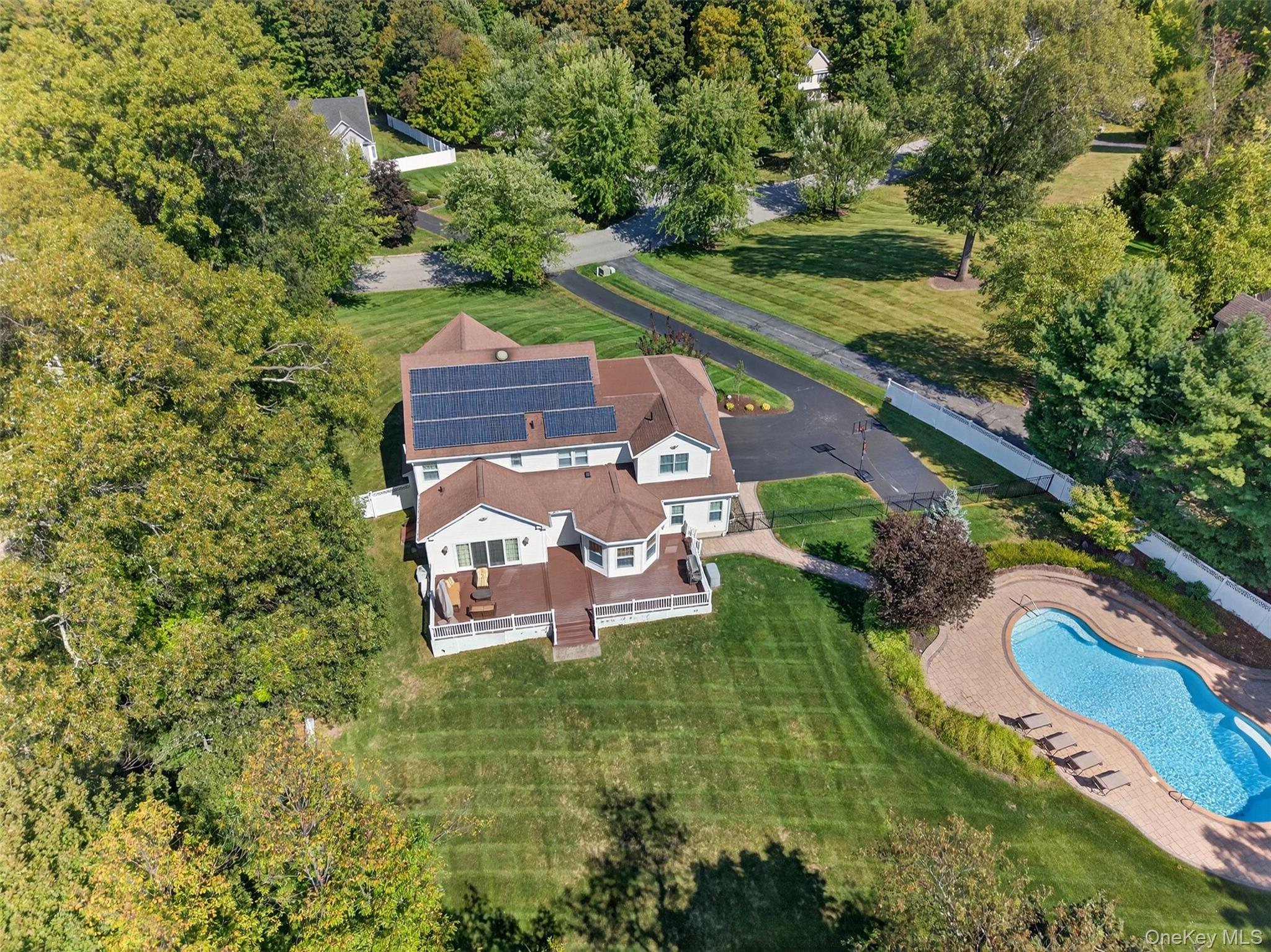 Welcome to an extraordinary estate in the prestigious Southwycke Farms, an exclusive, tree-lined enclave of just 36 homes located minutes from the charm and vibrancy of downtown Warwick. Offered for the first time by its original owners, this distinguished residence is a masterclass in timeless elegance, thoughtful design, and meticulous craftsmanship. A grand two-story foyer with a chandelier lift creates a striking first impression, unfolding into a sophisticated open-concept layout designed for both refined entertaining and effortless everyday living. The chef’s kitchen is a true centerpiece, appointed with custom cabinetry, double wall ovens, and two expansive islands, all complemented by a sun-drenched breakfast nook. A butler’s pantry—complete with an ice maker and wine refrigerator—provides seamless flow into the formal dining room, where coffered ceilings add architectural distinction. The impressive family room is both warm and inviting, anchored by a gas fireplace and framed by sliding glass doors that open to an expansive trex deck overlooking the lush, professionally landscaped grounds. The rear stairwell leads to four generously proportioned bedrooms, including two private en-suites, featuring custom walk-in closets. The primary suite offers a spa-inspired retreat, highlighted by a beautifully renovated bath with a luxurious two-person steam shower designed for ultimate relaxation. Exceptional amenities and recent enhancements include a heated in-ground, salt water pool, indoor/outdoor sound system, whole-house generator, owned solar panels, irrigation system, central vacuum, and a dedicated gym with ductless heating and cooling. Additional upgrades such as a radon mitigation system, water softener, new well pump, and freshly painted first floor further elevate the home’s turnkey appeal. The walk-out lower level adds over 1, 000 square feet of versatile space, ideal for recreation, fitness, or storage. Outdoors, the fully fenced backyard, ambient landscape lighting, and resort-style pool create a private oasis perfect for entertaining or quiet retreat. Blending privacy, sophistication, and an exceptional location, this remarkable offering represents a rare opportunity to own a truly distinguished home in one of Warwick’s most coveted communities, with award winning schools. Located within 60 miles of NYC, Warwick offers something special in every season. From apple orchards and farmers markets to wineries, breweries drive-in movie theatre, skiing, scenic hiking trails, and nearby lakes and beaches. The area delivers a lifestyle that’s truly worth moving for—one defined by charm, recreation, and year-round enjoyment.
