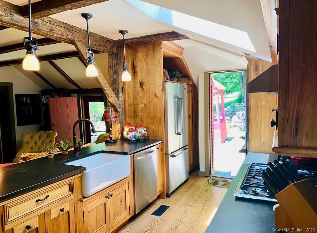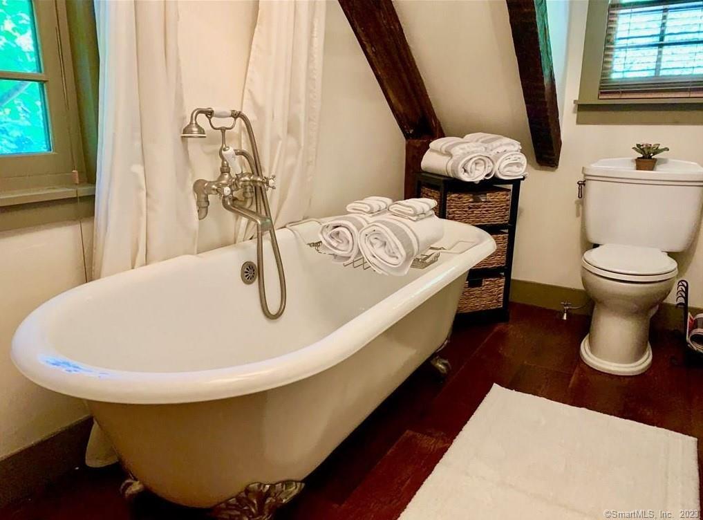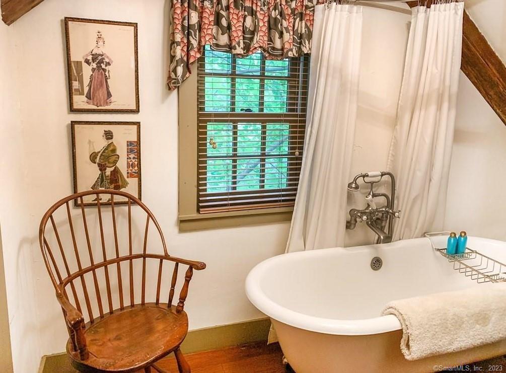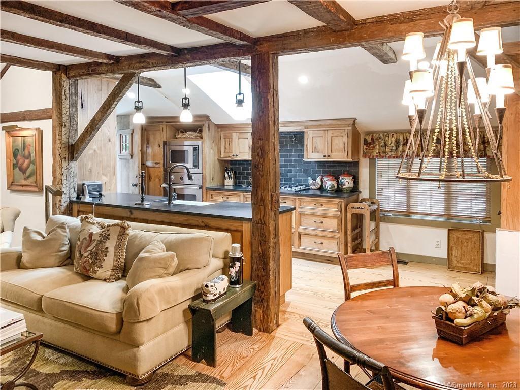 Gorgeous New England Home that is absolutely stunning. This home has been totally renovated and designed by an interior decorator. The "Red Rooster" House has artistic touches and you can be assured the quality of upgrades and high-end finished. The exposed beams, colonial hardware, rough-sawn wide board plank floors, brick fireplace mix well with the modern necessities. Master Bedroom and Full bath on the main level. The second Bedroom upstairs has been updated with vintage bath forming a cozy retreat. Coffee in the morning on the covered front porch facing east or dinner on the back patio. Only 3/4 mile to downtown Ridgefield with sidewalks connecting Library, theaters, shops, restaurants, parades and so much more. Only 50 miles NE of NYC. This is truly beautiful and you don't want to miss out on this one. . .