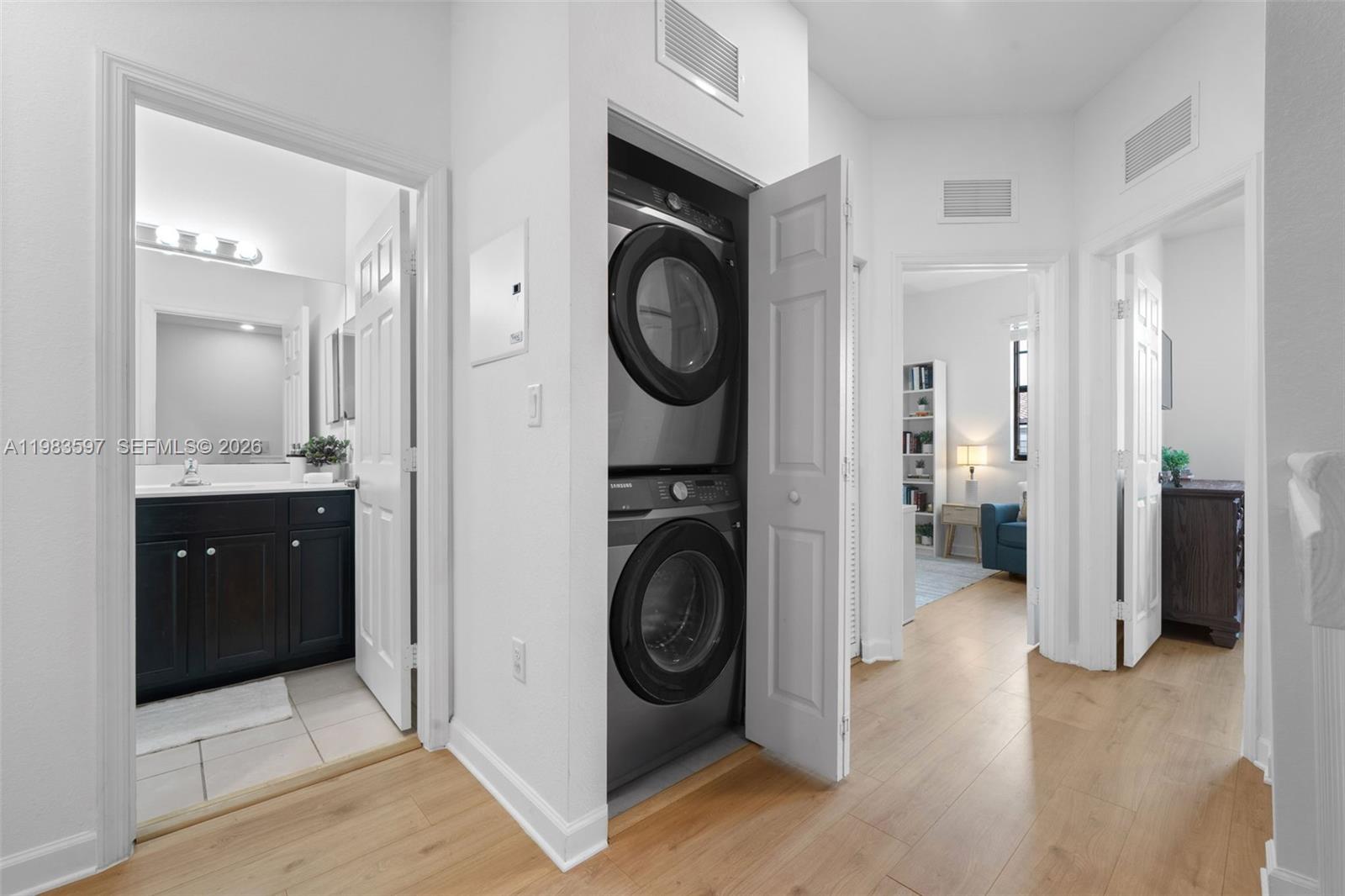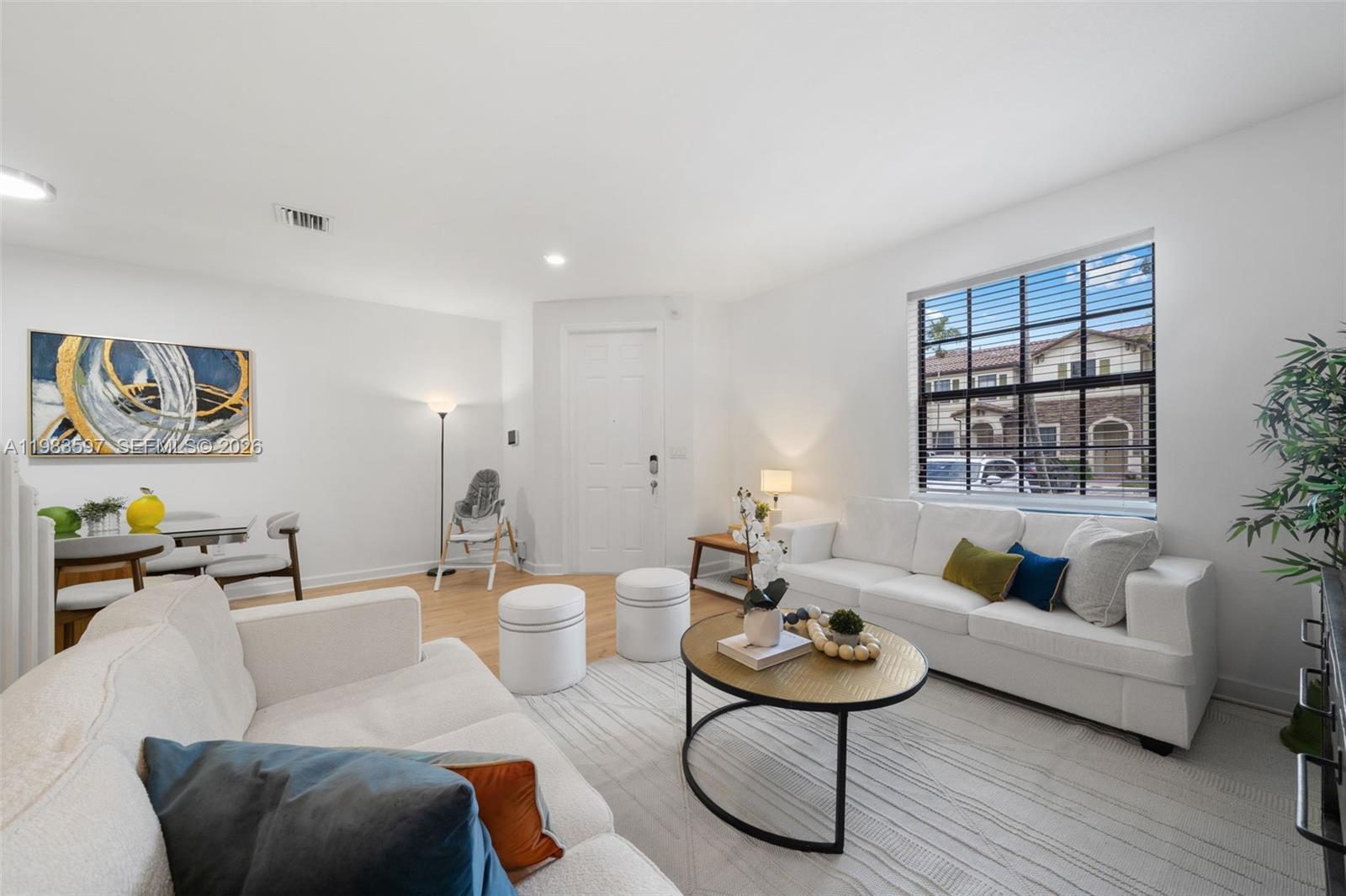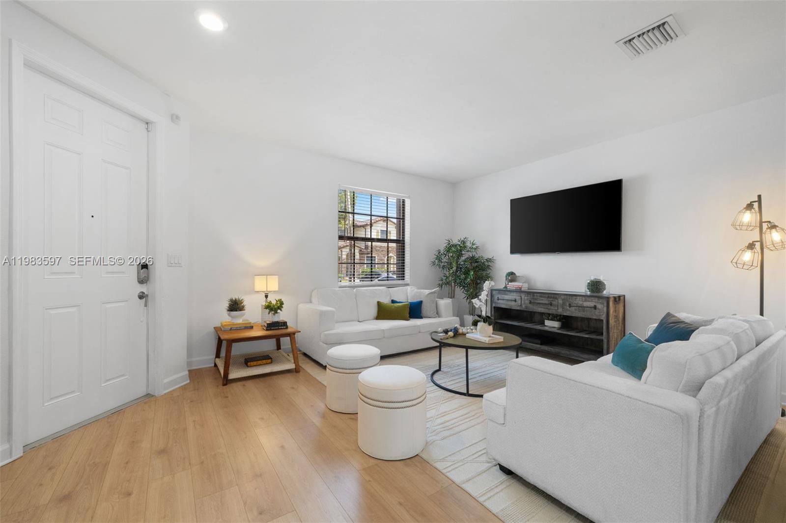 Welcome to Casa Aria — a spacious two-story townhome located in the gated community of Bonterra, a newer community built in 2016. This move-in ready home offers 3 bedrooms, 2. 5 bathrooms and 1, 668 Sq. Ft. The first floor features a bright and open layout with separate living and dining areas, plus a kitchen that flows into an integrated family room, creating comfortable spaces for everyday living and entertaining. The kitchen includes dark cabinetry, stainless steel appliances, quartz countertops, and generous prep space, combining functionality with a modern look. The home has also been updated with new wood-style flooring throughout, giving the interiors a fresh and contemporary feel. Upstairs you will find all three bedrooms, offering privacy and a practical layout, with good closet space and comfortable proportions. A powder room is conveniently located on the first floor for guests. The property also features a spacious backyard, ideal for outdoor relaxation, entertaining. Two assigned parking spaces are located directly in front of the home, with additional guest parking. Residents of Bonterra enjoy access to excellent community amenities including a clubhouse, fitness center, pool, basketball court, mini soccer field, playground, and entertainment areas, all within a gated community with 24-hour rover security and convenient access to major highways, shopping, and dining. A spacious and well-located townhome offering comfort, functionality, and community living.
