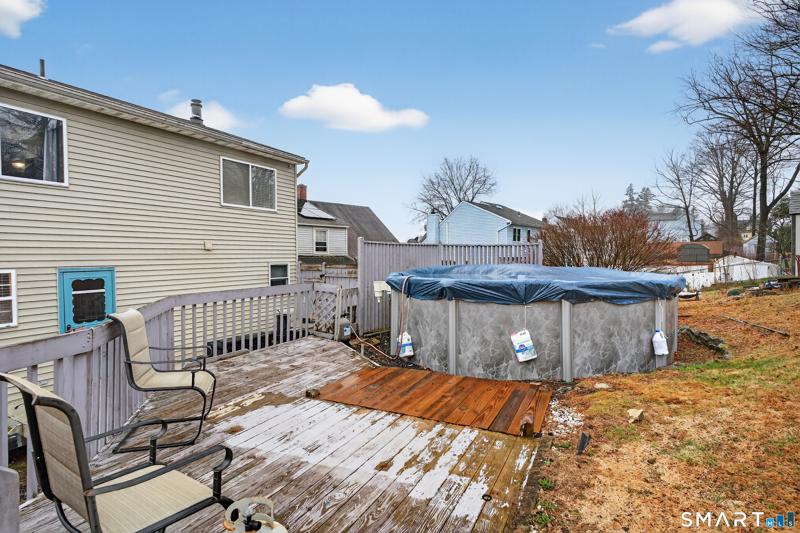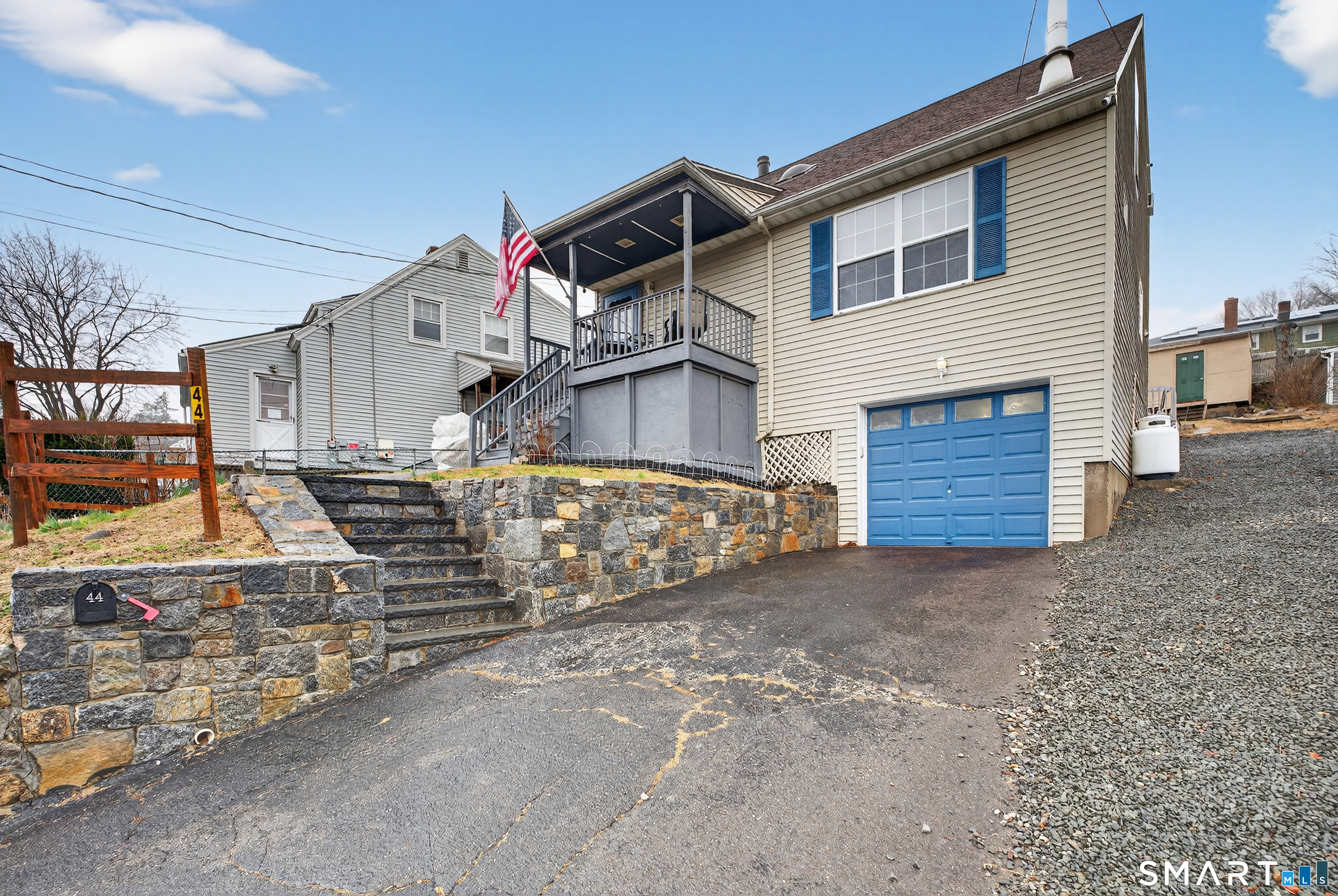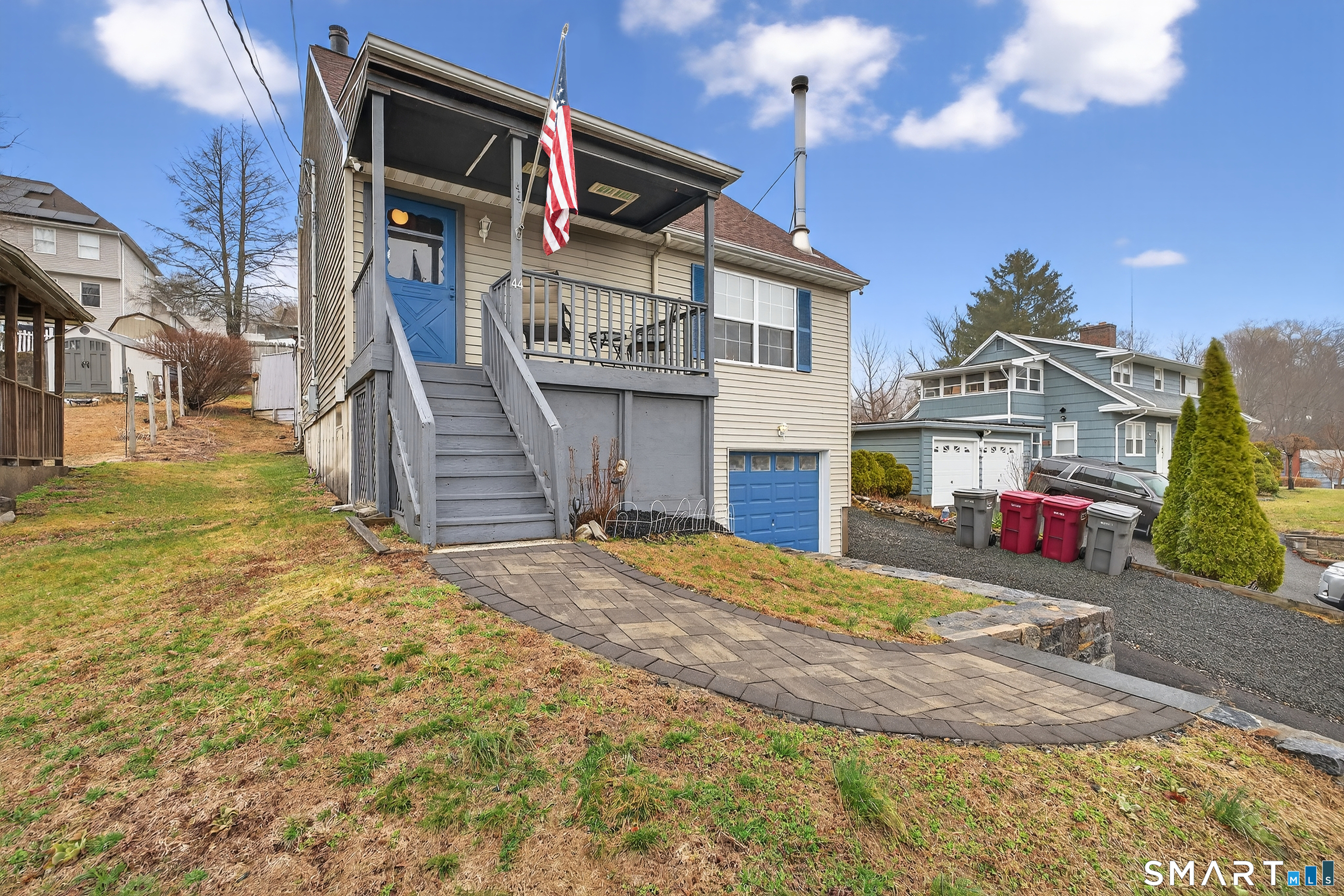 Inviting Cape in Naugatuck! Don't miss this charming 3-bedroom, 2-bath Cape offering comfort, character, and thoughtful updates throughout. Located in a quiet residential setting, this home delivers both functionality and welcoming living spaces. The bright living room features vaulted ceilings that open to the upper level, creating an impressive sense of space and light. A cozy woodstove adds warmth and efficiency, making the room perfect for relaxing or entertaining. The kitchen has been refreshed with freshly painted cabinets, giving it a clean and modern feel. An attached garage provides everyday convenience and additional storage. Outside, enjoy the benefits of a beautiful new bluestone retaining wall adorned with granite steps, enhancing both curb appeal and yard usability. The backyard is summer-ready with an above-ground pool, ideal for gatherings and outdoor enjoyment.