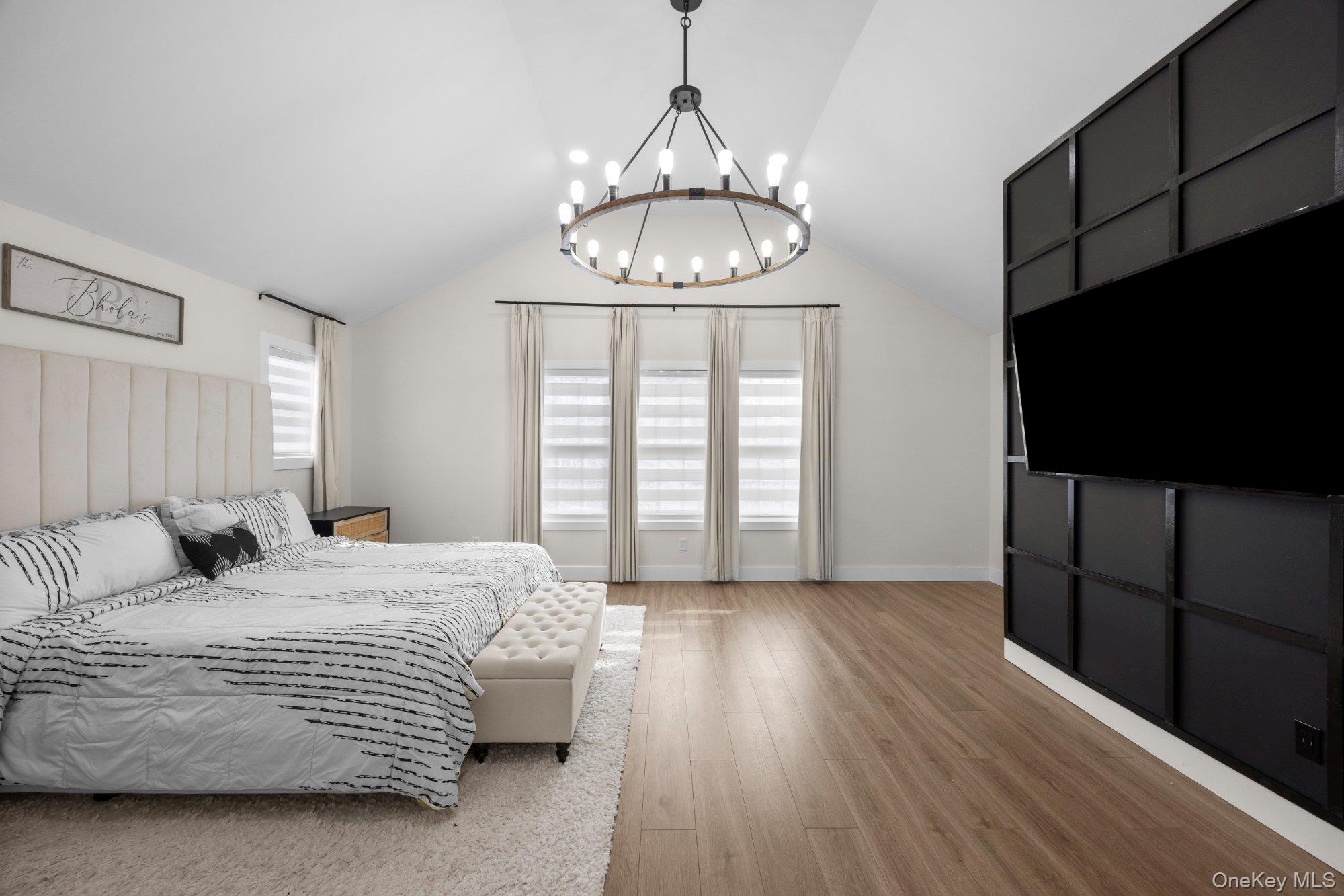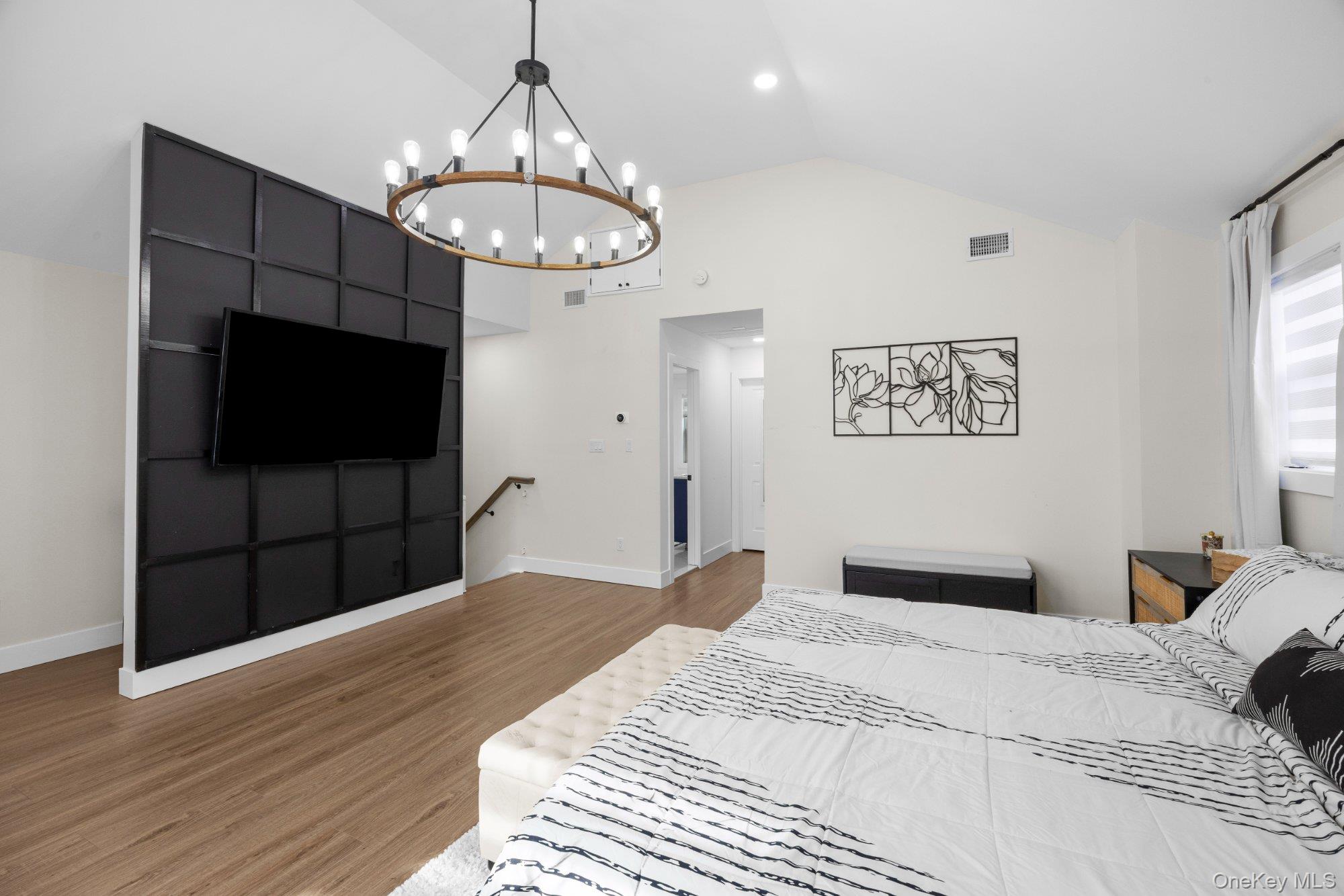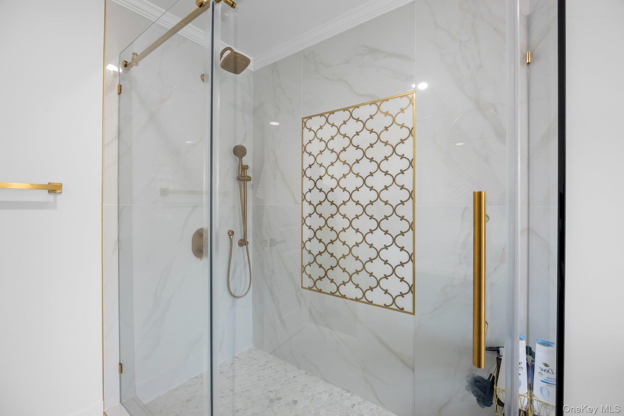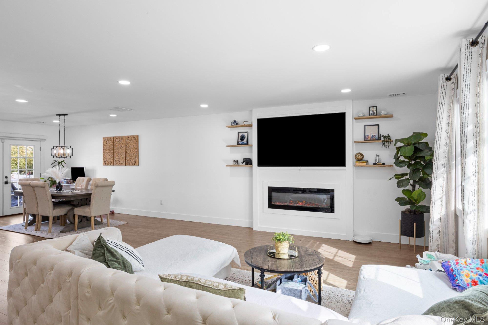 Masterfully renovated & expanded split-level in diamond condition! Stunning open-concept layout features a chef's kitchen w/ quartz counters, dark center island, premium appliances, wine cooler & herringbone backsplash. Expansive living room w/ linear electric fireplace & custom built-ins flows seamlessly into dining area. Luxurious primary suite w/ vaulted ceilings, 2 walk-in closets & spa-inspired en-suite bath w/ freestanding soaking tub, frameless glass shower & brushed gold fixtures. Finished lower level w/ full bath — perfect for guests or extended family. Sliders open to new pavers & spacious backyard. Recessed lighting, designer finishes & move-in ready condition throughout. Low taxes. Nothing left to do but unpack!