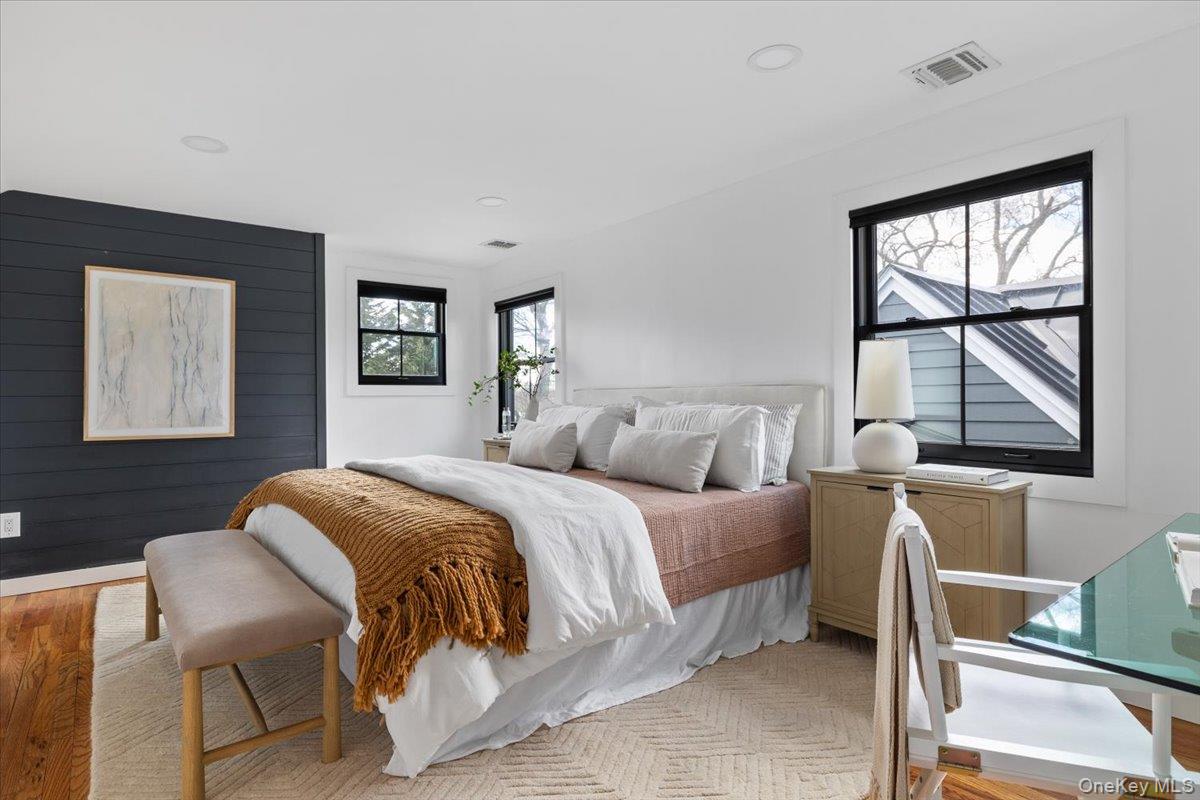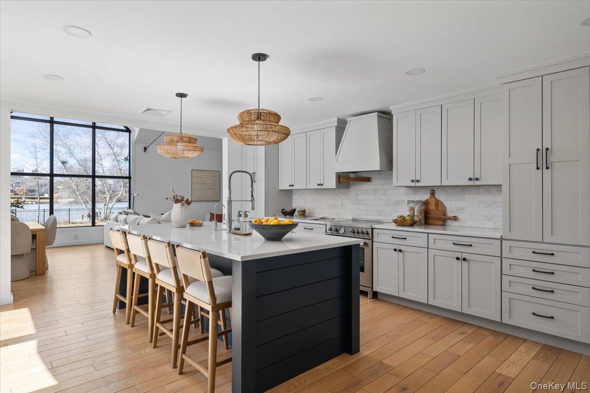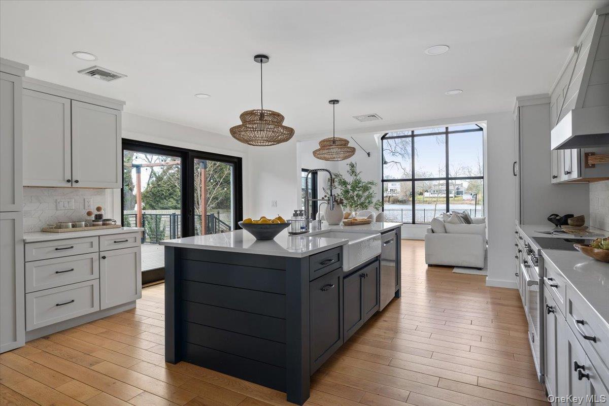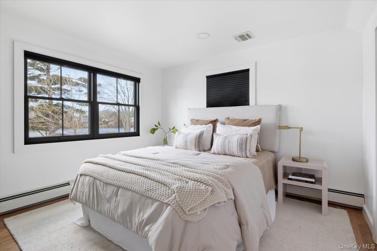 Fully renovated lake front oasis in Patchogue. Over 100 feet of lake frontage with a private dock. The home features a spacious primary bedroom on the main level, white oak floors, massive ceiling heights, and high end appliances including a Bertazzoni induction oven. The living room features a 13 foot custom window with breathtaking views of Patchogue Lake. Additional features include a Trex deck, Diamond cabinets, and 2 wood-burning fireplaces. The home is a true entertainer's paradise that is gently complimented by gorgeous sunsets and the charming lake breeze.