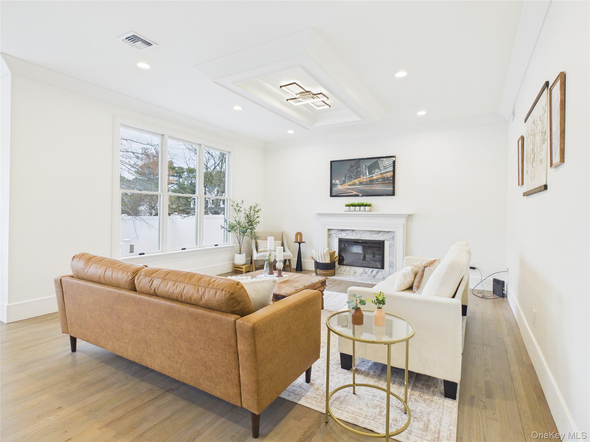 All remaining work now finished and this home is ready-to-go! The Spring weather welcomes in a renovated Dix Hills colonial built in 1993 and thoughtfully updated in 2026. Located in a unique enclave of homes built around the same time, the blocks surrounding this home feel like a private community. Beautifully landscaped homes line the streets along with elegant stoic lamp posts that usher you down to the end of the block where you'll find this treasure. Located on nearly a half-acre corner lot, this home is at the beginning of a private cul-de-sac and is impressive upon arrival. Homes in this part of Dix Hills are always in high demand for those seeking a private community feel within the Half Hollow Hills School district, but don't want to sacrifice being close to life's conveniences or risk a long drive to major roadways. This home is a very short drive to groceries, Tanger Outlets, LIE, Northern State, Southern State, and all of your other necessities. In addition to being in such a great location within Dix Hills, the home was also tastefully renovated, trying to maintain some original features like the respected Andersen windows and the trex decking, while gut renovating other portions of the home. New roof, new siding, new kitchen, new bathrooms, new PVC railings on deck, new large format tiles throughout including the gigantic basement floor, new hardwood floors on the entire second floor and thoughtfully refinished hardwood floors on the first floor. New banisters, new modern and upgraded trim work throughout, new light fixtures, new door hardware, and so much more! With 4 bedrooms and 3 full baths, with an option to add a 5th bedroom in several places, there is plenty of room to enjoy this space. Walk in through the new black iron doors and step into a grand double-story entrance that sets the tone. The kitchen is breathtaking. Fully gutted it features a huge island that opens up to the breakfast nook and family room with a gas-powered fireplace and impressive appliances such as a 6-burner chef's stove and Jenn-Air refrigerator. There is also a beautiful dining room overlooking the yard. All the bathrooms were fully gut renovated with modern tile schemes and a luxurious feel that are pleasing to the eye. The basement also underwent full renovations and is truly impressive providing an enormous amount of space for entertaining and other uses. Upstairs you’ll find four generously sized bedrooms, including a luxurious primary suite with a spa-inspired bath and a walk-in closet. There is also a large laundry room with washer and dryer located on the second level to make your laundry chores a breeze. The backyard provides plenty of space for entertaining on the deck overlooking the koi pond and outdoor waterfall. Tons of landscaping work was done to maximize the yard space, with fresh seed, and also underground sprinklers. There is also a large front yard that can be used in a variety of ways. This home is truly the full package. Come take a look!