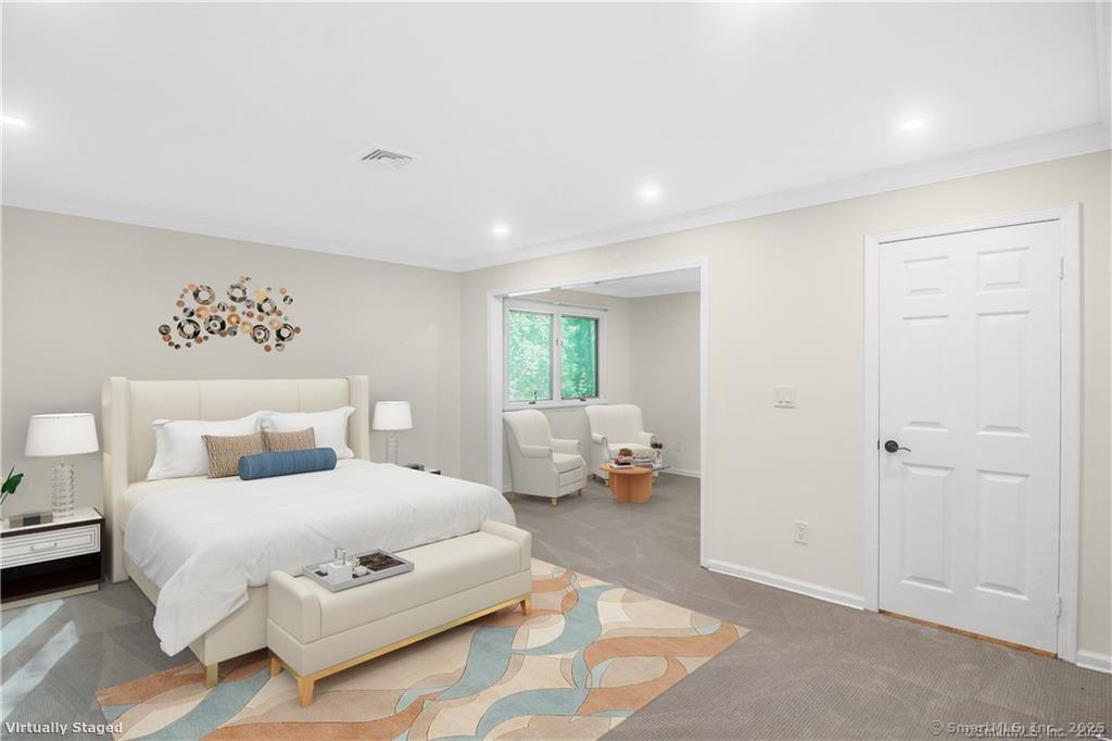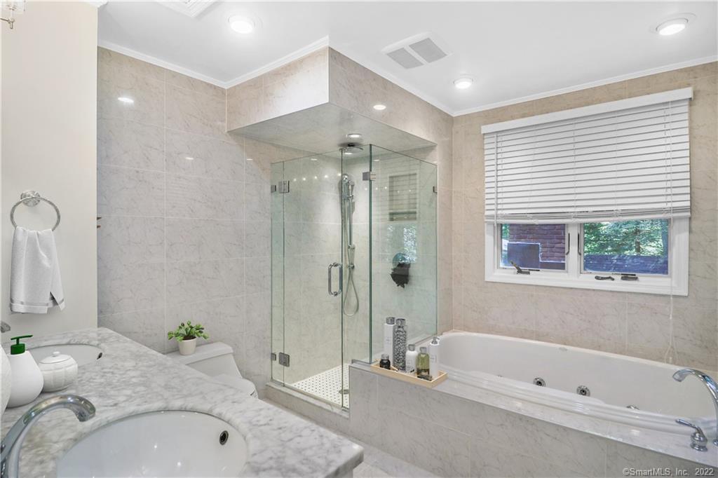 Pristine Mediterranean Colonial nestled in quiet North Stamford with 4 bedrooms and 2. 5 bathrooms available! With more windows than you'd like to count to illuminate the updates around the home and being set on over 2 acres, it is a sight to see. Beautifully remodeled Kitchen offers Breakfast Bar, top of the line Stainless Steel Appliances, cabinets and pantry space galore. Induction CookTop works LIKE cooking on GAS!! Spacious Laundry room with built-in cabinets. Huge Primary Bedroom with tons of closet space and dressing area with a panoramic window for serene views. 4th bedroom is converted into an Office with gorgeous views, high ceilings and dark wood beams. This house has so much to offer, top quality finishes and high end gorgeous remodeled Marble Primary Bathroom with shower and Jacuzzi. Den with Fireplace, Wet Bar and French doors opens up to a huge fully renovated Deck providing for family and friends' entertainment. Wine Cellar for the finest taste. New hardwood floors throughout and existing floor refinished. Great commuter location convenient to everything Stamford has to offer including the new Scofieldtown Park, schools, shopping, restaurants, The Merritt Parkway, Metro North Train and Downtown Stamford.
