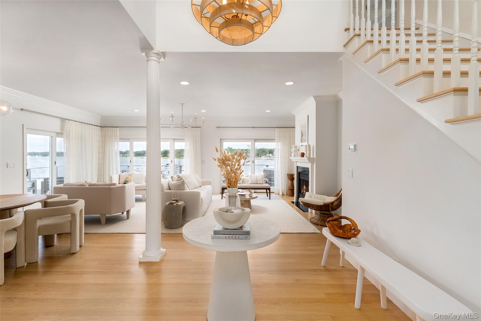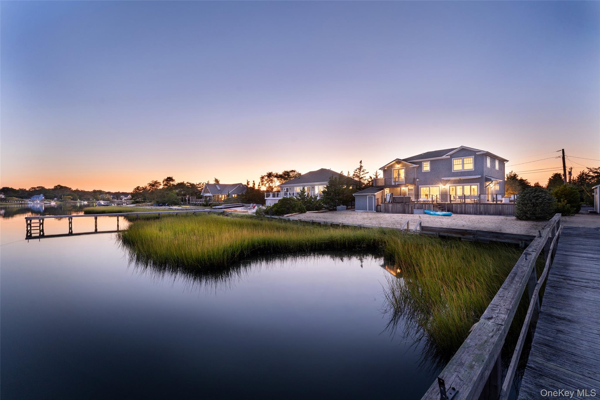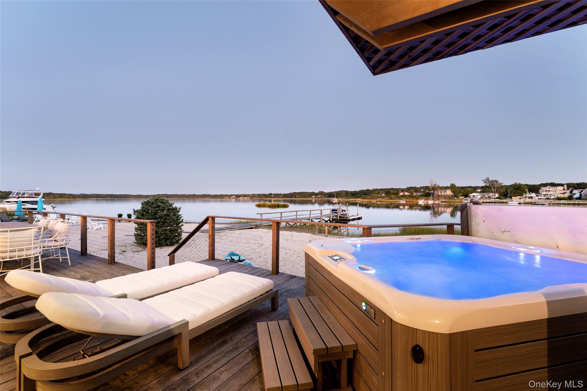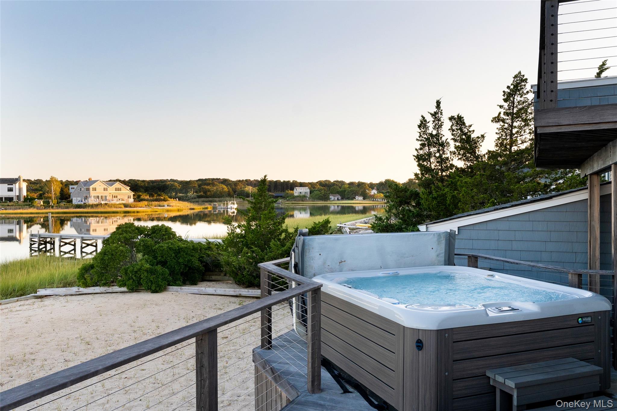 Set along the shoreline of the coveted Cold Spring Point Beach Community, this newly reimagined beach house with a private dock offers the perfect balance of Hamptons sophistication and laid-back coastal living. From sunrise to sunset, enjoy sweeping water views and tranquil surroundings that define the essence of waterfront life. Curated by renowned interior designer Purvi Padia, with exquisite lighting by Lindsey Adelman, the home radiates refined elegance while embracing an airy, beachside charm. The sunlit open-concept living space features vaulted ceilings and expansive sliding glass doors framing panoramic vistas of Cold Spring Pond and the sandy beach. A chef's kitchen with premium stainless-steel appliances and sleek Carrera marble countertops flows seamlessly into a spacious great room, designed for both relaxed gatherings and elegant entertaining. The first floor offers a full bathroom with laundry and a versatile bonus room with wall-to-wall closets-ideal as a home office, den, or guest suite. Upstairs, the private primary suite boasts an upper deck overlooking the water, a beautifully renovated en-suite bath, and a generous custom walk-in closet-crafted for comfort whether for weekend escapes or year-round living. Two additional oversized bedrooms, each with water views, share a tastefully updated bathroom, providing ample space for guests. Outdoor living is elevated by a newly built IPE wraparound deck with an expandable awning, dining and lounge areas, and a soothing hot tub-perfect for unwinding after a day on the water. Launch your boat from the rebuilt deeded dock with new pilings, enjoy a leisurely kayak along the pond, or take advantage of the community tennis courts just steps away. A short stroll in your flip-flops brings you to the Great Peconic Bay beach for a refreshing swim. This exceptional property presents a rare opportunity to experience waterfront living in one of the Hamptons' most sought-after private beach enclaves. Property Details