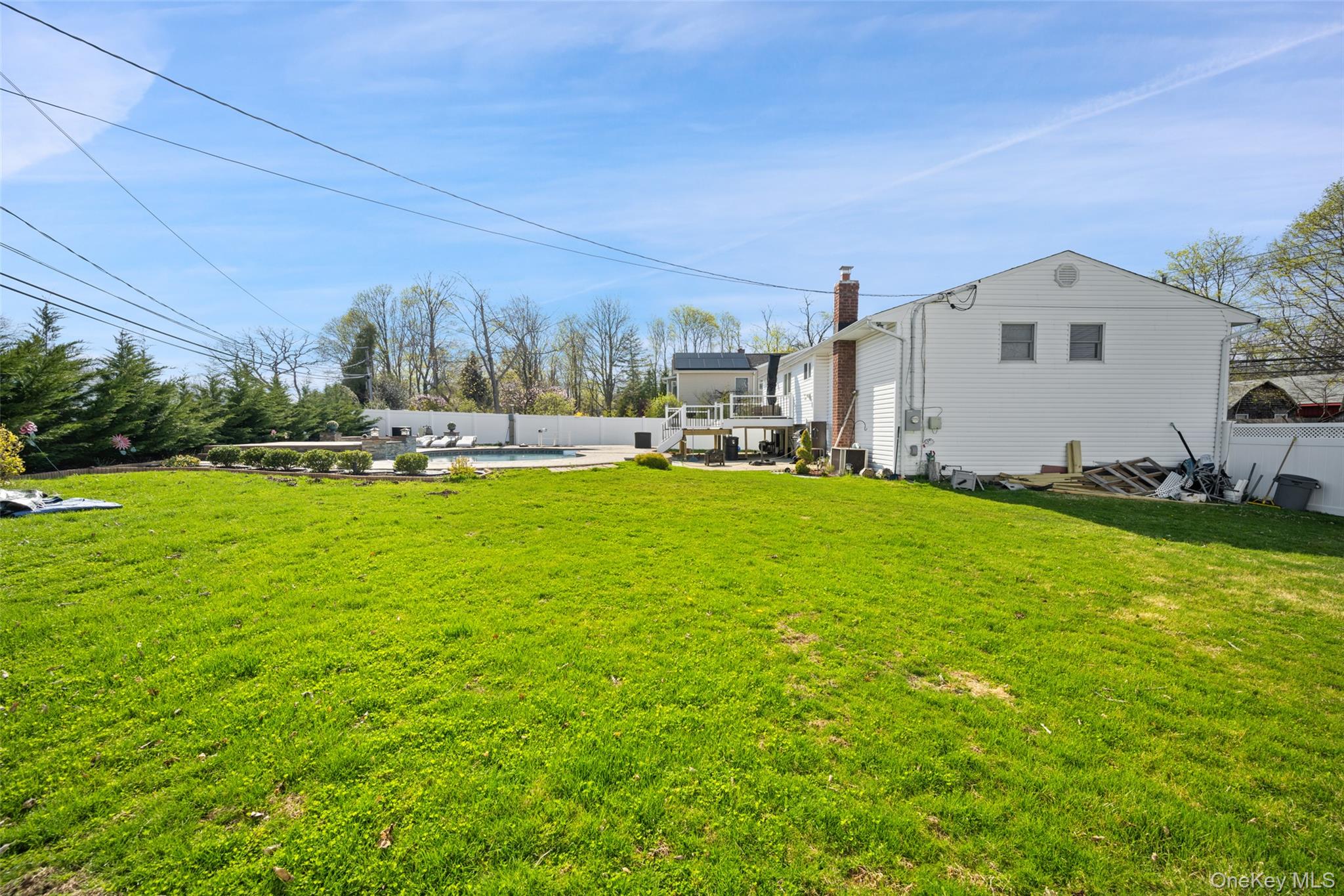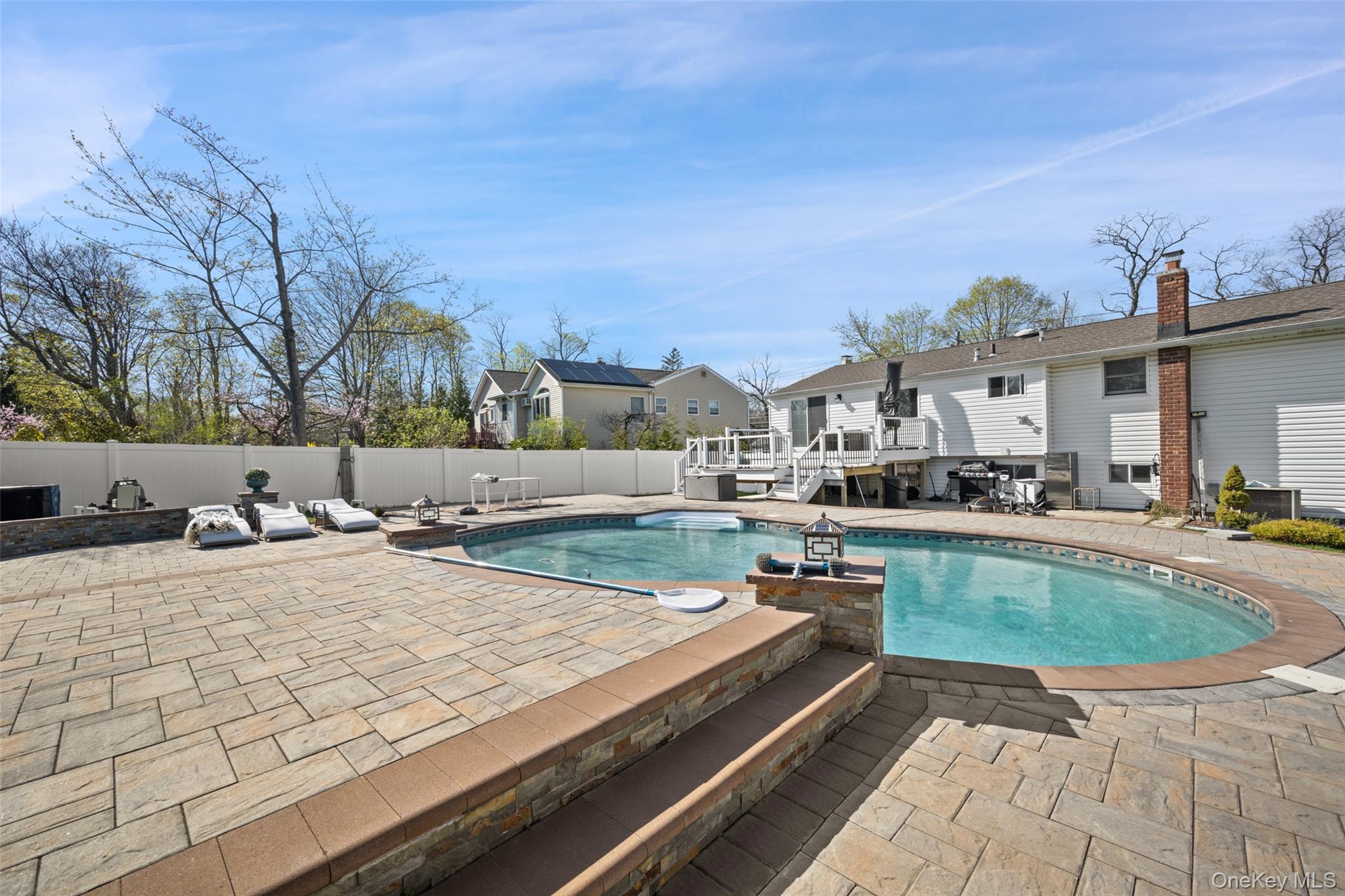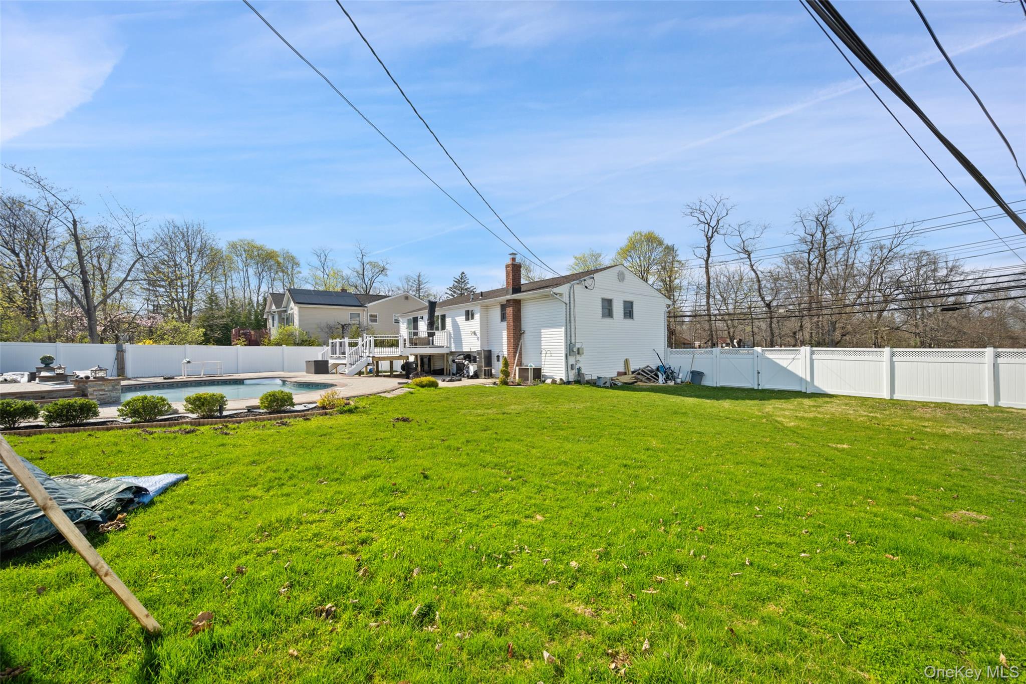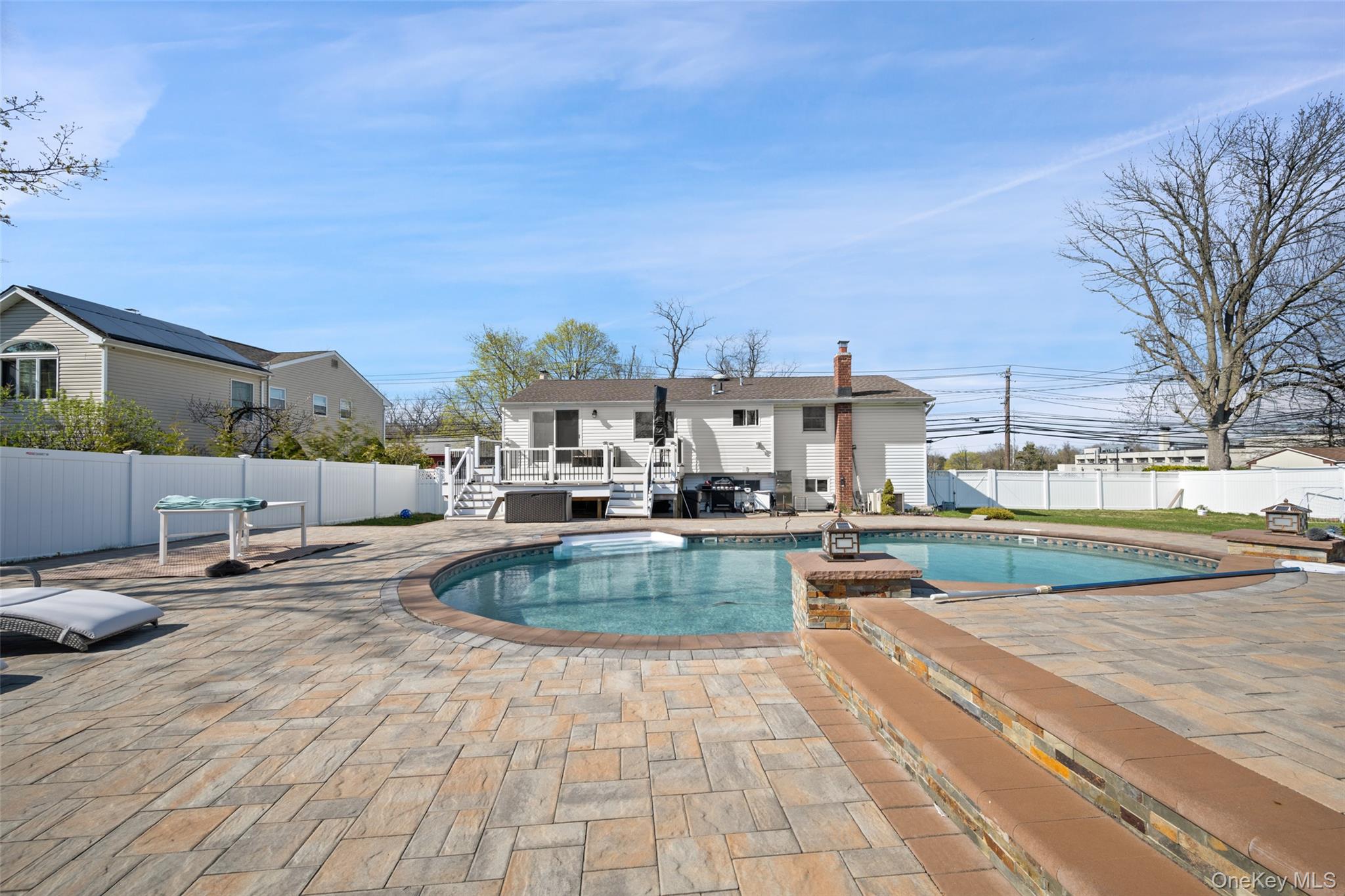 Welcome to 86 New Hwy, an elegant and well-maintained 4-bedroom, 2-full-bath home offering comfort, style, and exceptional indoor-outdoor living in the heart of Commack. This residence features beautiful wood floors throughout, a bright and functional layout, and an updated modern kitchen with sleek granite countertops. The second floor includes a stylish bar area, creating a perfect space for entertaining and hosting guests. The exterior is equally impressive, offering a nice-sized backyard, a brand-new deck ideal for gatherings, and a stunning in-ground pool that provides your own private retreat for the warmer months. Additional features include a 2-car garage, central AC for year-round comfort, and a sprinkler system for easy lawn maintenance. Conveniently located near shopping, parks, major roadways, and the highly regarded Commack School District, this home presents an outstanding opportunity for buyers seeking elegance, convenience, and lifestyle. A wonderful property to personalize and make your own.
