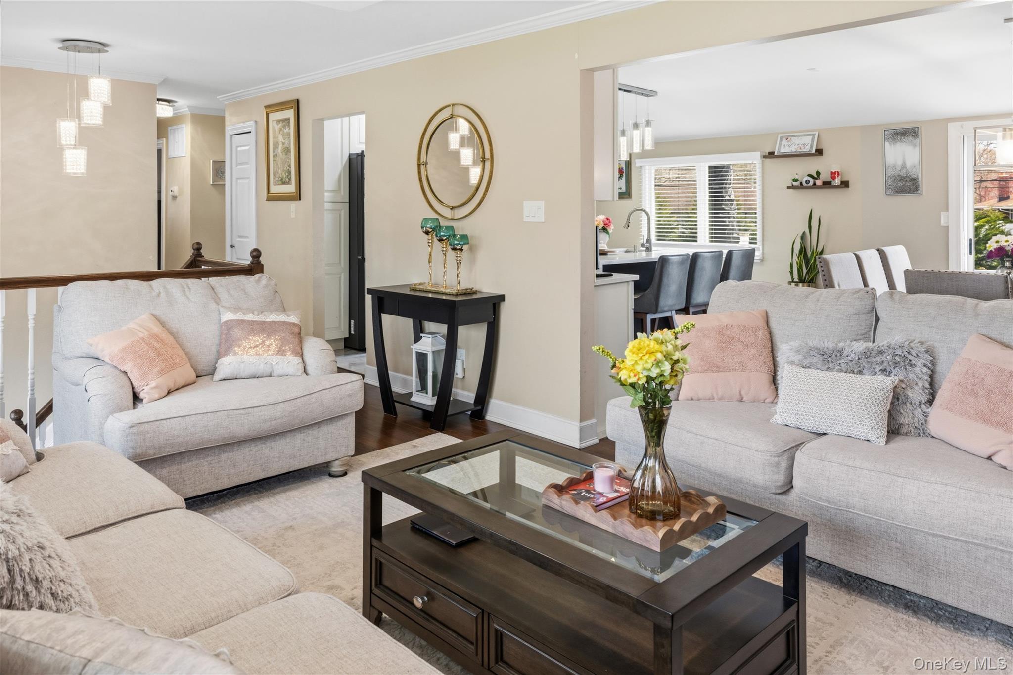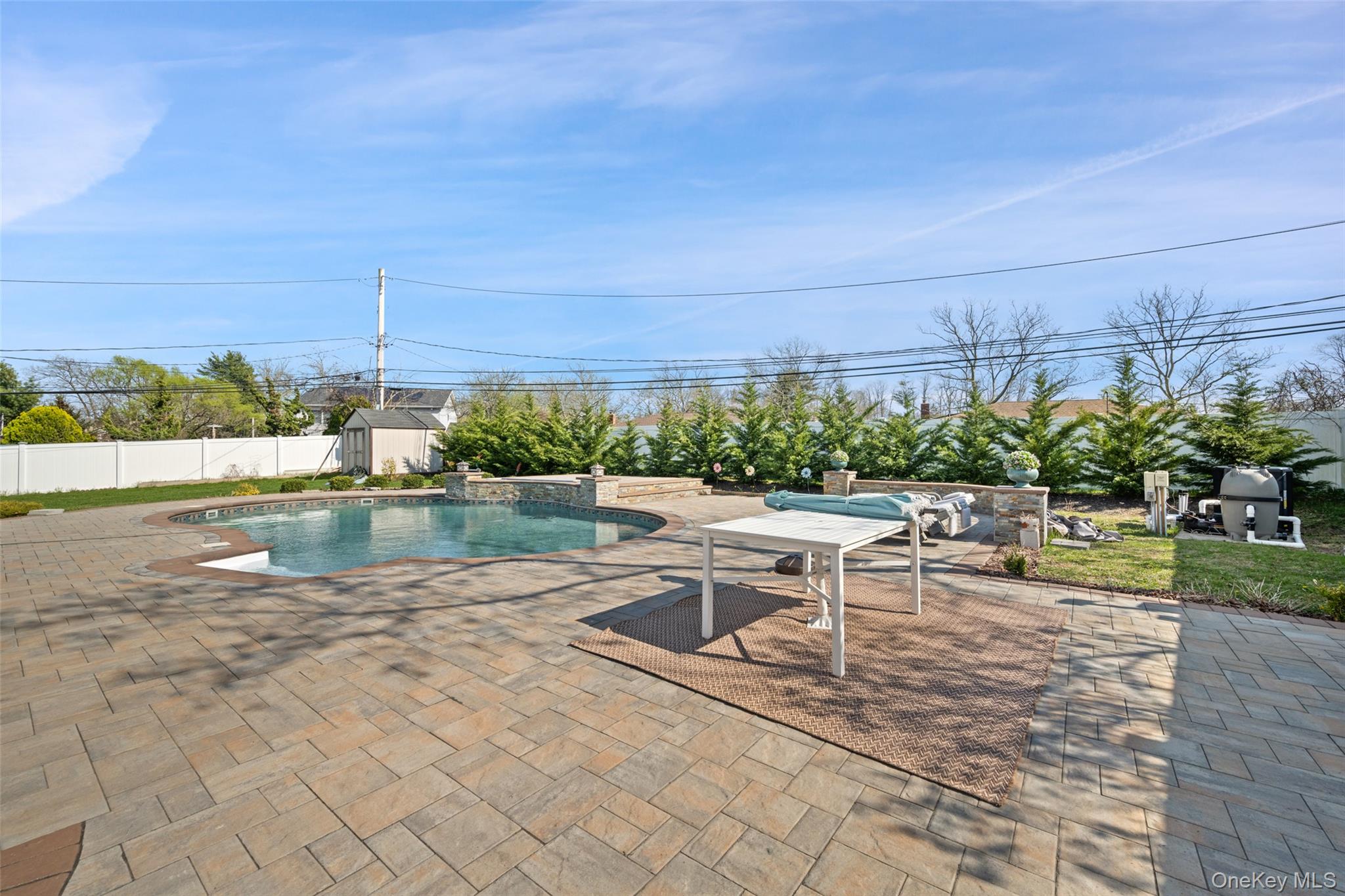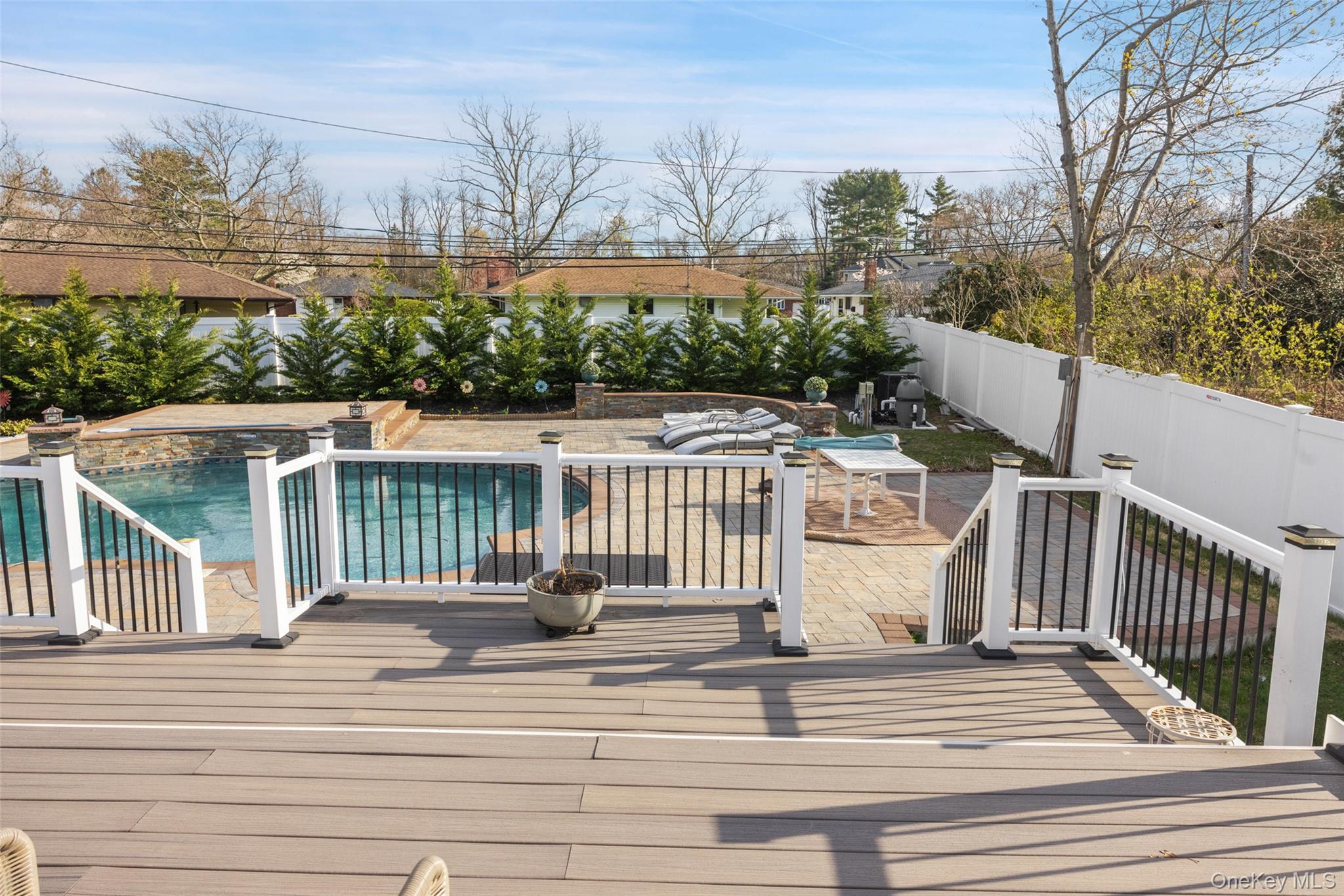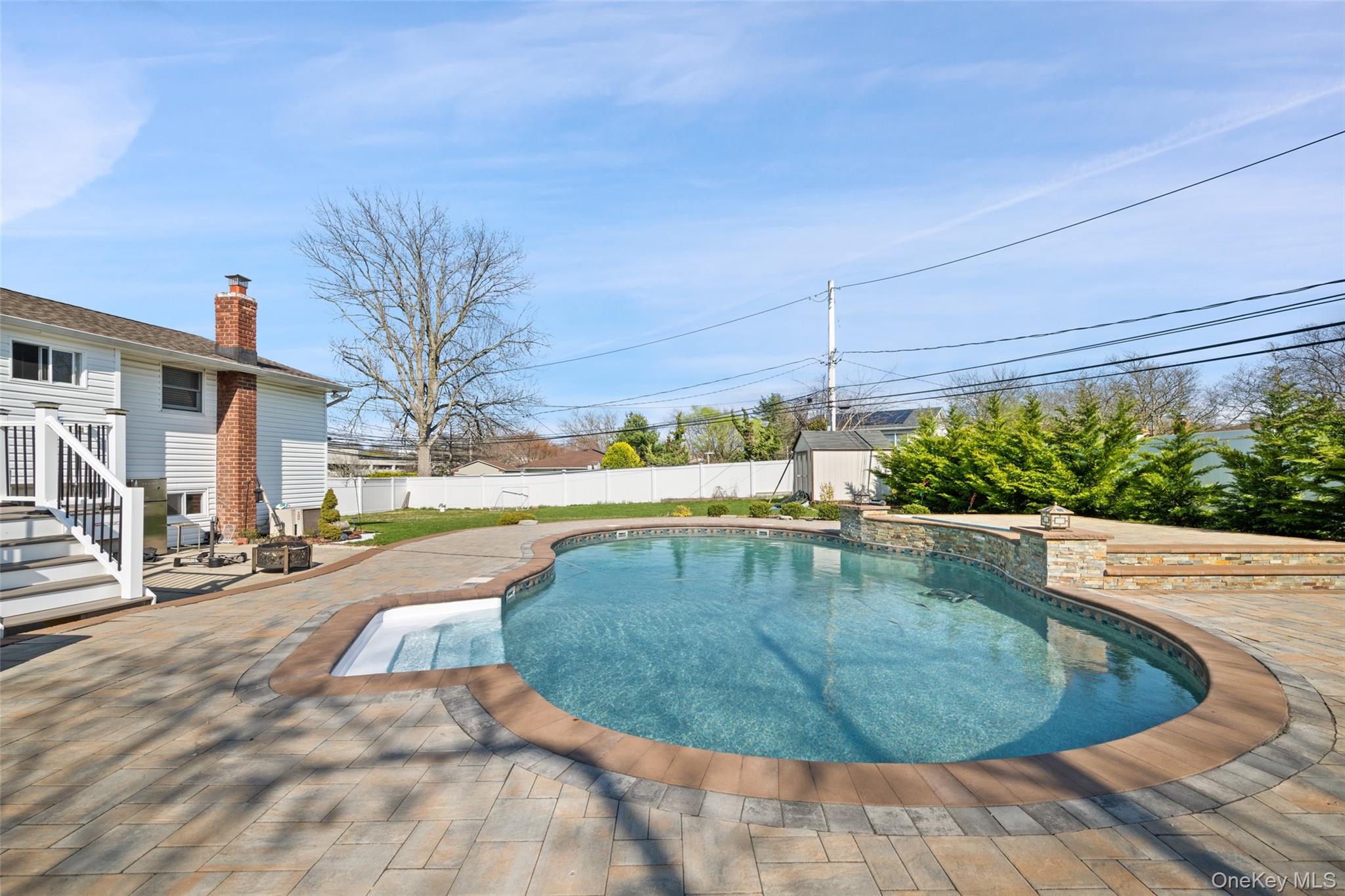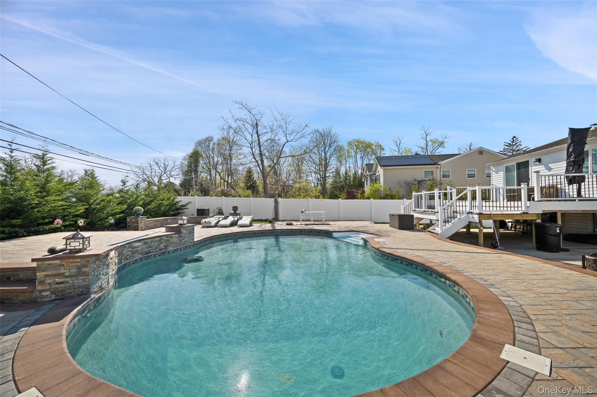 Welcome to 86 New Hwy, an elegant and well-maintained 4-bedroom, 2-full-bath home offering comfort, style, and exceptional indoor-outdoor living in the heart of Commack. This residence features beautiful wood floors throughout, a bright and functional layout, and an updated modern kitchen with sleek granite countertops. The second floor includes a stylish bar area, creating a perfect space for entertaining and hosting guests. The exterior is equally impressive, offering a nice-sized backyard, a brand-new deck ideal for gatherings, and a stunning in-ground pool that provides your own private retreat for the warmer months. Additional features include a 2-car garage, central AC for year-round comfort, and a sprinkler system for easy lawn maintenance. Conveniently located near shopping, parks, major roadways, and the highly regarded Commack School District, this home presents an outstanding opportunity for buyers seeking elegance, convenience, and lifestyle. A wonderful property to personalize and make your own.
