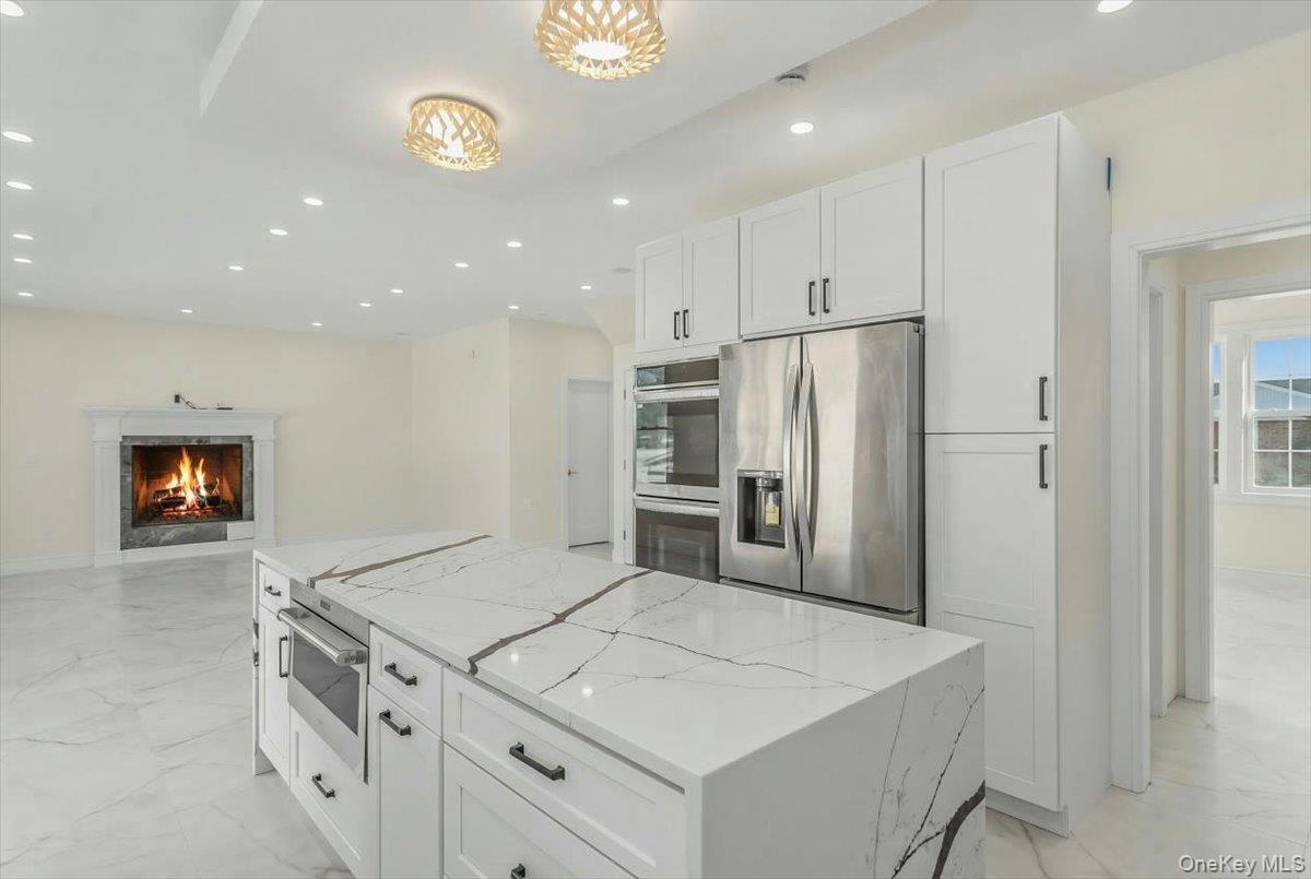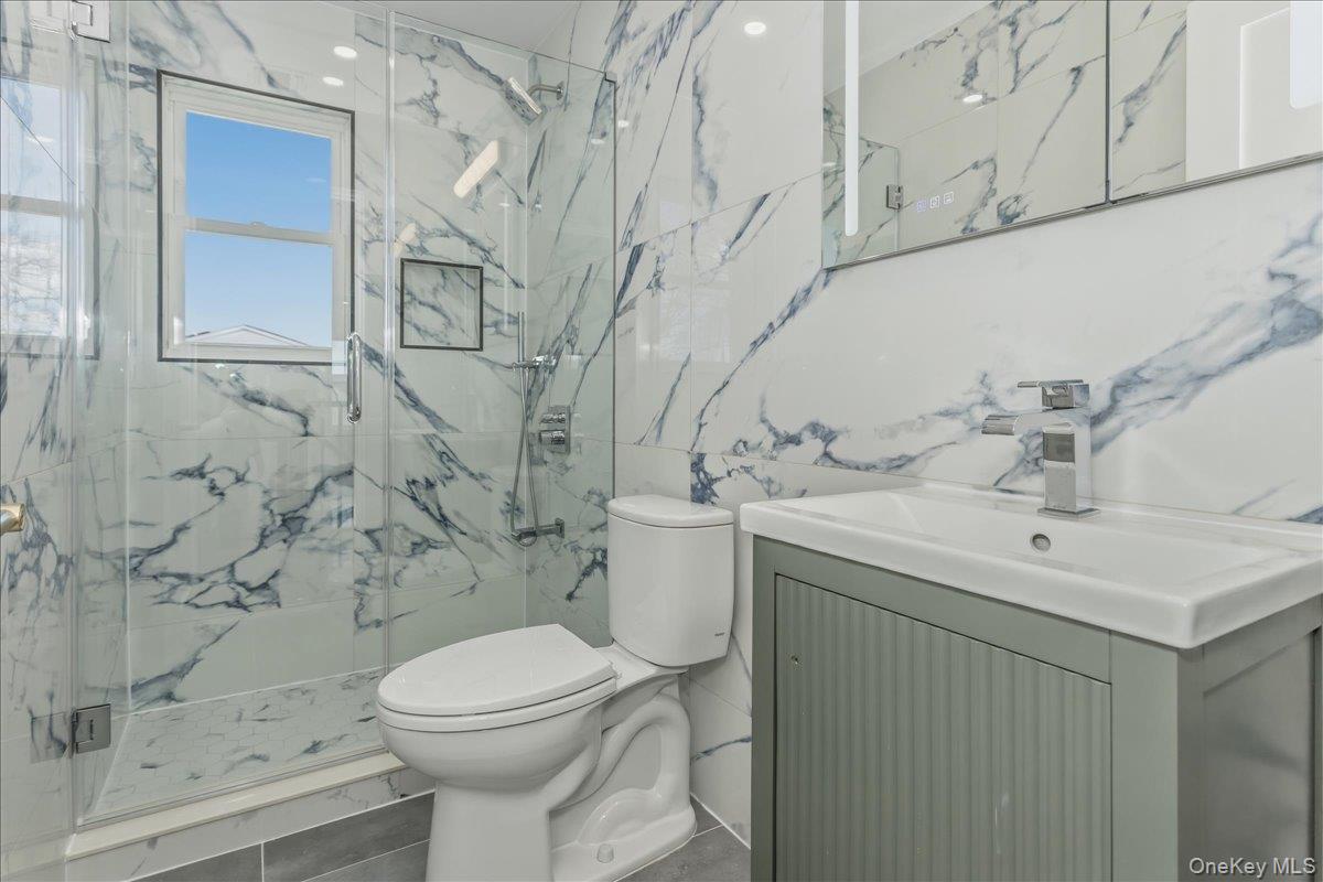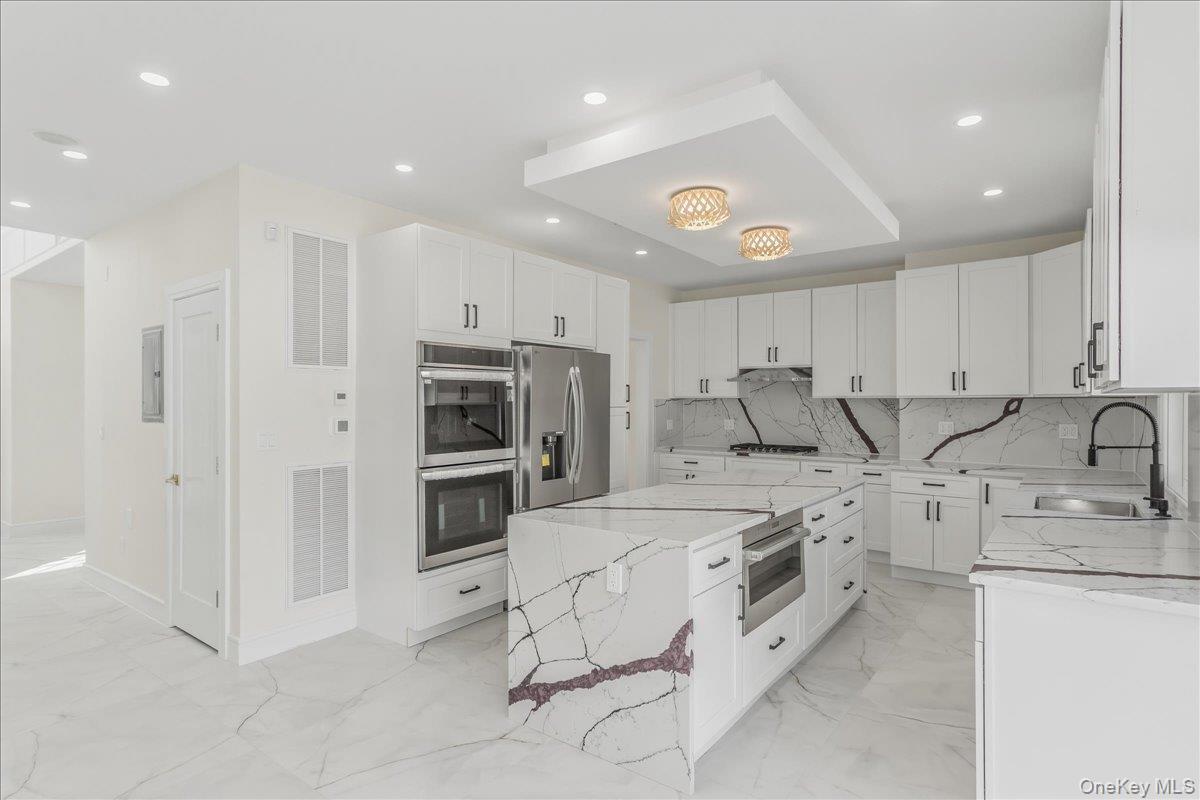 Exceptional luxury is what comes to your mind as you step in to this spectacular 5BR, 4 Full bath, colonial home in the heart of Hicksville with a full finished basement with a separate outside entrance (OSE) while providing exceptional space and versatility. Natural light floods the home through out. The designer kitchen is equipped with high-end appliances, custom cabinetry, and sleek modern finishes—perfect for both everyday living and entertaining. The main level also includes a private guest or in-law suite with a full bath. The second floor showcases a luxurious primary suite with a spa-style bath and walk-in closet, as well as three additional bedrooms and two full baths to meet the needs of any household. OTHER SPECS include: 2 AC compressors, 200 amp service with sub panel for each floor, Radiant heat for 1st floor, detached garage , 8 camera Security system, in wall Speakers , Tesla charger, Separate water heater and boiler for heat, 1 gas fire place, 1 electric fire place.