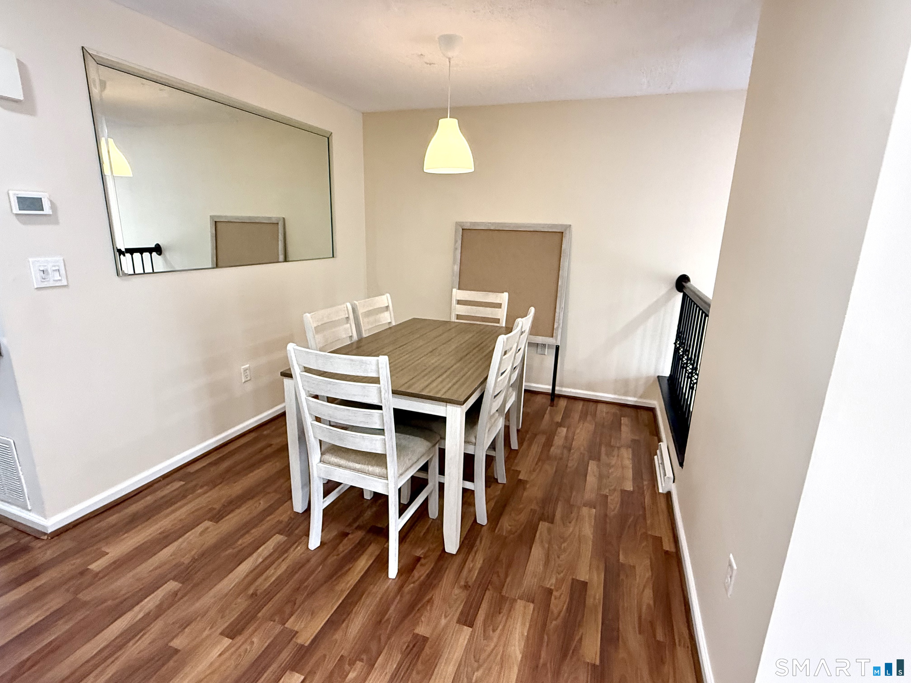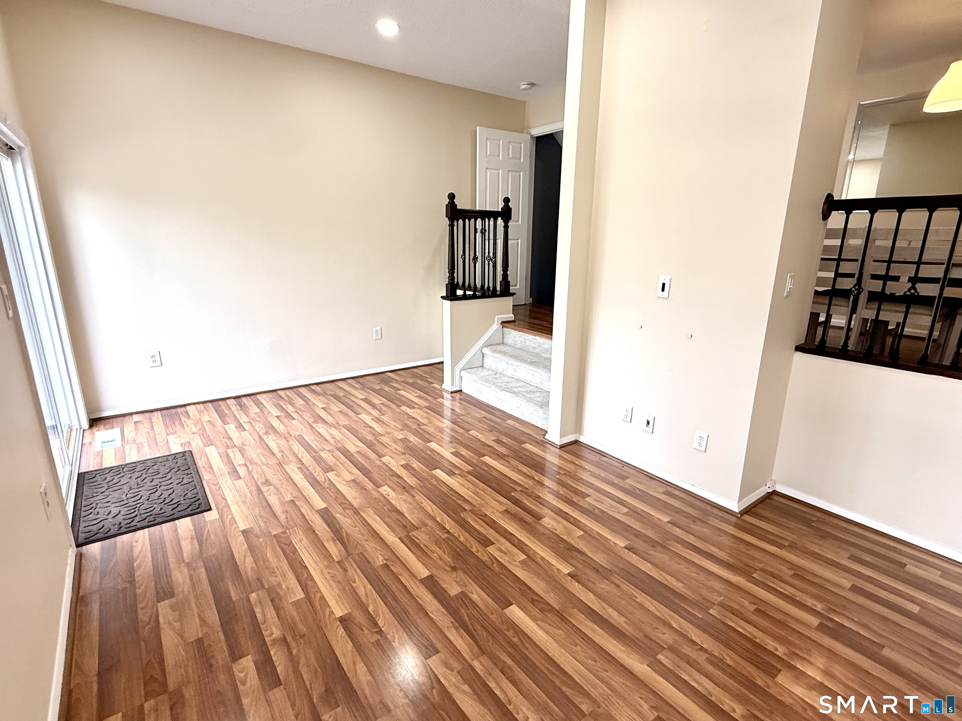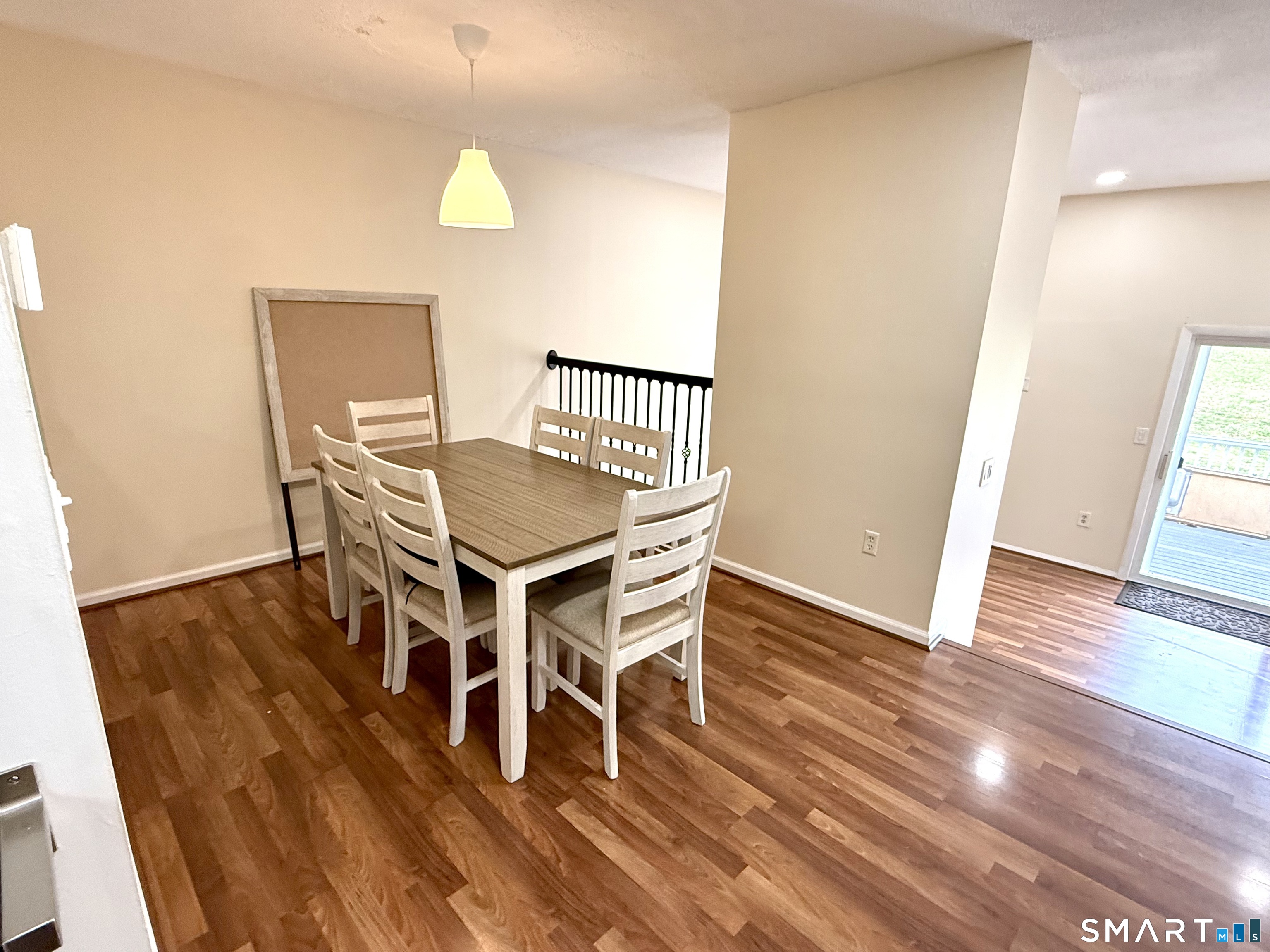 This beautifully updated and recently painted 2 bedroom, 2 full bathroom townhouse is ideally situated in a highly desirable complex. The home features an eat in kitchen with updated cabinetry, stainless steel appliances, and quartz countertops. A formal dining room flows into the sunken living room with vaulted ceilings and a slider leading to a Trex deck perfect for relaxing or entertaining. Newer flooring throughout and central air add to the home's overall comfort. Upstairs, you'll find a spacious primary bedroom with a large walk-in closet complete with an organizer, along with a private full bath featuring a glass enclosed shower. The second bedroom offers a generous closet, and the additional full bath includes a soaking tub and shower. The partially finished lower level provides flexible space ideal for a home office, entertainment area, or gym, along with a laundry area and ample storage. Enjoy convenient access to the complex's amenities, including a large pool, clubhouse, playground, and tennis courts, as well as scenic areas for walking, biking, and jogging. Ideally located with easy access to I-91 and Route 9, just minutes from shopping and Middletown's renowned restaurants, 15 minutes to Glastonbury Center, and approximately 45 minutes to beaches, premium outlets, and casinos.
