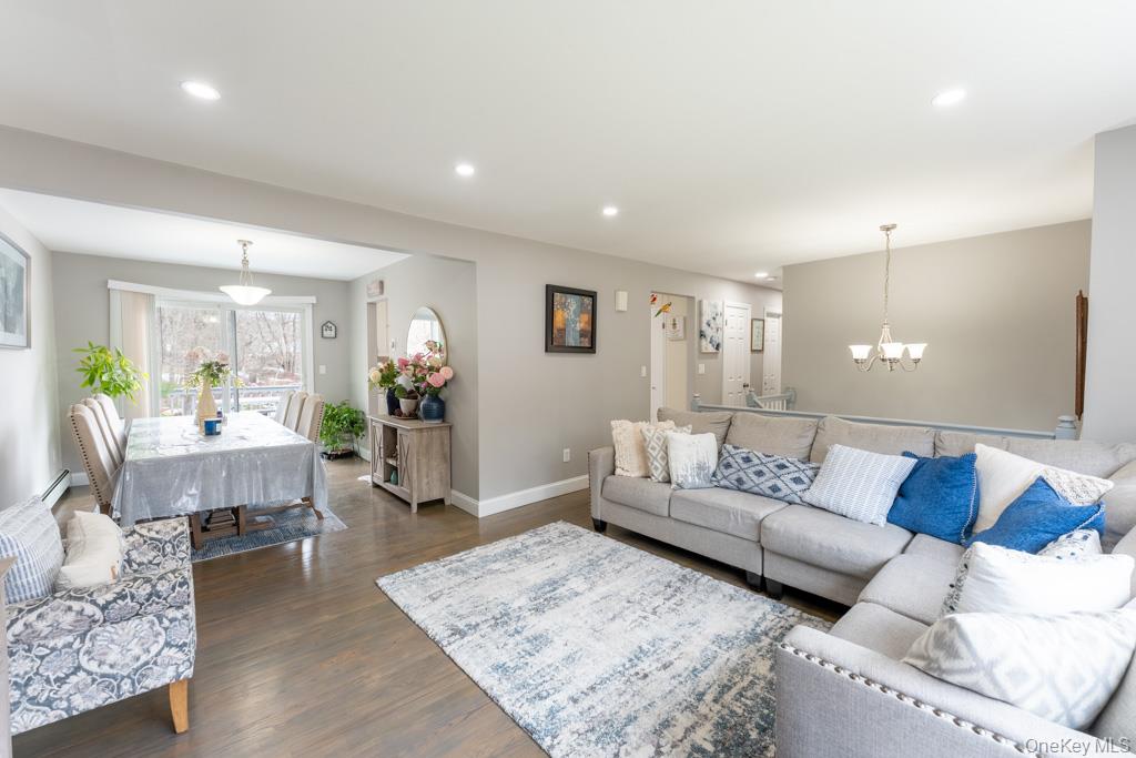 Beautiful and Well Maintained three bedroom Raised Ranch, move in ready with recent updates throughout and ideally located on the border of Westchester County within the Lakeland Central School District. This inviting home features hardwood floors, recessed lights and a bright layout perfect for everyday living. Enjoy a formal dining room with sliding glass doors leading to a spacious deck overlooking a large, private backyard perfect for relaxing or entertaining. A spacious living room with abundant natural light and kitchen with countertops, back splash and stainless steel appliances. The lower level offers additional living space with a family room or extra room, a half bathroom, and a private entrance, providing great flexibility for guests, extended living, or a home office. Conveniently located, very Close to Taconic Parkway, Mall Shopping, Schools, Park and Restaurants. Must see!