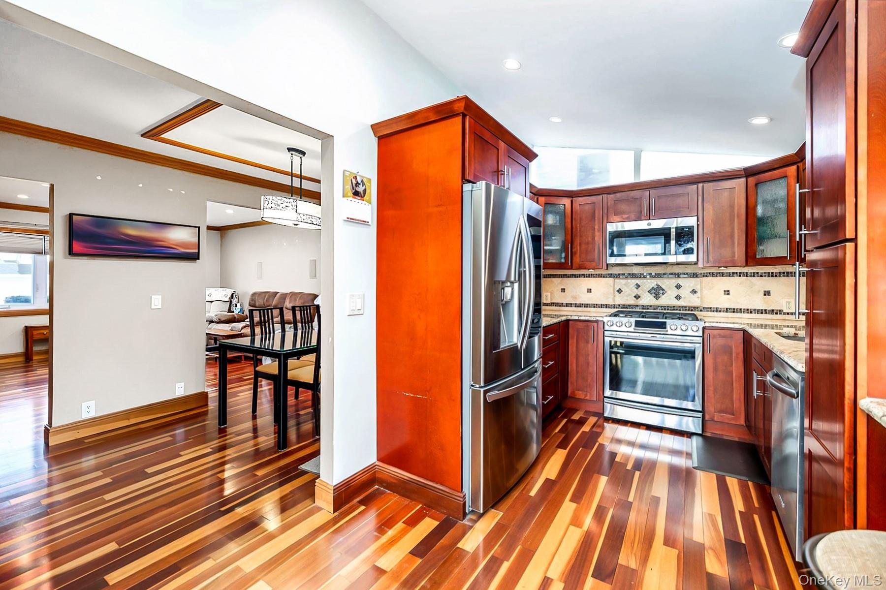 We’ve got your catch of the day right here on Fish Avenue in North Bellmore! This beautifully maintained 4-bedroom, 2-full-bath Cape blends classic charm with thoughtful updates and major system upgrades throughout. The current owners have cared for this home with incredible attention and pride, and it truly shows from the moment you arrive. The bright, updated kitchen is filled with natural light and features stainless steel appliances, including an LG French door InstaView refrigerator, gas cooking, and dishwasher. Brazilian Cherry hardwood floors run through the living room, dining room, kitchen, and hallways, adding warmth and character to the main living areas. A full finished basement provides additional versatile living space, and both the basement and bathrooms feature heated floors for added comfort. Comfort and efficiency are well covered with central air, a brand new gas forced-air furnace (2026), PureAir air purification system with UV sterilizer, and a natural gas tankless hot water heater (2025). Additional upgrades include a whole-house water filtration system, 200-amp electric service with surge protector, and a generator transfer switch with exterior outlet. The backyard is truly something special. An incredible koi pond creates a peaceful, one-of-a-kind setting where you can relax and unwind while enjoying the calming sounds of the water. The space is complemented by a Trex deck (2019), paver patio with canopy, manicured landscaping, and a custom stone built-in XO 36” stainless steel propane BBQ — perfect for entertaining or quiet evenings at home. An Andersen sliding door with built-in blinds connects the indoor and outdoor spaces beautifully. Additional highlights include Andersen kitchen windows (2017), a custom stair railing, updated paver walkway and stoop, and a full-length driveway leading to a 1. 5-car garage with professional slat wall organization. A truly special home in the heart of North Bellmore that reflects years of care, pride of ownership, and thoughtful upgrades — this one is a keeper!