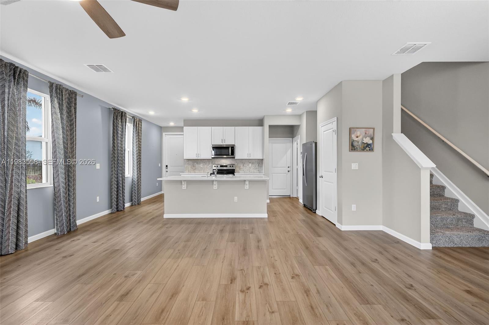 Experience elevated living in this beautifully upgraded 2024-built former model home, showcasing thoughtful design and premium features throughout. The modern kitchen impresses with crisp white cabinetry, upgraded countertops, a stylish backsplash, and premium Whirlpool appliances, seamlessly flowing into a bright living space enhanced by luxury vinyl flooring. Impact windows and doors offer added peace of mind, while the garage stands out with fully finished walls, sleek epoxy flooring, and an electric vehicle charger. Enjoy serene partial lake views and the convenience of an extended driveway. Priced to sell—this exceptional home won’t last long!