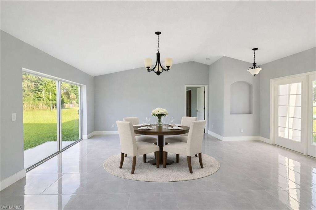One or more photo(s) has been virtually staged, AI generated or rendered. Welcome to your beautifully renovated retreat in the heart of Lehigh Acres, FL! This charming single-family home offers 1, 639 square feet of thoughtfully designed living space, blending comfort, style, and functionality. Step inside to discover an open and inviting floor plan highlighted by sleek tile flooring that flows seamlessly throughout. The spacious living area is bathed in natural light from large windows, creating a warm, welcoming atmosphere perfect for relaxing or entertaining. Recently updated with a new roof, this home combines modern upgrades with peace of mind. It features three generously sized bedrooms, providing plenty of space for rest and privacy. The primary suite serves as a true sanctuary, complete with a private en-suite bathroom adorned with elegant fixtures and finishes, while a second, beautifully updated bathroom ensures comfort and convenience for guests and family alike. The kitchen is a chef’s delight, offering ample cabinetry and counter space, perfect for meal prep or hosting dinner gatherings. The adjacent dining area flows effortlessly into the main living space, making it ideal for both everyday living and entertaining. Outside, enjoy a beautifully landscaped yard—a peaceful setting for morning coffee, outdoor activities, or soaking up the Florida sunshine. Located in a desirable neighborhood close to local shops, dining, and amenities, this home offers the perfect balance of modern living and everyday convenience. Don’t miss your chance to make this move-in-ready, newly renovated gem your own—schedule your private showing today and experience the best of Lehigh Acres living!