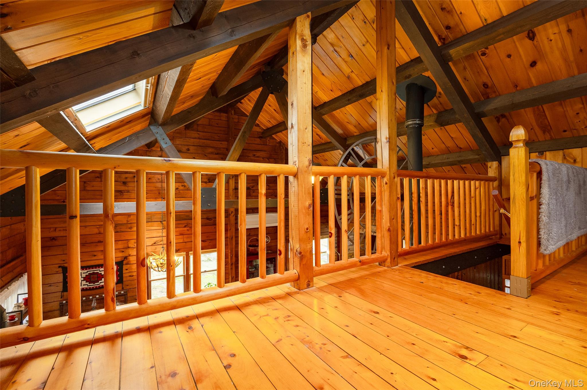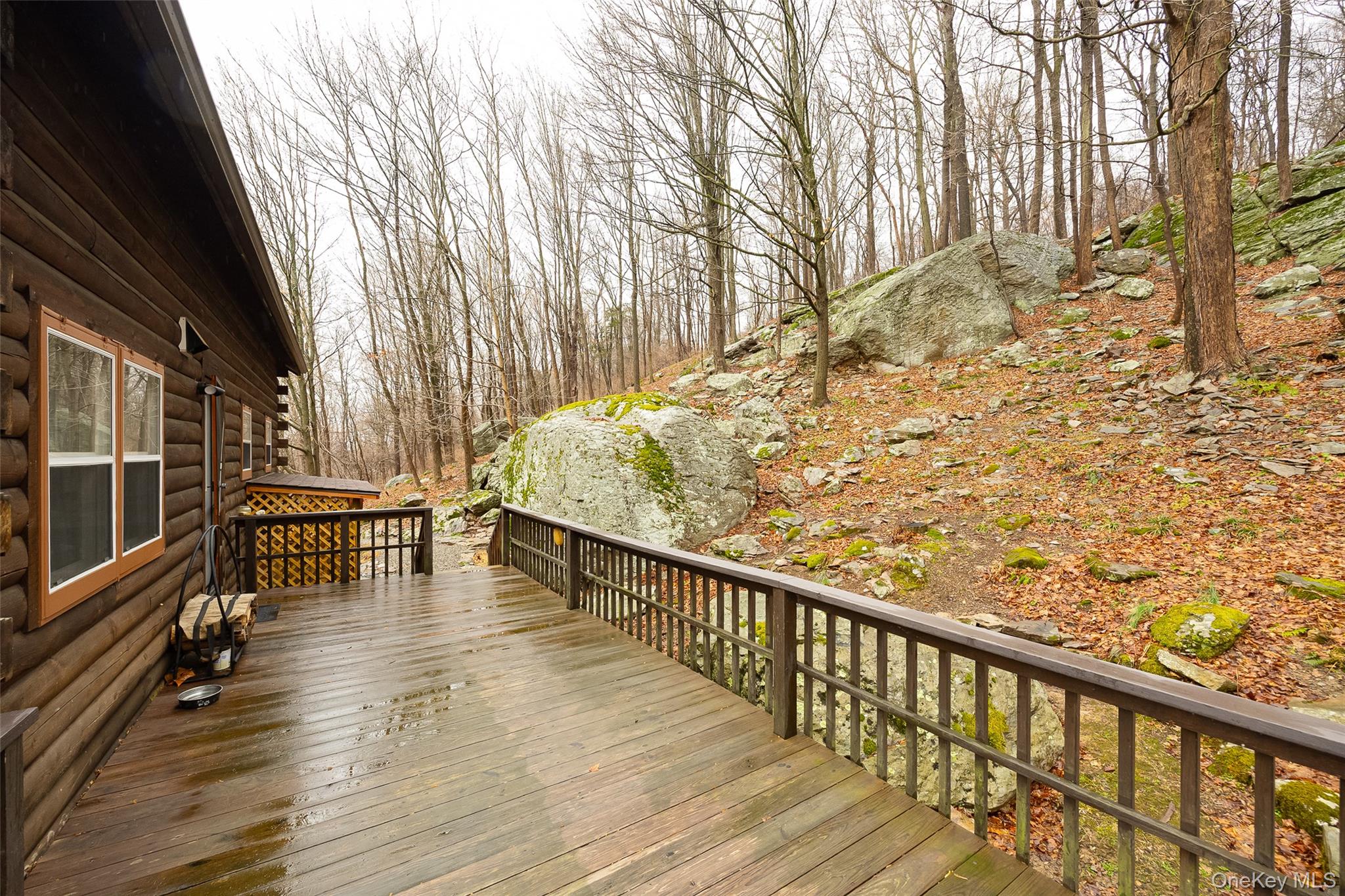 This beautiful log home is tucked away on 7 1/2 acres of manicured yard and wooded hillside. You'll feel like you're on top of the world with amazing views across the Hudson Valley, while living only 20 minutes from the Metro North train station. Whether you're looking for a year-round home or a weekend getaway or an Airbnb money maker, this property has so much to offer. You enter into a spacious living area with cathedral ceiling and woodburning stove that keeps the home warm and cozy. In addition to two bedrooms, there is an airy loft for extra sleeping space and skylights that fill the house with natural light. The unfinished basement makes it a true find and easy to expand. Recent updates include a 2025 hot water heater, and the refrigerator, dishwasher, and microwave are all just two years young. The roof was newer when the current owner purchased. In addition to electric baseboard and the central woodstove, new mini-splits on each floor provide both heat and air conditioning. The surrounding landscape provides peaceful exterior living. Sit on your rocking chair on the front porch to sip your morning coffee or relax with a book outback on your secluded deck, taking in the beauty of Shenandoah Mountain. A seasonal stream flows through the side of the property and a fire pit overlooks the fenced back yard, perennial gardens, and patio. This is charming country living at its easiest
