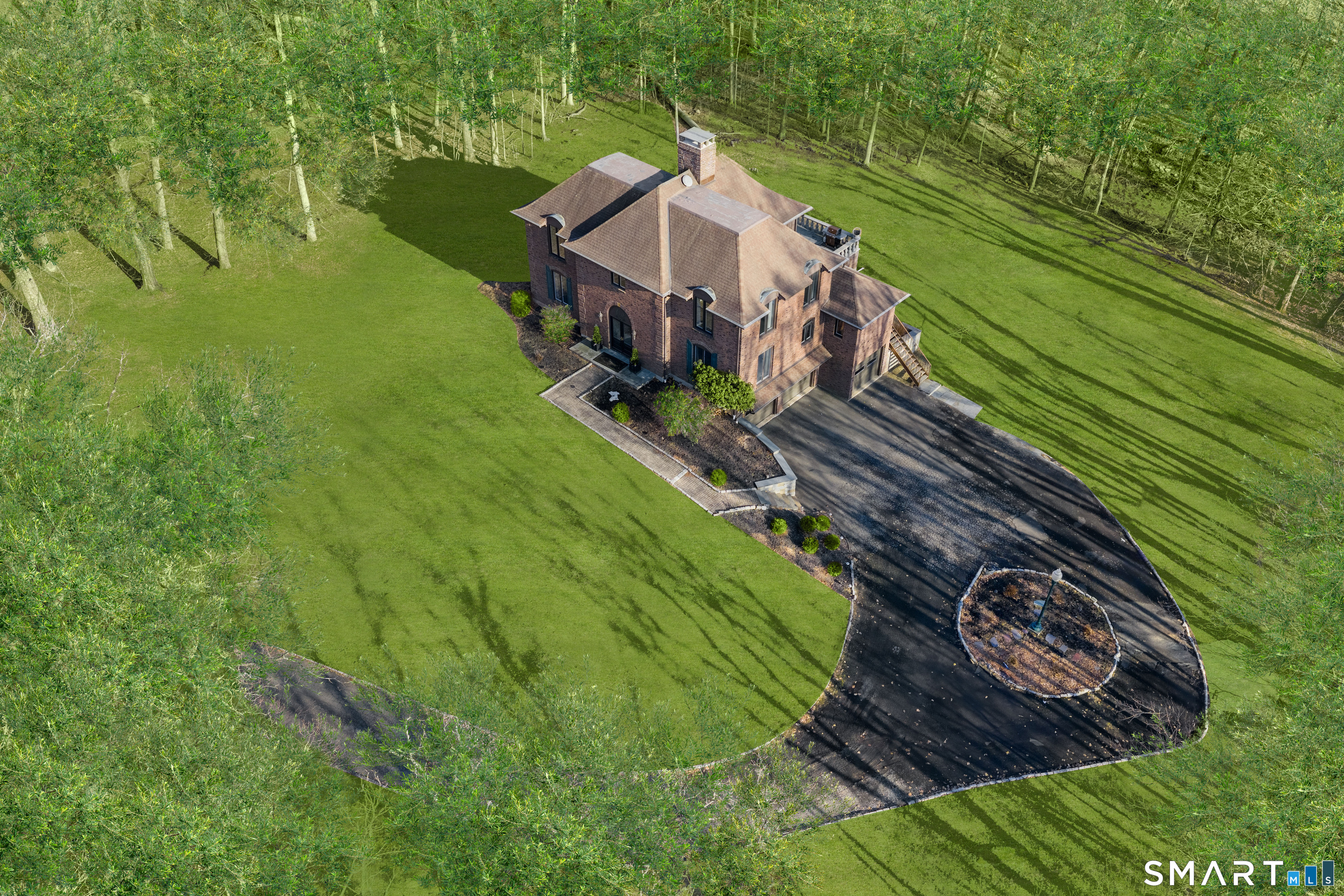 Evoking the timeless elegance of Newport's grand estates, this charming 'Baby Breakers' style all-brick residence blends classic architecture with refined detailing and a stunning Newport-style terrace-perfect for elegant al fresco dining, entertaining or simply relaxing. Privately set on three beautiful, level acres at the end of a peaceful cul-de-sac, this exceptional property borders Aquarion Water conservation land and the Easton Reservoir & dam, offering a rare combination of privacy, serenity and natural beauty. Inside, refined spaces feature coffered ceilings, dentil crown molding, two fireplaces, central vac and a graceful curved staircase. 75 Lilac offers generously sized rooms, oversized closets, a desirable walk-in pantry, natural gas connected to the home-offering ease for future conversion and city water-highly sought-after amenities in Easton. A standout highlight is the library/family room with rich oak accents, coffered ceiling, fireplace, and French doors opening to the terrace, creating a perfect setting for entertaining, bird watching, or peaceful mornings overlooking the grounds. Blending expansive rooms, elegance and exceptional architectural integrity, this home offers the ideal opportunity to move right in or thoughtfully update to create a truly extraordinary estate. Ideally located for today's lifestyle, with easy access to local farms, parks, golf, tennis, sports fields, the Merritt Parkway, Metro-North trains, beaches, top-rated schools & more! Opportunities like this rarely last-schedule your private showing today!