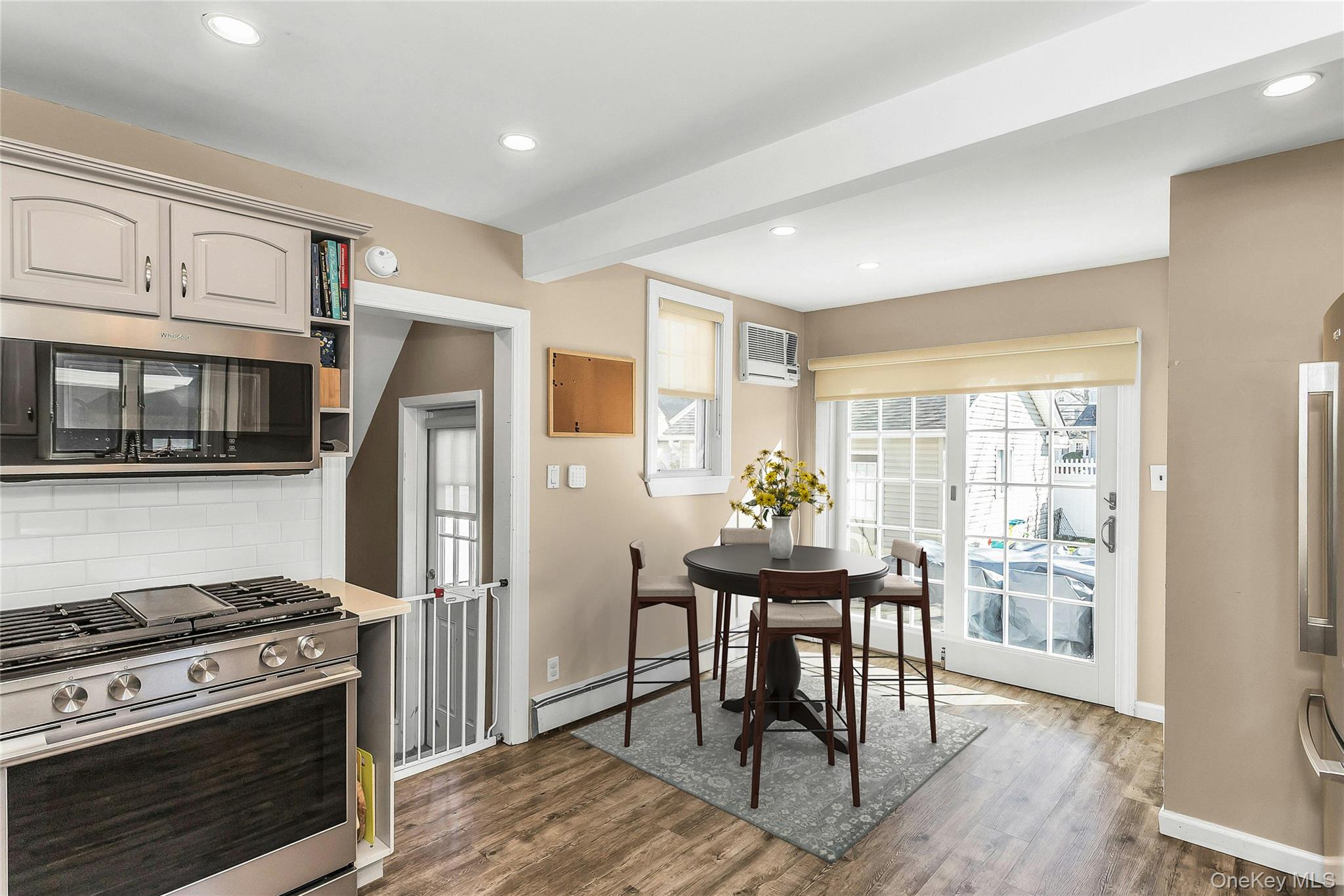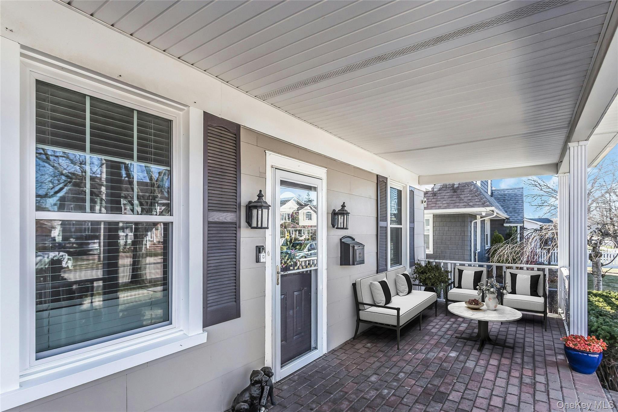 Welcome to this charming three-bedroom, one and a half bath Colonial offering classic character and comfortable living throughout. A covered front porch welcomes you into a bright and inviting interior featuring a formal dining room and a spacious living room with a cozy wood burning fireplace perfect for relaxing evenings at home. The open eat in kitchen provides great flow for everyday living and entertaining, with sliders leading out to a patio and outdoor entertainment area ideal for gatherings. Upstairs, you'll find three well proportioned bedrooms and full bath. A walk up attic offers excellent storage or potential for future expansion. The full basement with outside entrance houses utilities and includes a washer and dryer, providing additional storage and functional space. Six photographs have been virtually staged.