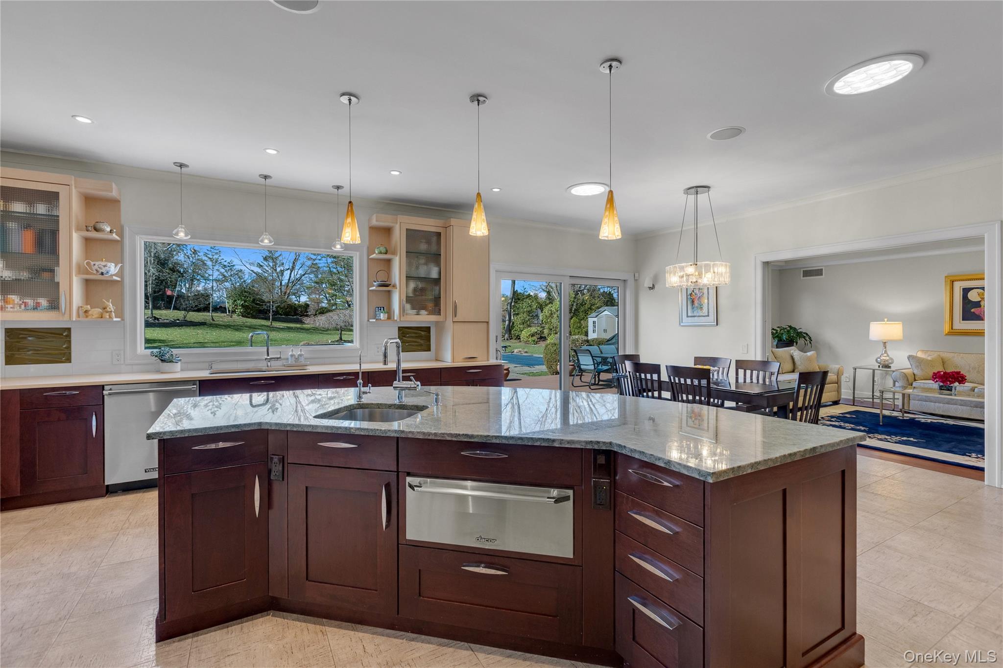 Stunning custom-built 5/6 bedroom Colonial showcasing exceptional craftsmanship and timeless design. This elegant residence offers a spacious and versatile layout, featuring oversized rooms, high ceilings, refined finishes, and seamless flow for entertaining. At the heart of the home is a large chef’s center island kitchen equipped with top-of-the-line appliances, radiant heated flooring and custom Wood Mode Cabinetry, ideal for culinary enthusiasts and gatherings of any size. The luxurious primary suite creates an atmosphere of comfort and sophistication with a separate sitting area, walk in closet featuring custom built-ins for optimal organization and spa like primary bath with radiant heated floor. Additional generously sized bedrooms provide flexibility for extended living, including a potential sixth bedroom or private office. Additional features include front and rear staircases, 9 foot ceilings on both the first and second floors, gas heat, central vacuum, CAC plus so much more! Set on an incredible . 72-acre landscaped property with In Ground Pool, this special home offers fabulous outdoor entertaining possibilities. Located within the Harborfields School District and just minutes to Huntington Village, shopping, dining, and the train station, this home perfectly balances luxury, convenience, and tranquility.