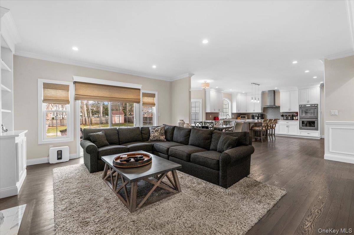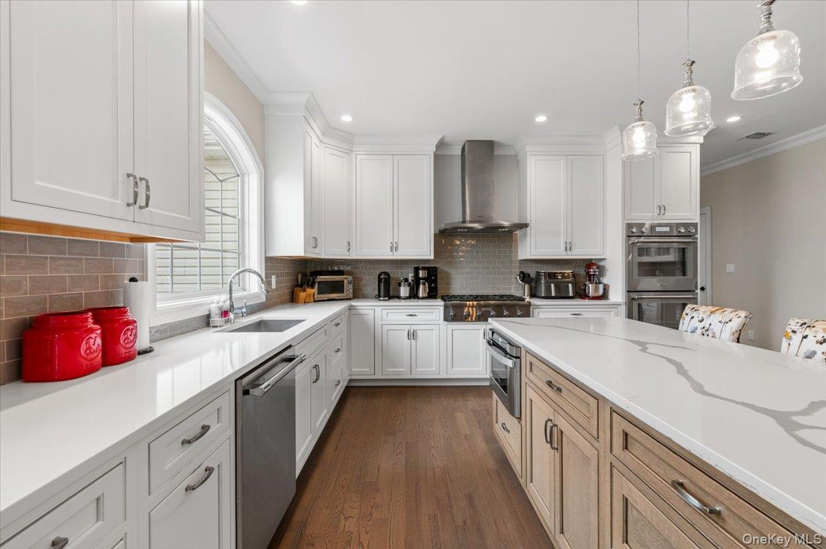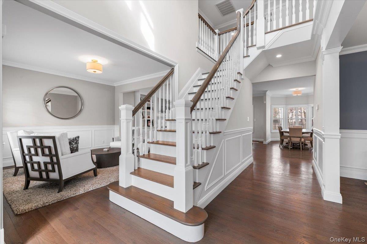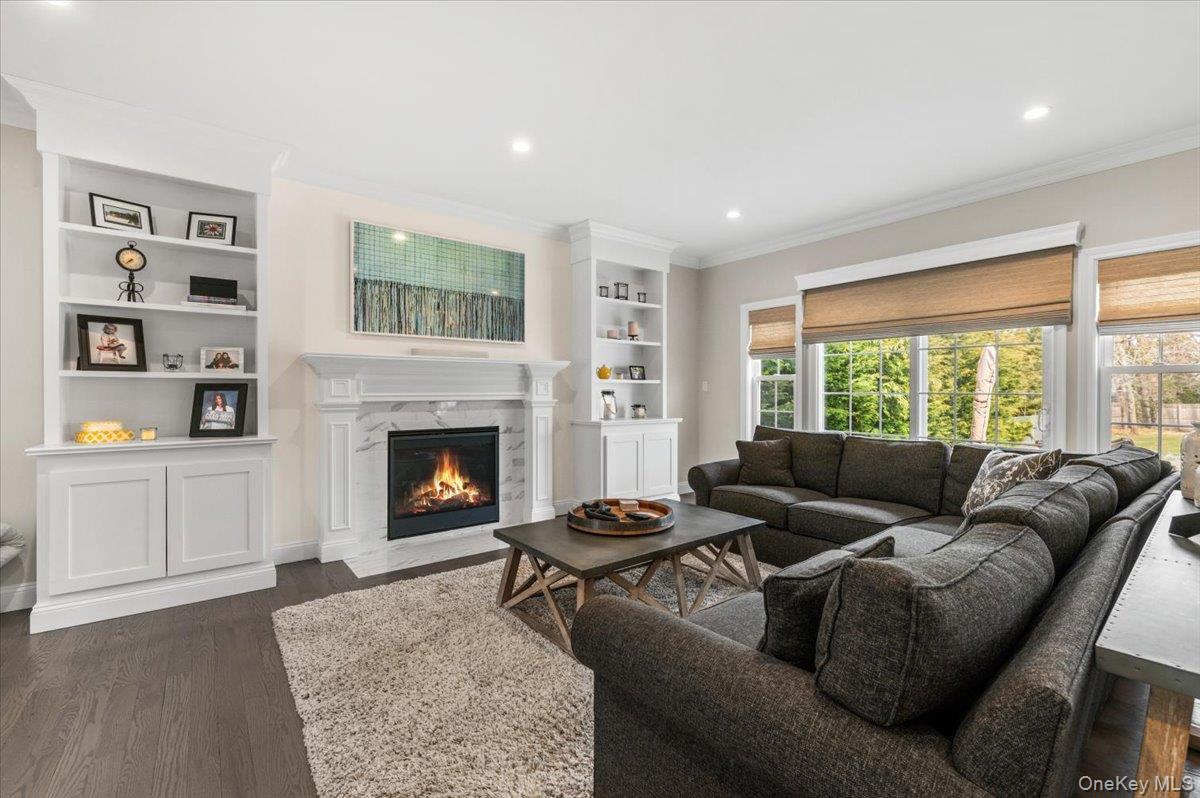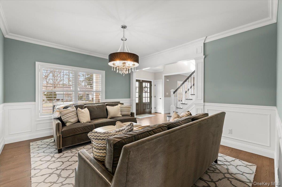 North Syosset welcomes this exceptional, nearly new construction Colonial, built in 2019 and ideally situated on an expansive and private lot that is just shy of a half acre, in the heart of Syosset. Boasting over 5, 000 sq ft of beautifully finished living space, this residence seamlessly blends timeless elegance with modern design and functionality. A grand entry foyer introduces a thoughtfully designed main level, featuring a formal living room, an elegant formal dining room, and a spacious family room with a fireplace and sliding doors that open to a newly installed paver patio—perfect for indoor-outdoor entertaining. The open-concept chef’s kitchen is the centerpiece of the home, complete with stainless steel appliances, a large center island, wine refrigerator, gas cooktop, and dual wall ovens. The first floor also offers a desirable second primary bedroom with en suite bath and outside entrance, a powder room, a custom-designed mudroom, and a convenient laundry room, along with access to the two-car garage. The second level features a luxurious primary suite with custom his-and-hers walk-in closets and a spa-inspired bath. Additional accommodations include one bedroom with a full hall bath and two generously sized bedrooms with walk-in closets connected by a Jack and Jill bathroom, offering both comfort and privacy. The fully finished basement with high ceilings and an outside entrance provides exceptional additional living space, including a large recreation area, a dedicated exercise room, and ample storage—offering endless possibilities. Enhanced with custom shutters and blinds throughout, upgraded closet systems, and set on a rare oversized lot providing exceptional privacy, this home represents a unique opportunity to own a move-in ready, meticulously maintained property in a prime Syosset location.