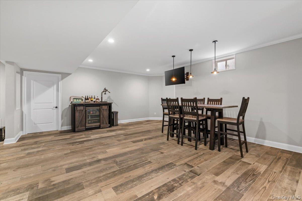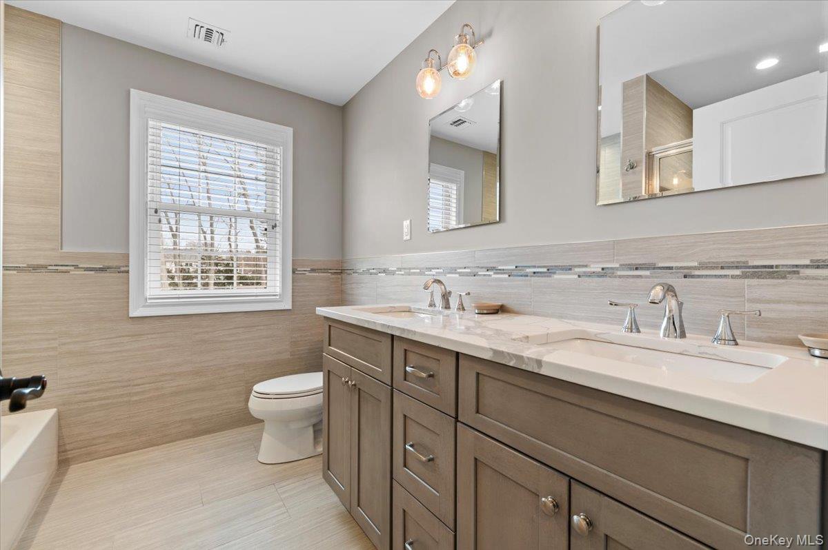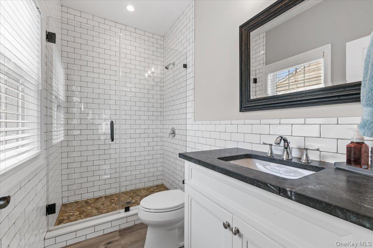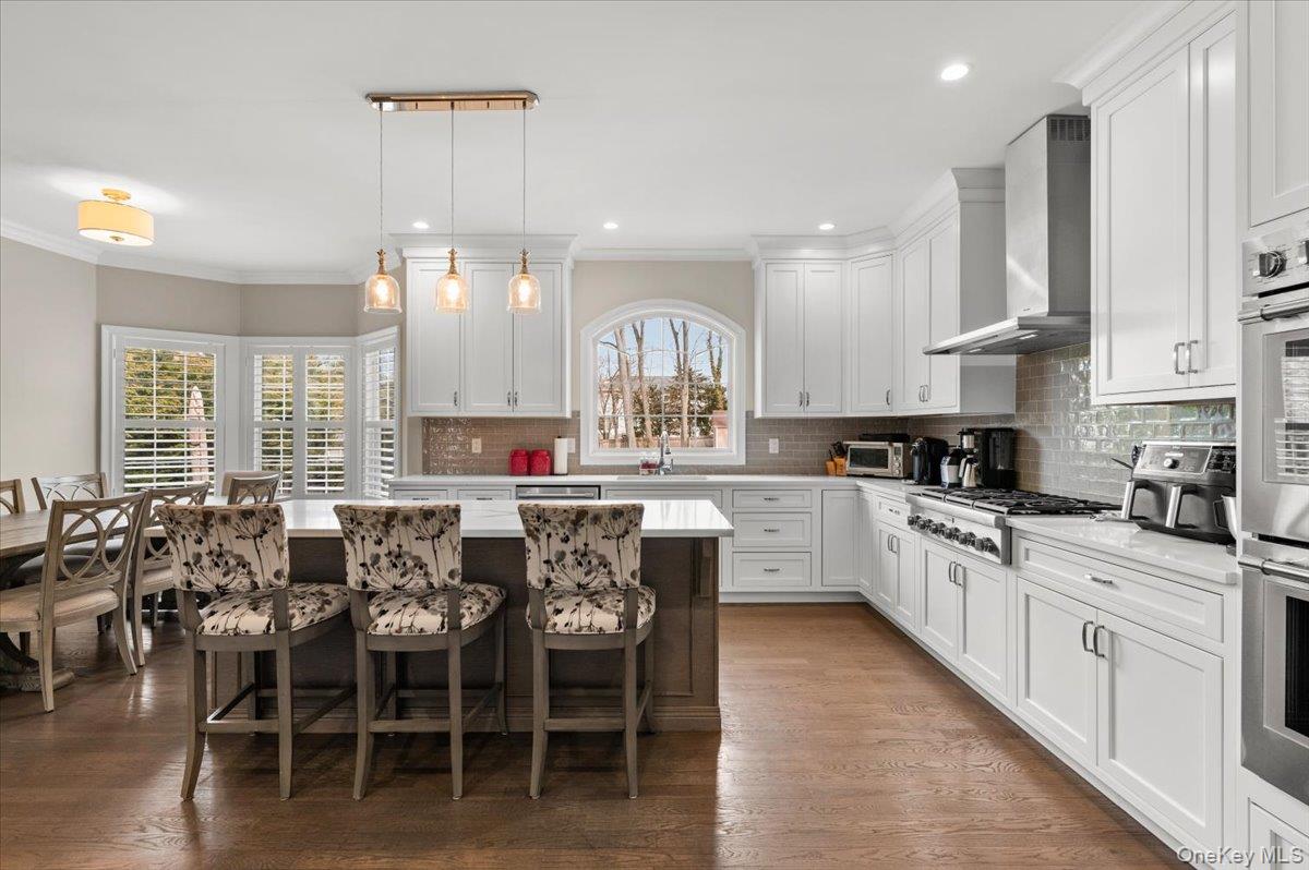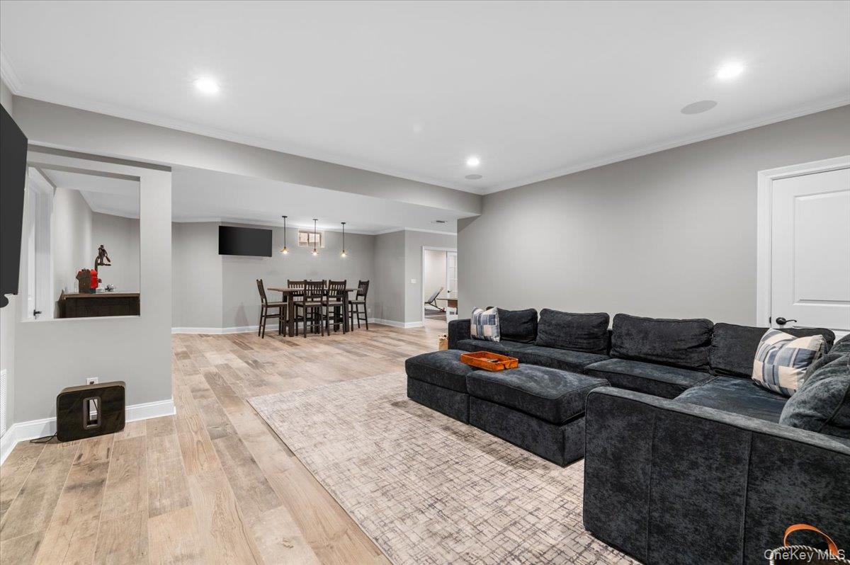 North Syosset welcomes this exceptional, nearly new construction Colonial, built in 2019 and ideally situated on an expansive and private lot that is just shy of a half acre, in the heart of Syosset. Boasting over 5, 000 sq ft of beautifully finished living space, this residence seamlessly blends timeless elegance with modern design and functionality. A grand entry foyer introduces a thoughtfully designed main level, featuring a formal living room, an elegant formal dining room, and a spacious family room with a fireplace and sliding doors that open to a newly installed paver patio—perfect for indoor-outdoor entertaining. The open-concept chef’s kitchen is the centerpiece of the home, complete with stainless steel appliances, a large center island, wine refrigerator, gas cooktop, and dual wall ovens. The first floor also offers a desirable second primary bedroom with en suite bath and outside entrance, a powder room, a custom-designed mudroom, and a convenient laundry room, along with access to the two-car garage. The second level features a luxurious primary suite with custom his-and-hers walk-in closets and a spa-inspired bath. Additional accommodations include one bedroom with a full hall bath and two generously sized bedrooms with walk-in closets connected by a Jack and Jill bathroom, offering both comfort and privacy. The fully finished basement with high ceilings and an outside entrance provides exceptional additional living space, including a large recreation area, a dedicated exercise room, and ample storage—offering endless possibilities. Enhanced with custom shutters and blinds throughout, upgraded closet systems, and set on a rare oversized lot providing exceptional privacy, this home represents a unique opportunity to own a move-in ready, meticulously maintained property in a prime Syosset location.