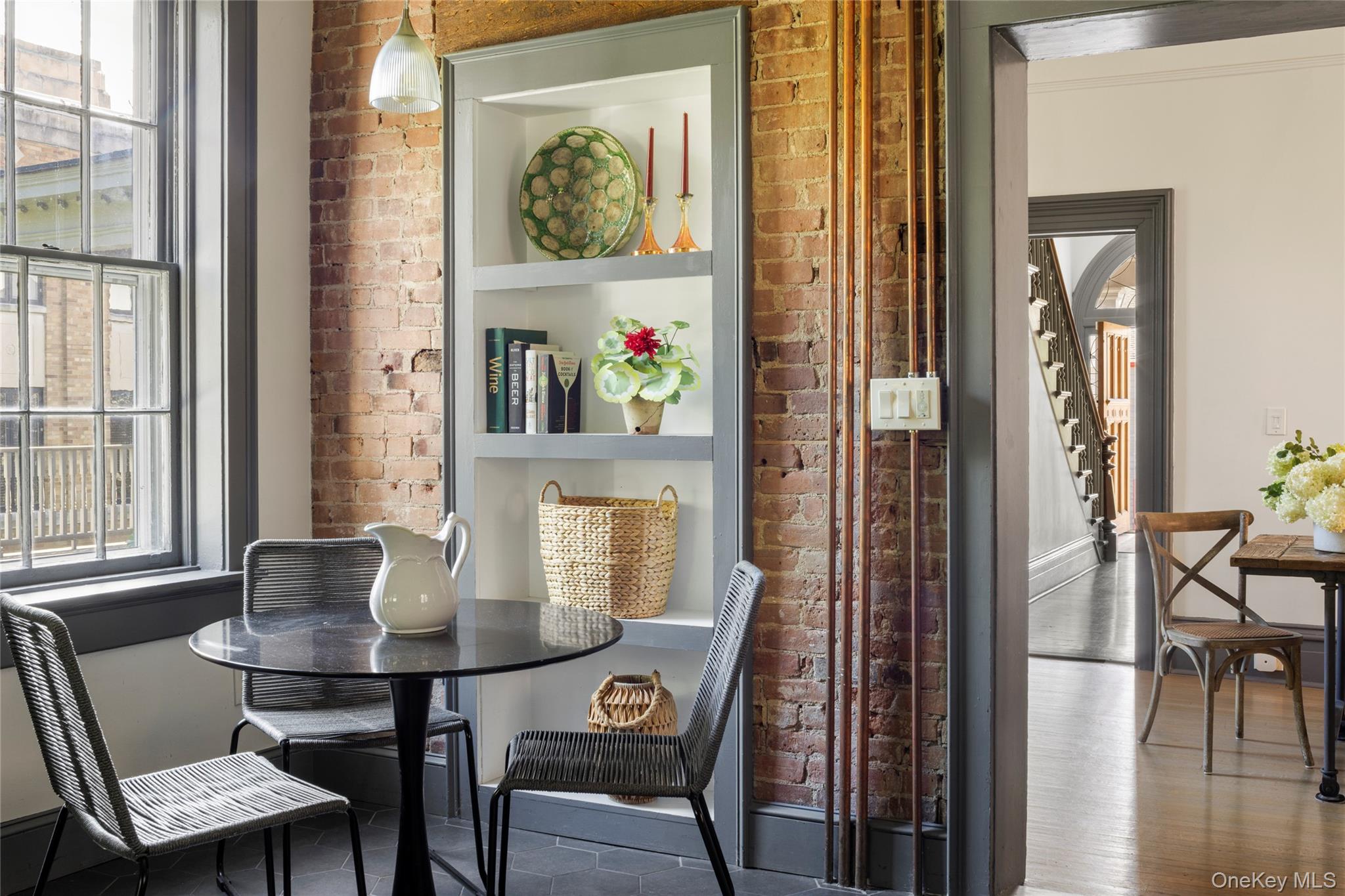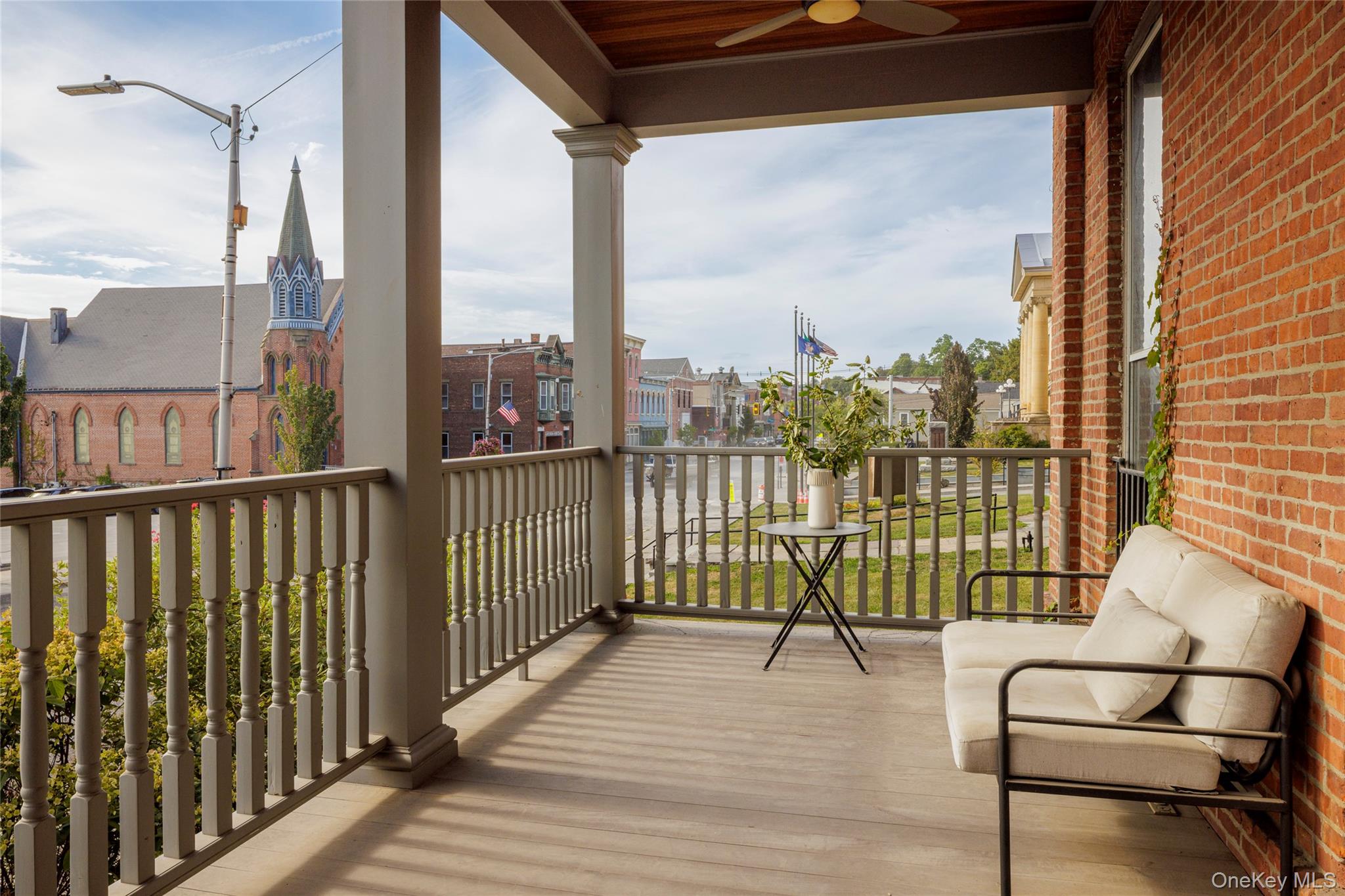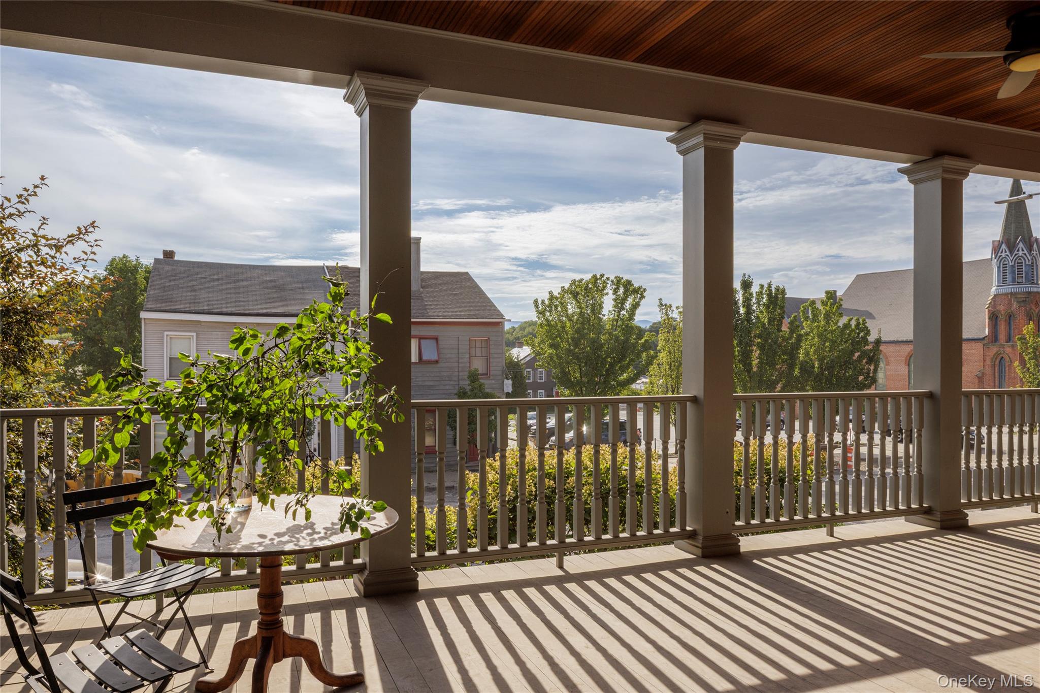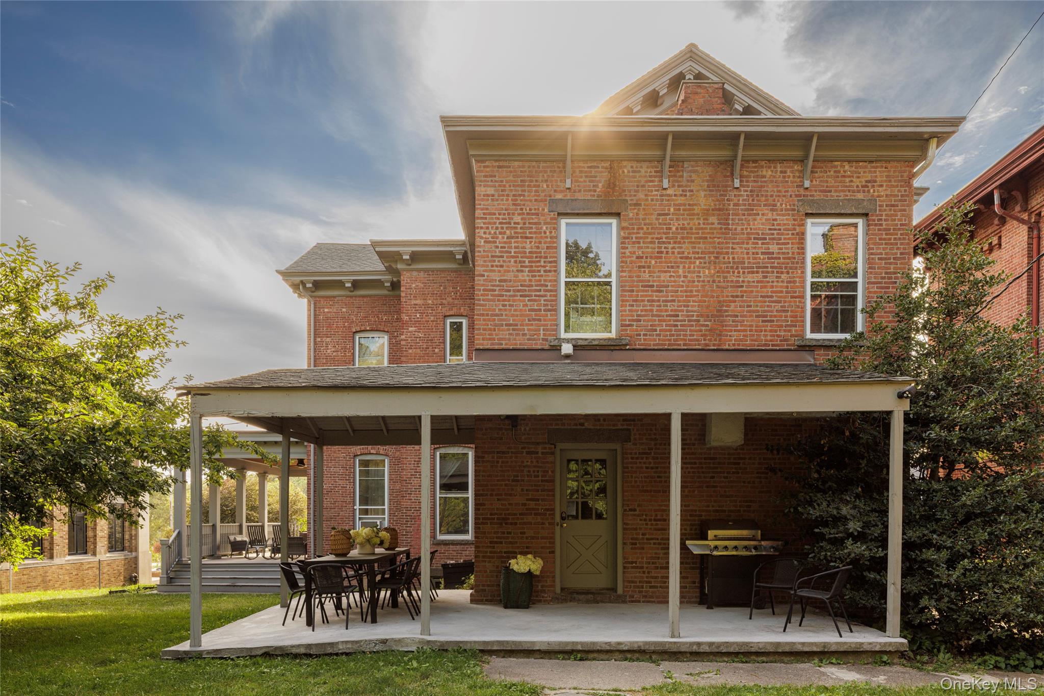 Welcome to the Catskill Parsonage, a majestic Italianate home located in the heart of Catskill Village. Built in 1868, the home has been restored by its current owners ensuring modern amenities can be enjoyed amidst the historical grandeur and scale. The striking red brick facade is framed on the first floor by a meticulously reconstructed wrap-around porch. Ascend the grand stone stairs to a carved front door surrounded by leaded glass sidelights and transom. A gracious center hall runs the length of the stairs, highlighting the scale of the home. A parlor room to the right flows seamlessly to the front porch, perfect for greeting and entertaining guests. To the left, a generous living room is anchored by a gas-burning fireplace. Windows flank the exterior walls and flood the space with light. The dining room awaits at the end of the center hall and comfortably accommodates large parties. The kitchen is industrial in scale but cozy in practice. An eating nook framed by built-in shelves overlooks the yard. The kitchen door leads to the back yard and patio, another perfect space for entertaining al fresco. A stylish powder room off the dining room completes the ground floor. The grand staircase leads to a generous landing on the second floor. The primary bedroom is large, boasting three walls of windows. Three guest bedrooms surround the landing and share a bathroom with modern finishes. A fifth bedroom is found in the rear, adjacent to a dedicated laundry room. Municipal sewer and water, with village natural gas available. 10 minutes to Hudson and Amtrak, 20 to Kaaterskill Falls, 25 minute to Hunter Mountain and minutes to Casa Susanna, Willa's, Foreland, Return Brewing & Left Bank Ciders. Less than 2 hours to NYC.
