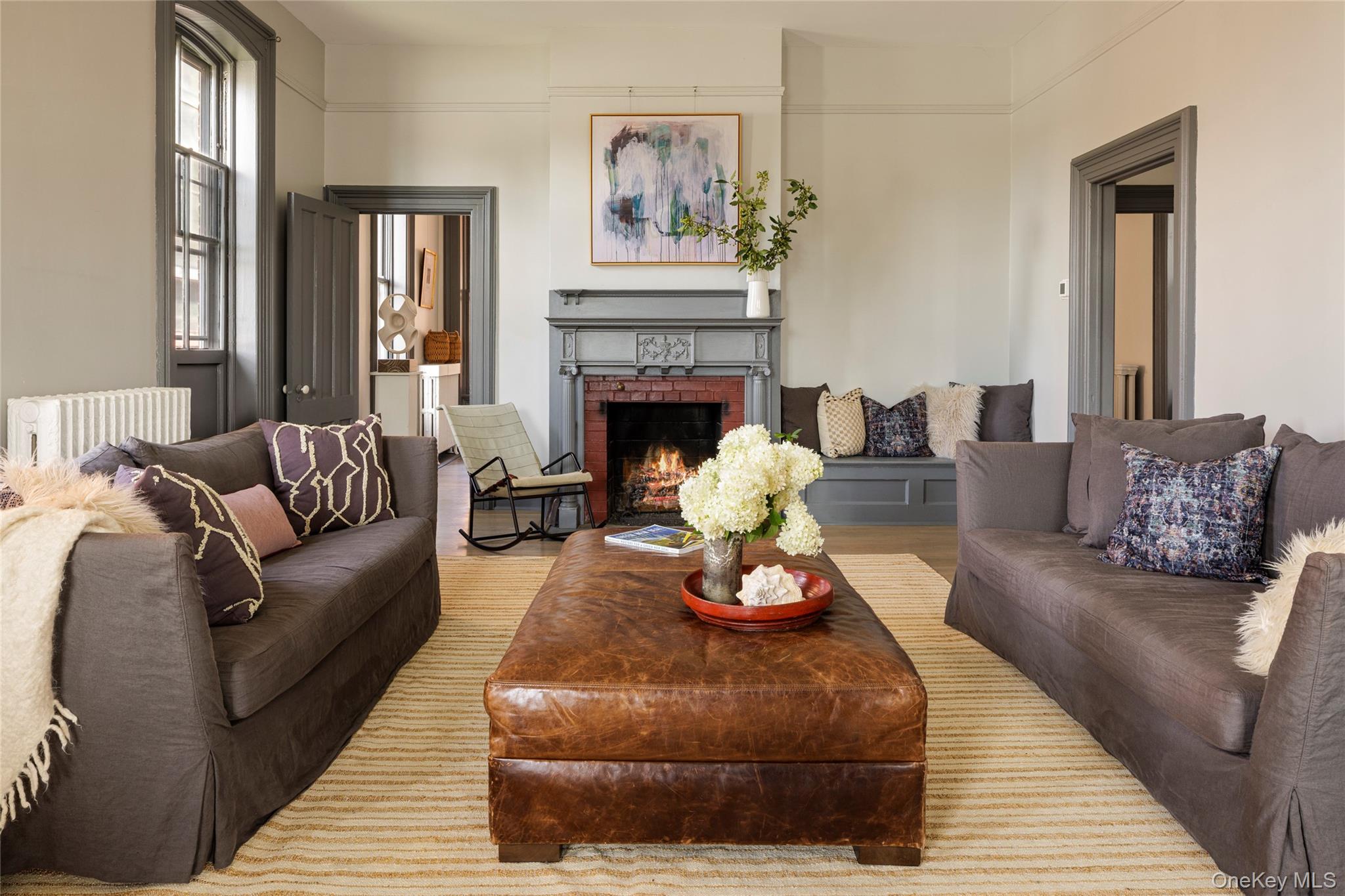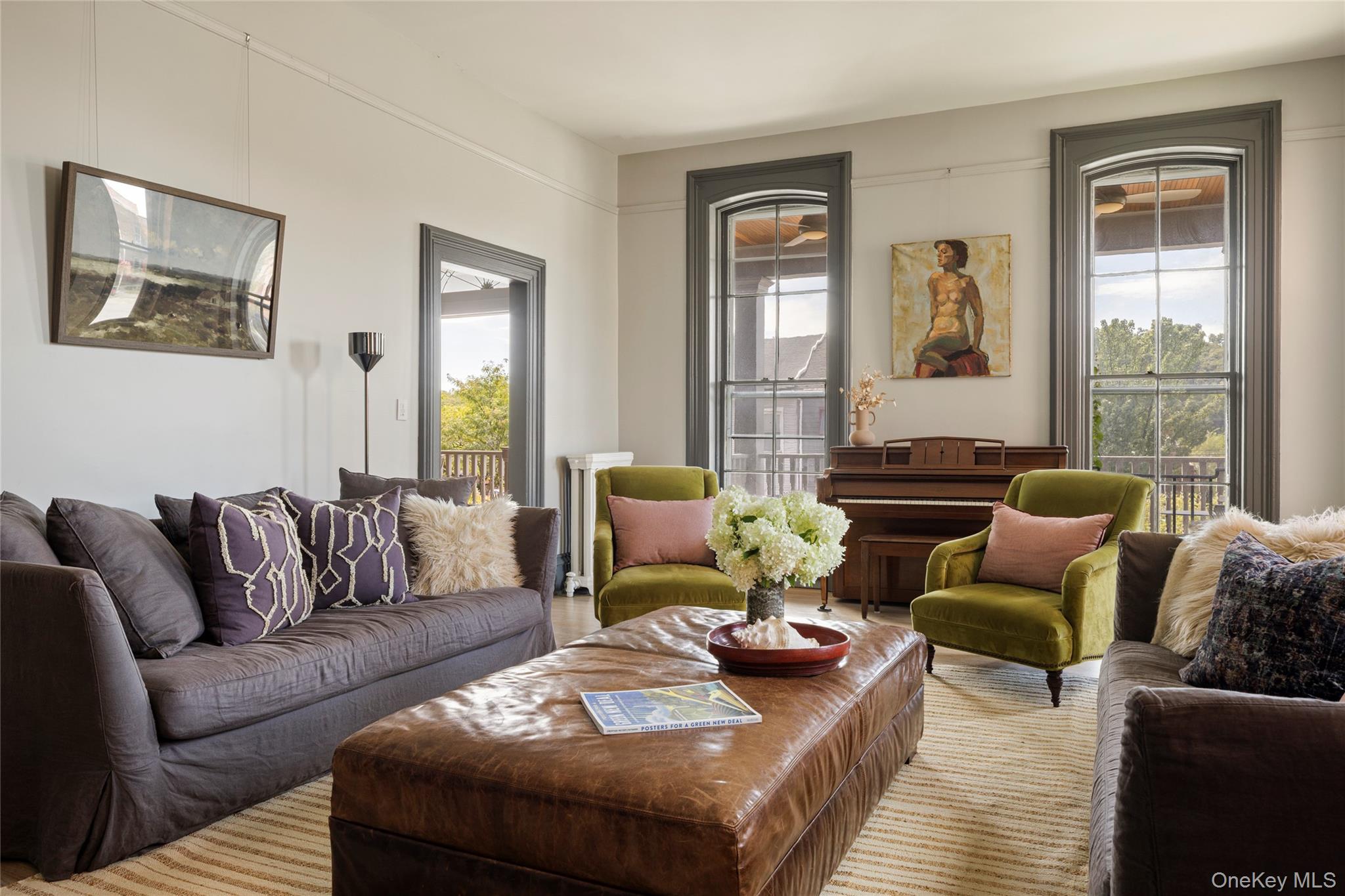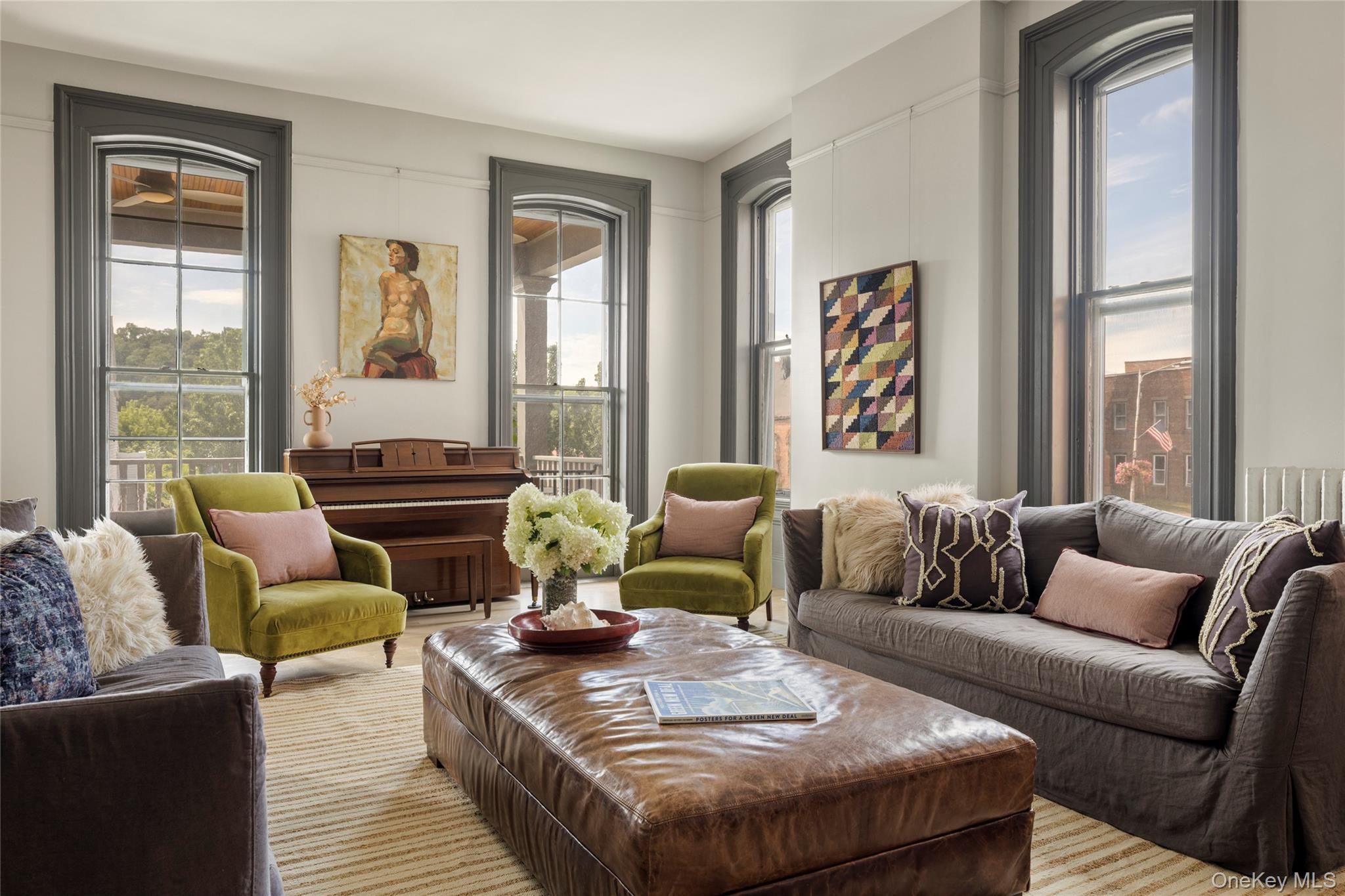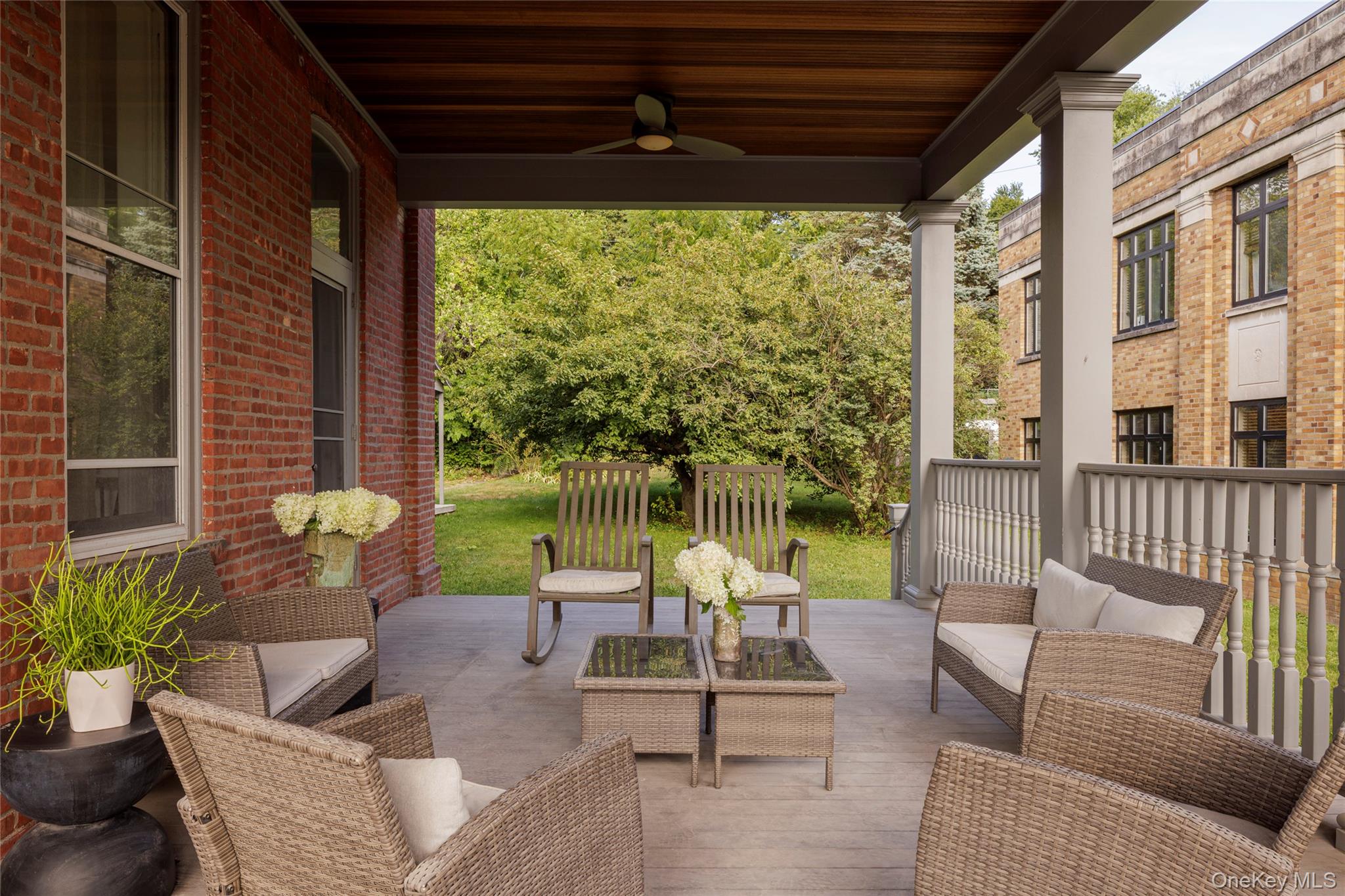 Welcome to the Catskill Parsonage, a majestic Italianate home located in the heart of Catskill Village. Built in 1868, the home has been restored by its current owners ensuring modern amenities can be enjoyed amidst the historical grandeur and scale. The striking red brick facade is framed on the first floor by a meticulously reconstructed wrap-around porch. Ascend the grand stone stairs to a carved front door surrounded by leaded glass sidelights and transom. A gracious center hall runs the length of the stairs, highlighting the scale of the home. A parlor room to the right flows seamlessly to the front porch, perfect for greeting and entertaining guests. To the left, a generous living room is anchored by a gas-burning fireplace. Windows flank the exterior walls and flood the space with light. The dining room awaits at the end of the center hall and comfortably accommodates large parties. The kitchen is industrial in scale but cozy in practice. An eating nook framed by built-in shelves overlooks the yard. The kitchen door leads to the back yard and patio, another perfect space for entertaining al fresco. A stylish powder room off the dining room completes the ground floor. The grand staircase leads to a generous landing on the second floor. The primary bedroom is large, boasting three walls of windows. Three guest bedrooms surround the landing and share a bathroom with modern finishes. A fifth bedroom is found in the rear, adjacent to a dedicated laundry room. Municipal sewer and water, with village natural gas available. 10 minutes to Hudson and Amtrak, 20 to Kaaterskill Falls, 25 minute to Hunter Mountain and minutes to Casa Susanna, Willa's, Foreland, Return Brewing & Left Bank Ciders. Less than 2 hours to NYC.