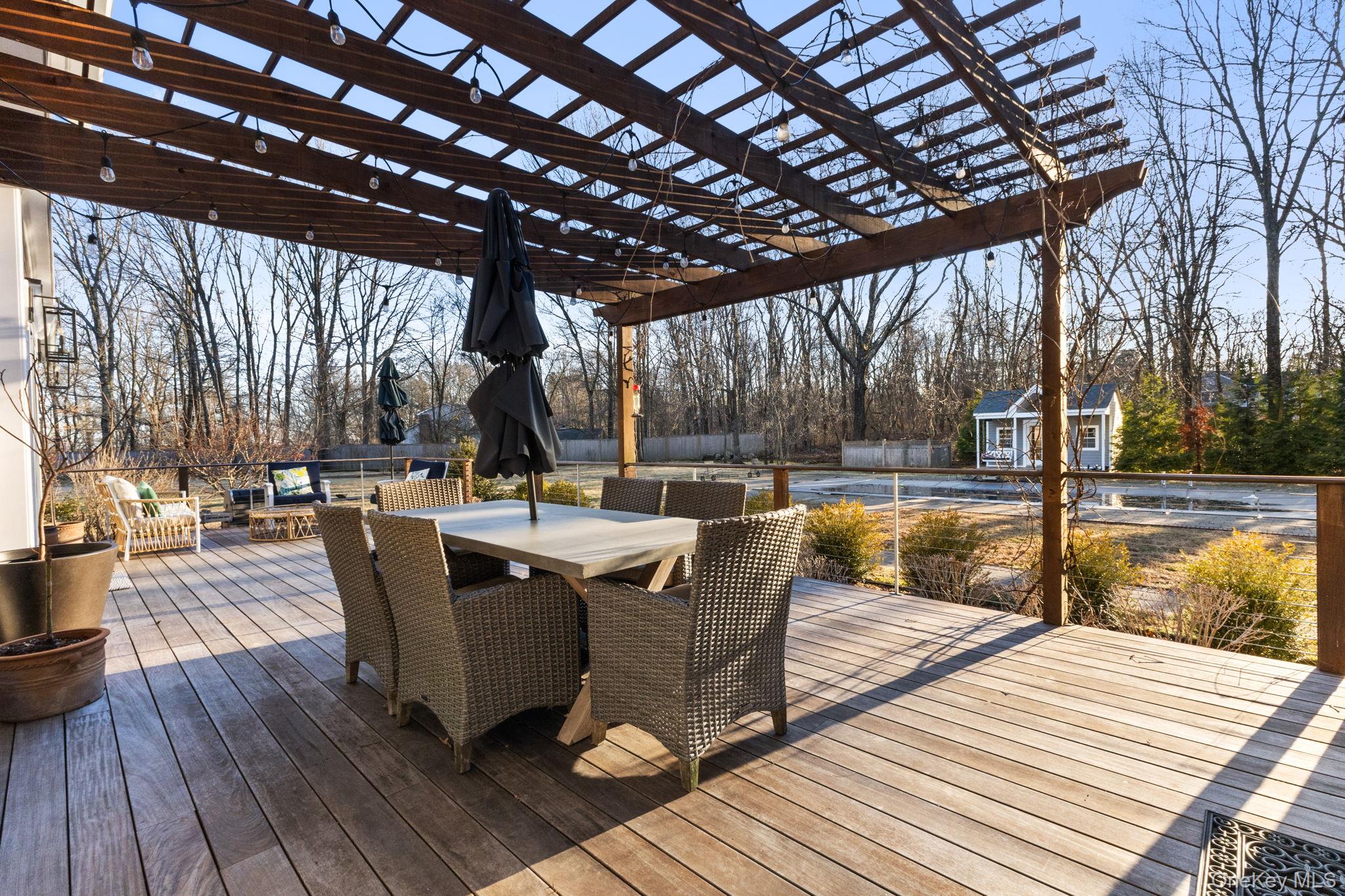 Move right into this timeless Country Colonial set on over two level, beautiful acres in sought-after Pound Ridge. Enjoy the heated pool, spa, and pool house surrounded by mature landscaping and private, open grounds. This turnkey residence spans over 6, 000 sq ft, with a welcoming two-story foyer, sun-filled formal living and dining rooms, and hardwood floors throughout. The spacious eat-in chef’s kitchen with marble countertops features an expansive island and sunny breakfast area, and opens to an inviting Great Room with a stone fireplace—ideal for everyday living and entertaining. A private home office creates a quiet workspace, while a screened porch and bluestone patio are perfect for relaxing outdoors. Upstairs, the primary suite serves as a serene retreat with a sitting area, dual walk-in closets, and a spa-like bath, complemented by three additional en suite bedrooms. The finished lower level adds flexible space for recreation, fitness, and guests. Additional features include solar panels, a whole-house generator, and a three-car garage. Minutes to shops, schools, trails, and dining. One hour to Manhattan.