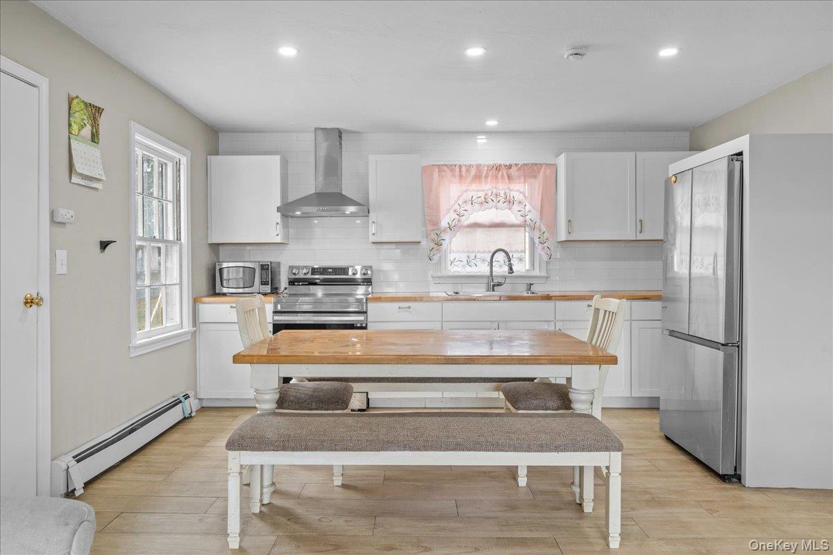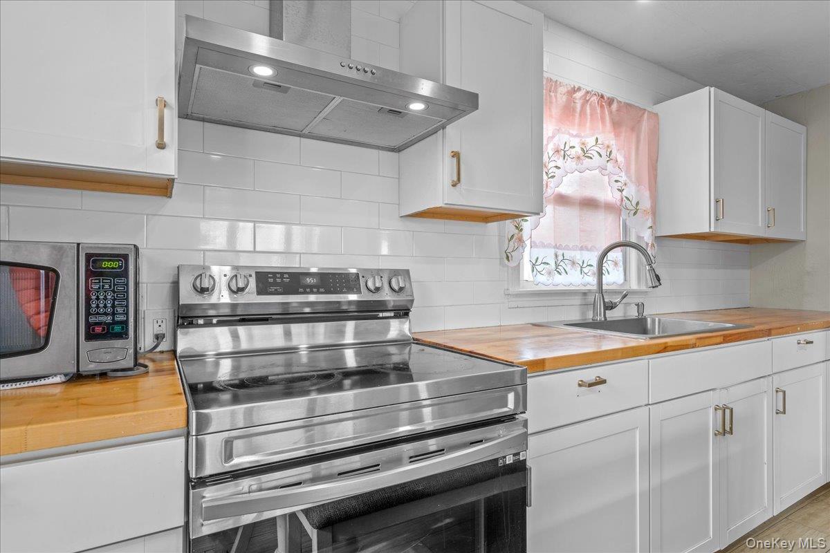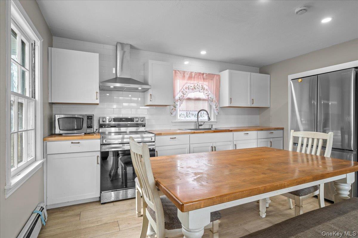 Welcome to 10 Wisner Avenue, a beautifully updated ranch that seamlessly blends style, comfort, and modern convenience. Renovated in 2023, this home features a new roof, life-proof flooring throughout, a stunning kitchen with butcher block countertops, subway tile backsplash, and stainless steel appliances, a Navien tankless heater, and a new washer and dryer. Enjoy the ease of single-level living with a bright, open-concept layout - perfect for everyday living and entertaining. The spacious living area flows effortlessly into the kitchen, while a separate mudroom provides convenient access to both the driveway and backyard. The home offers four bedrooms with a thoughtfully designed layout. Two bedrooms are situated on one side, including a private option with its own entrance - ideal for guests, a home office, or extended living. On the opposite side, you’ll find two additional bedrooms, including one with sliding glass doors leading to the back deck and expansive corner-lot backyard. Ideally located with easy access to major highways and approximately one hour to NYC and the George Washington Bridge. Enjoy the convenience of being in the City of Middletown, just minutes from Touro Medical College, Garnet Medical Center, Wallkill’s shopping, dining, and everyday amenities, as well as local attractions like LEGOLAND and Resorts World Casino. Don’t miss this move-in ready opportunity, schedule your showing today!