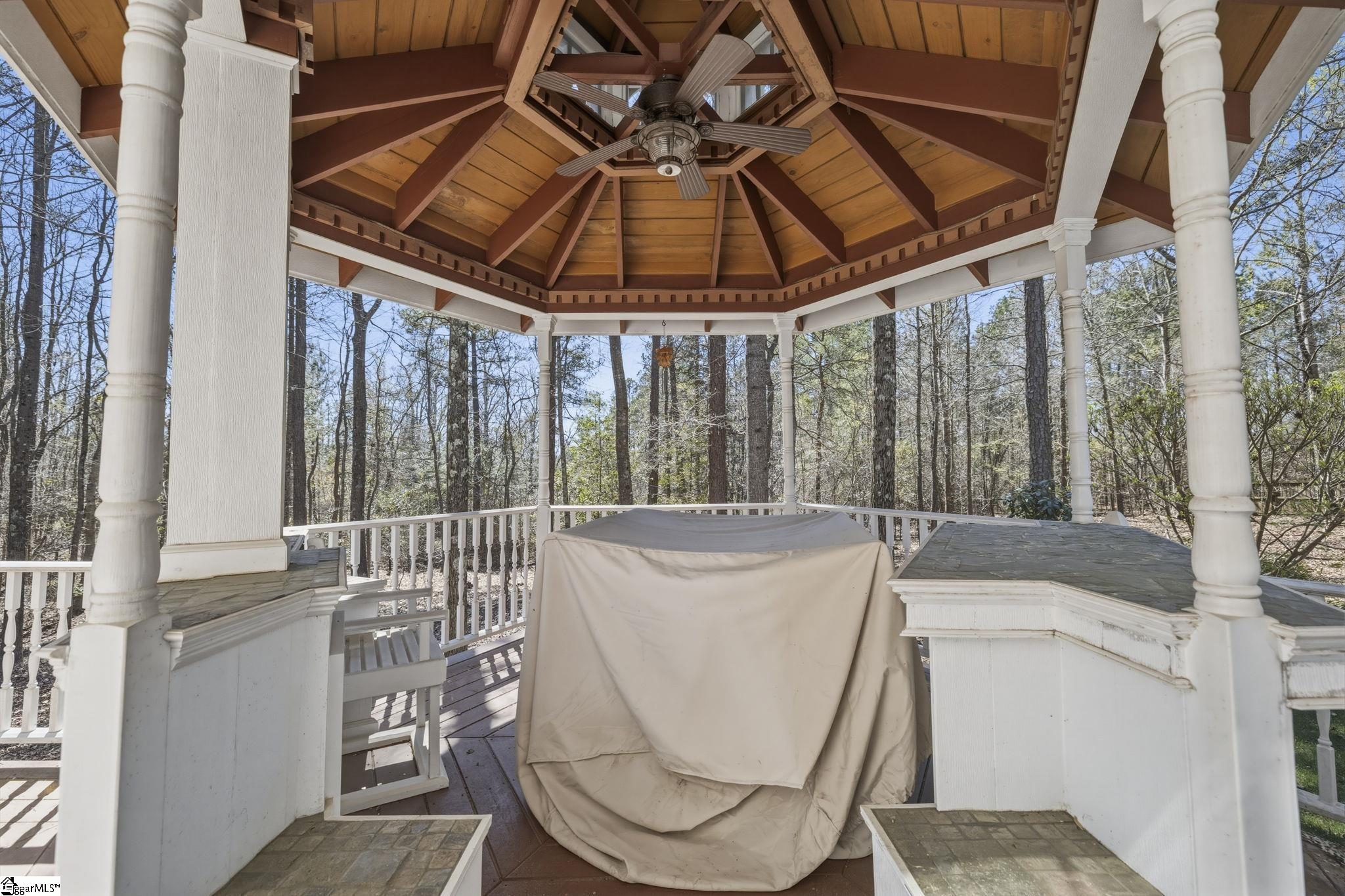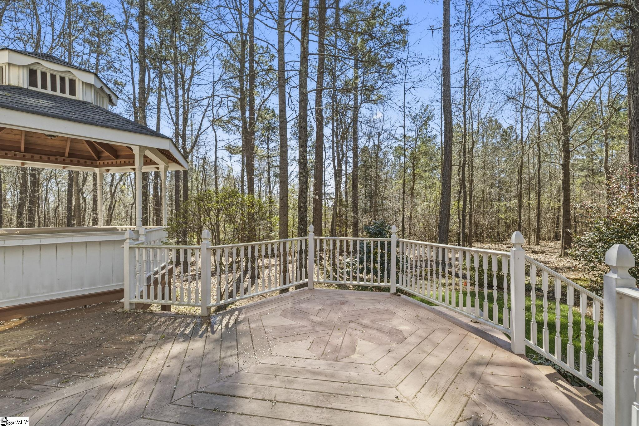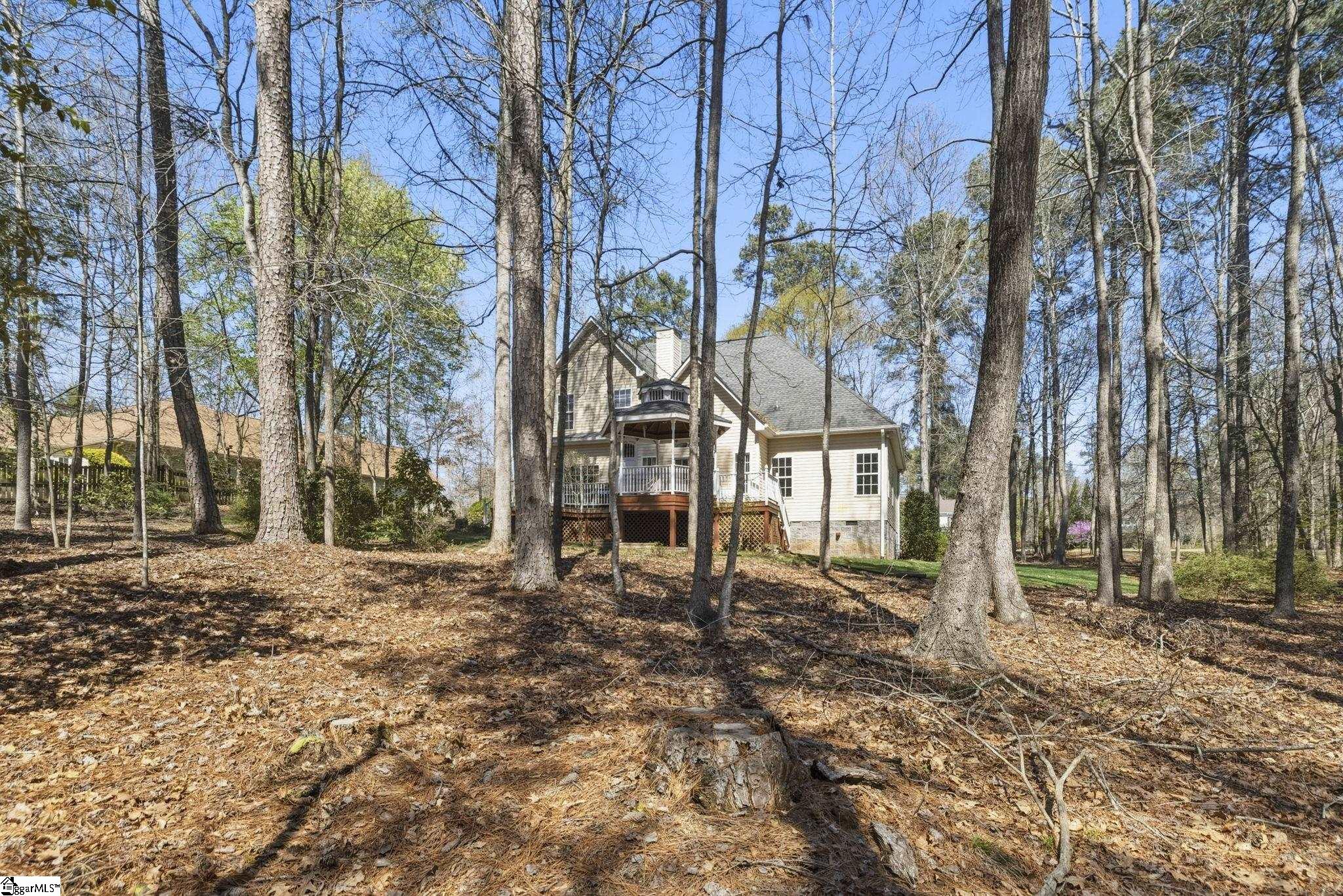 Stunning home in the coveted Carolina Springs Golf community, perfectly situated on a private lot just under an acre. Immaculate and truly move-in ready, this home offers a flexible floor plan, beautiful outdoor living spaces, and thoughtful architectural details throughout including gleaming hardwood floors, arched doorways, wainscoting, and wide crown molding. An elegant foyer with an arched ceiling and columns welcomes you into the dramatic vaulted great room, where a wall of windows fills the space with natural light and frames views of the backyard. A tile-surround gas log fireplace flanked by built-ins anchors the room, while easy access to the outdoor living space makes entertaining effortless. Behind French doors, the formal dining room features classic wainscoting and crown molding and could easily serve as a home office if desired. A convenient half bath is also located on the main floor for guests. The spacious kitchen is designed for both everyday living and hosting, offering elegant dark wood cabinetry, a custom tile backsplash, a walk-in pantry, and a full stainless steel appliance package including a gas range. The sunny breakfast area overlooks the peaceful backyard, and direct access to the large deck makes it easy to enjoy morning coffee while listening to the birds or watching for deer in the woods beyond. The main-level primary suite is a private retreat with serene wooded views, a walk-in closet, linen closet, and attached bath featuring dual vanities, a garden tub, and separate shower. Also on the main floor is a walk-in laundry room with sink and direct access to the two-car garage with a convenient yard door. Upstairs, you’ll find three additional bedrooms, including one with vaulted ceilings and a charming ceiling nook perfect for displaying special treasures. These bedrooms share a well-appointed hall bath with a tub/shower combo. Outdoor living is truly exceptional and perfectly timed for spring. The sprawling deck offers room to grill, entertain, and unwind, while the gazebo with built-in countertops and storage is ideal for an outdoor kitchen, dining space, or cozy reading nook. The huge wooded backyard provides wonderful privacy while still offering plenty of room for gardens, play, or future possibilities. Gorgeous front landscaping with mature native trees and plants adds to the home’s curb appeal. Located just minutes from the Swamp Rabbit Trailhead, downtown Fountain Inn, and downtown Simpsonville, this home also offers easy access to downtown Greenville, the interstate, and state-of-the-art medical facilities. This is more than a home—it’s a lifestyle. Perfectly blending thoughtfully designed indoor spaces with exceptional outdoor living, this property offers the ideal balance of comfort, flexibility, and connection to nature. From the inviting layout that adapts to your everyday needs to the private setting that feels like a retreat, every detail has been designed for how you truly want to live. All of this, paired with an unbeatable location close to everything you need, creates a rare opportunity to enjoy the very best of home, lifestyle, and convenience in one remarkable property.