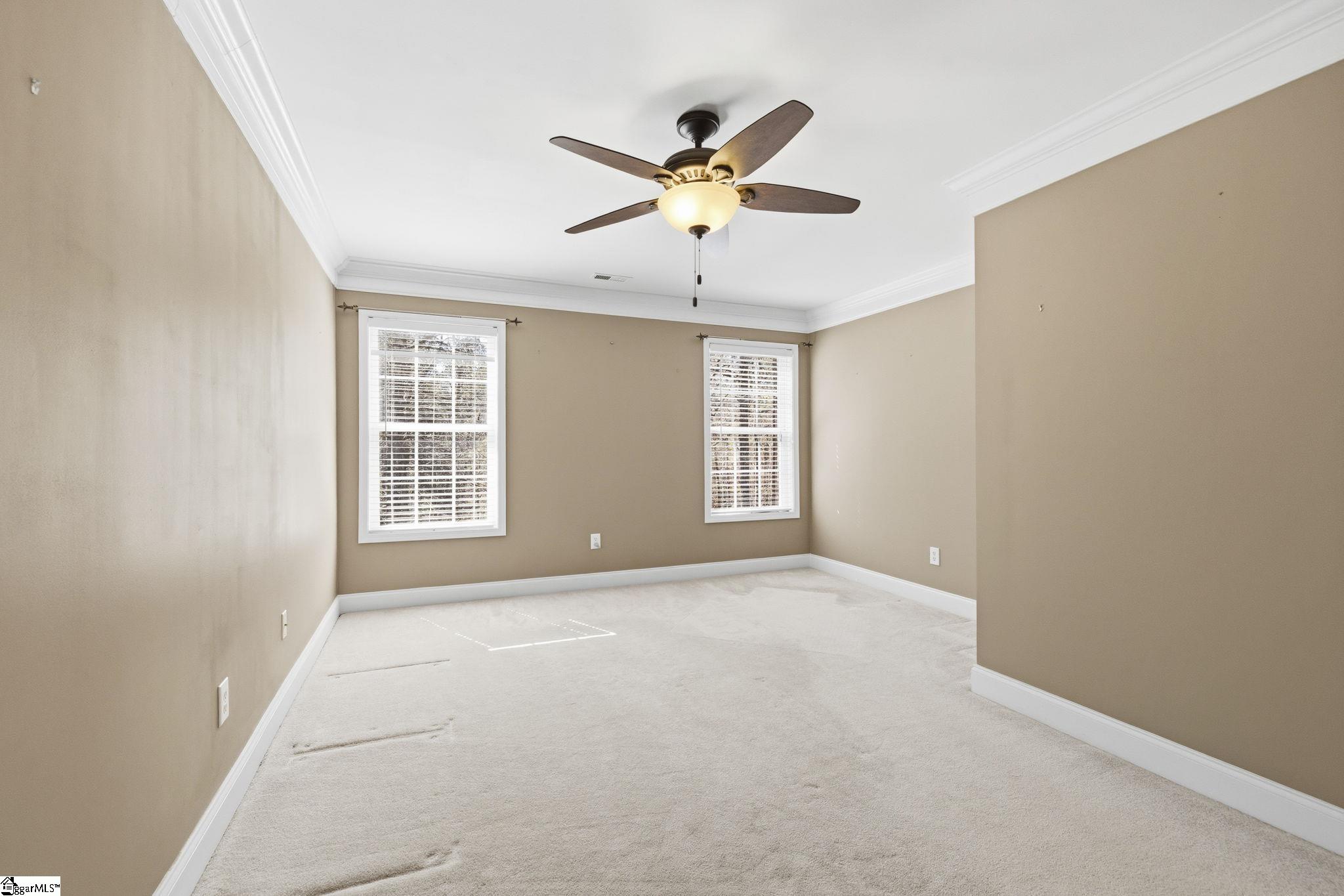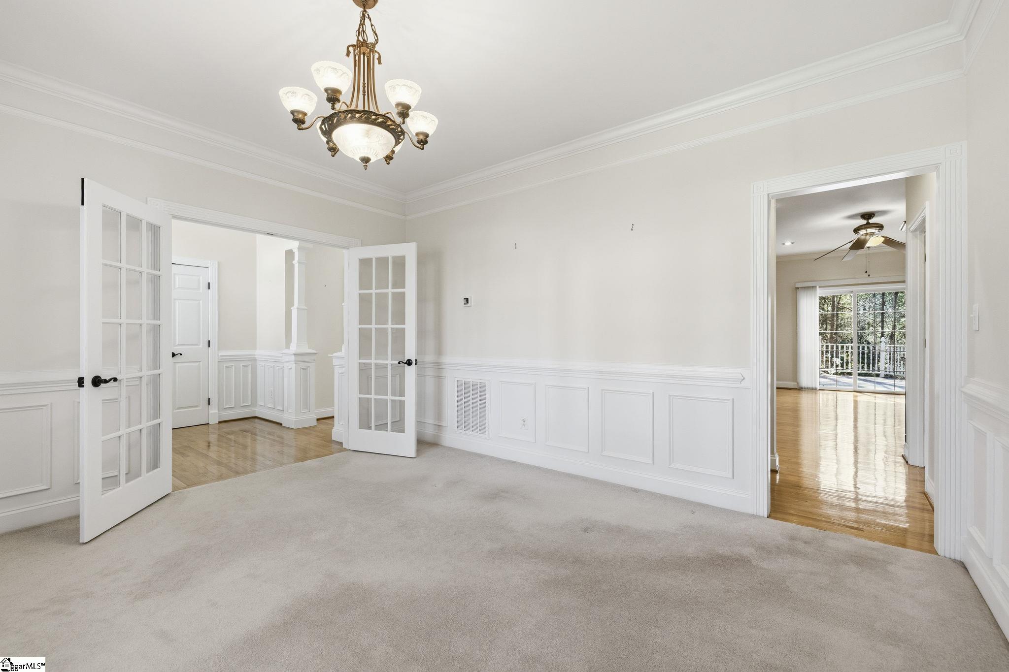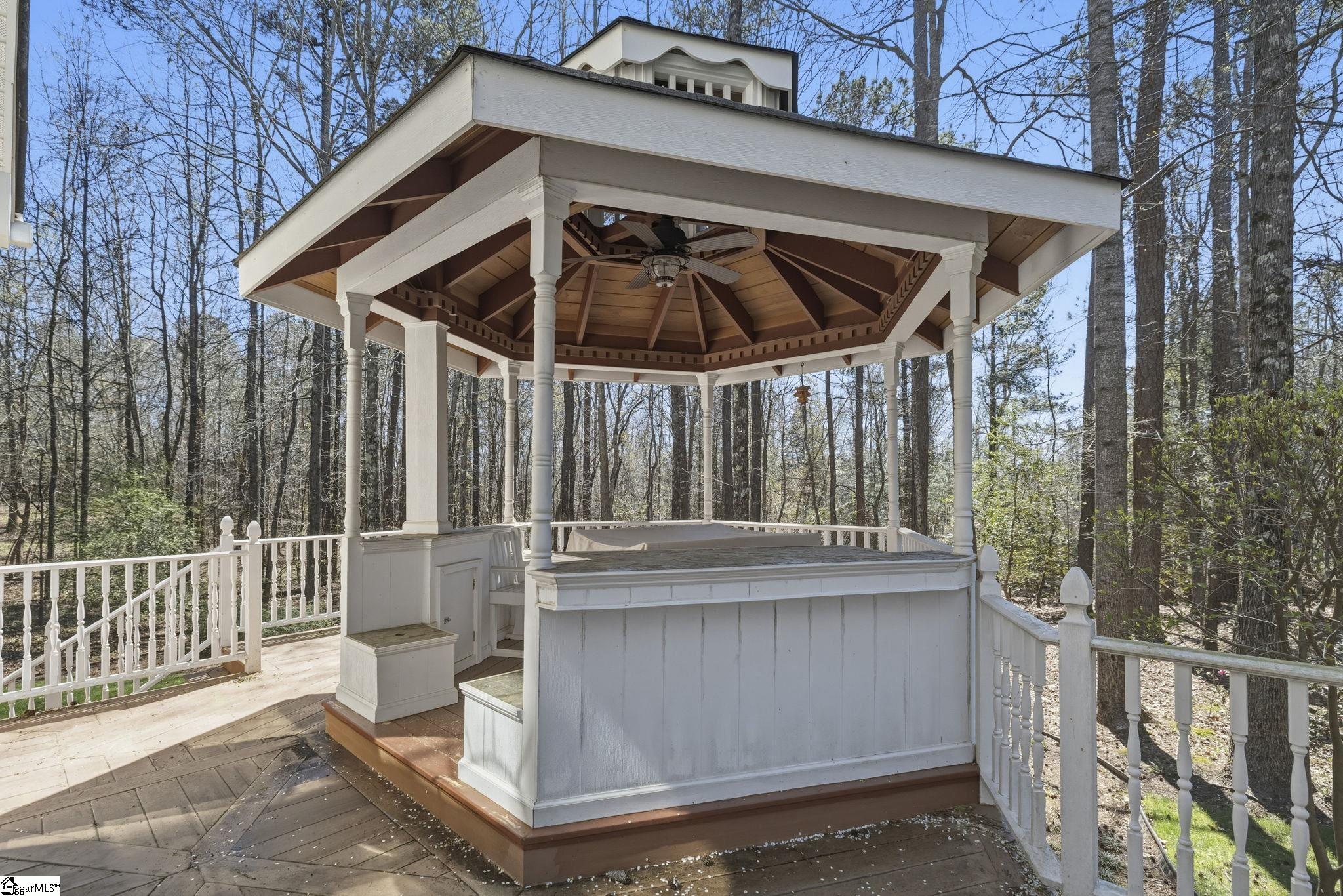 Stunning home in the coveted Carolina Springs Golf community, perfectly situated on a private lot just under an acre. Immaculate and truly move-in ready, this home offers a flexible floor plan, beautiful outdoor living spaces, and thoughtful architectural details throughout including gleaming hardwood floors, arched doorways, wainscoting, and wide crown molding. An elegant foyer with an arched ceiling and columns welcomes you into the dramatic vaulted great room, where a wall of windows fills the space with natural light and frames views of the backyard. A tile-surround gas log fireplace flanked by built-ins anchors the room, while easy access to the outdoor living space makes entertaining effortless. Behind French doors, the formal dining room features classic wainscoting and crown molding and could easily serve as a home office if desired. A convenient half bath is also located on the main floor for guests. The spacious kitchen is designed for both everyday living and hosting, offering elegant dark wood cabinetry, a custom tile backsplash, a walk-in pantry, and a full stainless steel appliance package including a gas range. The sunny breakfast area overlooks the peaceful backyard, and direct access to the large deck makes it easy to enjoy morning coffee while listening to the birds or watching for deer in the woods beyond. The main-level primary suite is a private retreat with serene wooded views, a walk-in closet, linen closet, and attached bath featuring dual vanities, a garden tub, and separate shower. Also on the main floor is a walk-in laundry room with sink and direct access to the two-car garage with a convenient yard door. Upstairs, you’ll find three additional bedrooms, including one with vaulted ceilings and a charming ceiling nook perfect for displaying special treasures. These bedrooms share a well-appointed hall bath with a tub/shower combo. Outdoor living is truly exceptional and perfectly timed for spring. The sprawling deck offers room to grill, entertain, and unwind, while the gazebo with built-in countertops and storage is ideal for an outdoor kitchen, dining space, or cozy reading nook. The huge wooded backyard provides wonderful privacy while still offering plenty of room for gardens, play, or future possibilities. Gorgeous front landscaping with mature native trees and plants adds to the home’s curb appeal. Located just minutes from the Swamp Rabbit Trailhead, downtown Fountain Inn, and downtown Simpsonville, this home also offers easy access to downtown Greenville, the interstate, and state-of-the-art medical facilities. This is more than a home—it’s a lifestyle. Perfectly blending thoughtfully designed indoor spaces with exceptional outdoor living, this property offers the ideal balance of comfort, flexibility, and connection to nature. From the inviting layout that adapts to your everyday needs to the private setting that feels like a retreat, every detail has been designed for how you truly want to live. All of this, paired with an unbeatable location close to everything you need, creates a rare opportunity to enjoy the very best of home, lifestyle, and convenience in one remarkable property.