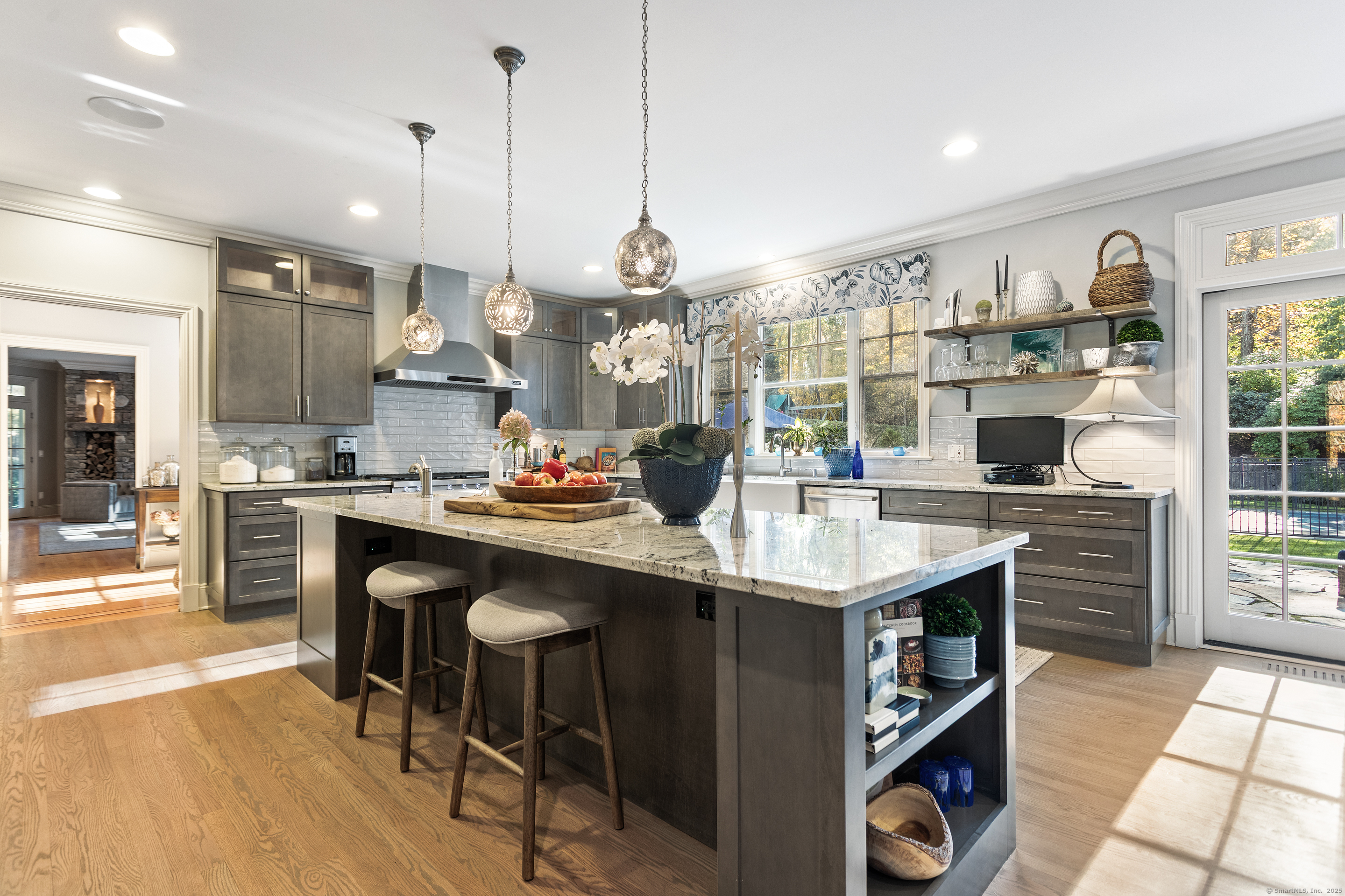 THANK YOU FOR YOUR INTEREST, SELLER REQUESTS HIGHEST/BEST OFFERS BY 5PM MONDAY 3/30. Welcome to this Modern Colonial, a sanctuary where luxury, comfort & tranquility converge on a premier cul-de-sac, conveniently located to the Merritt Parkway, Weston Center & the campus of award-winning schools and downtown Westport plus beaches. With 5 BRs plus a potential 6th BR/au-pair or in-law suite, this refined retreat offers elegant living & impressive entertaining. The newly reimagined kitchen is a showpiece of style & substance: a spacious island anchors the room, surrounded by premier appliances & abundant storage, all beautifully designed, expertly equipped, and ready for every occasion. Host unforgettable dinners in the formal DR w/gas fireplace, then relax in the warm, inviting fam rm w/custom stone fireplace, French doors & surround sound for movie nights. Multiple home office options include a private library/homework rm with built-ins. The luxe primary suite features excellent closet space, a fireplace, spa bath w/hydro tub, shower & dual sinks. The full fin LL offers all of the room needed so that everyone can have their space, including a game/rec rm, media rm, gym & more, plus storage rooms. Outside, enjoy vast, usable, level lawns, heated pool, sports area, basketball, climbing swing & treehouse. Wraparound porch & screened-in porch offer stunning views of both the picturesque acreage as well as the tranquil hilltop scenery. 4-car garage for the auto enthusiast.
