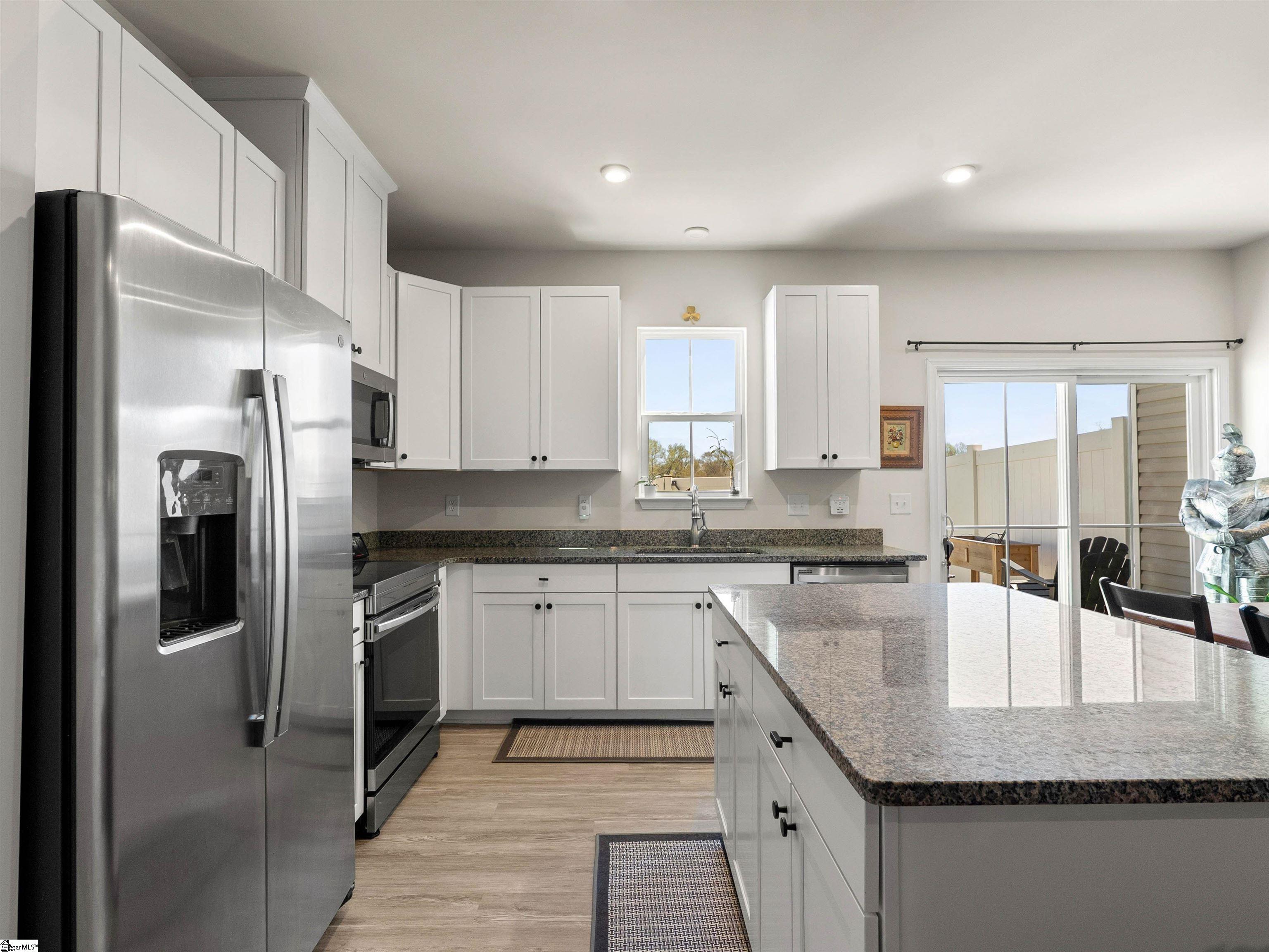 Welcome Home to this bright, Move-in Ready 3-bed, 2. 5-bath Townhome in a Prime Location! (Seller will cover the FIRST YEAR of HOA with Acceptable Offer) A welcoming Foyer leads to an Open-Concept Living Area perfect for entertaining, while the sleek kitchen shines with a center Island, Granite Countertops, Pull Out Drawers, Soft Close Cabinets, Stainless Steel Appliances, and Refrigerator included. Enjoy Private Outdoor Living with a Fenced Yard and Patio. Upstairs features Two guest Bedrooms with a shared Bath, convenient second-floor Laundry, and a generous Primary Suite with Large Walk-in Closet and Dual-Vanity Bath. Just minutes to Downtown Greer, GSP Airport, and only 22 minutes to Downtown Greenville.