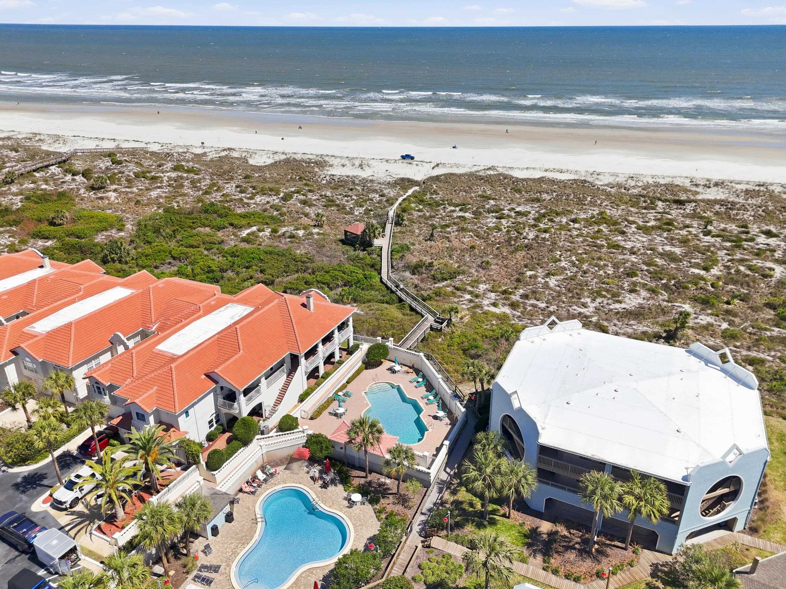 Reintroduced to the market at an exceptional new value, this extraordinary oceanfront residence within the gated enclave of Ocean Gate I offers a level of privacy and refinement rarely found along St. Augustine’s coastline. With only 12 residences behind its beautifully appointed, secured entrance, this is coastal living reserved for the few. Offering four bedrooms and designed to live like a private seaside retreat, the home is constructed of solid concrete block and includes a spacious two-car garage—an uncommon luxury in oceanfront condominium living. A gracious foyer welcomes you inside, where a dramatic spiral staircase creates an architectural focal point and an immediate sense of elegance. The interiors are both sophisticated and inviting, with a thoughtfully updated kitchen that blends style and function for effortless entertaining. The primary suite, privately positioned on the lower level, opens to its own porch and captures beautiful ocean views, creating a serene and restorative retreat. Upstairs, the main living area extends to an open balcony where sweeping ocean views provide a stunning backdrop for everyday living and entertaining. Beyond the residence, Ocean Gate I offers an elevated lifestyle—featuring a private pool exclusively for its residents, tennis courts, and access to a boardwalk leading to a wide, sandy stretch of pristine beach. Recent association-led improvements further enhance the property, providing peace of mind and a truly turnkey experience. A rare opportunity to own within one of the area’s most intimate and distinguished oceanfront communities—now offered at a compelling new price point where privacy, architecture, and the rhythm of the sea converge.
