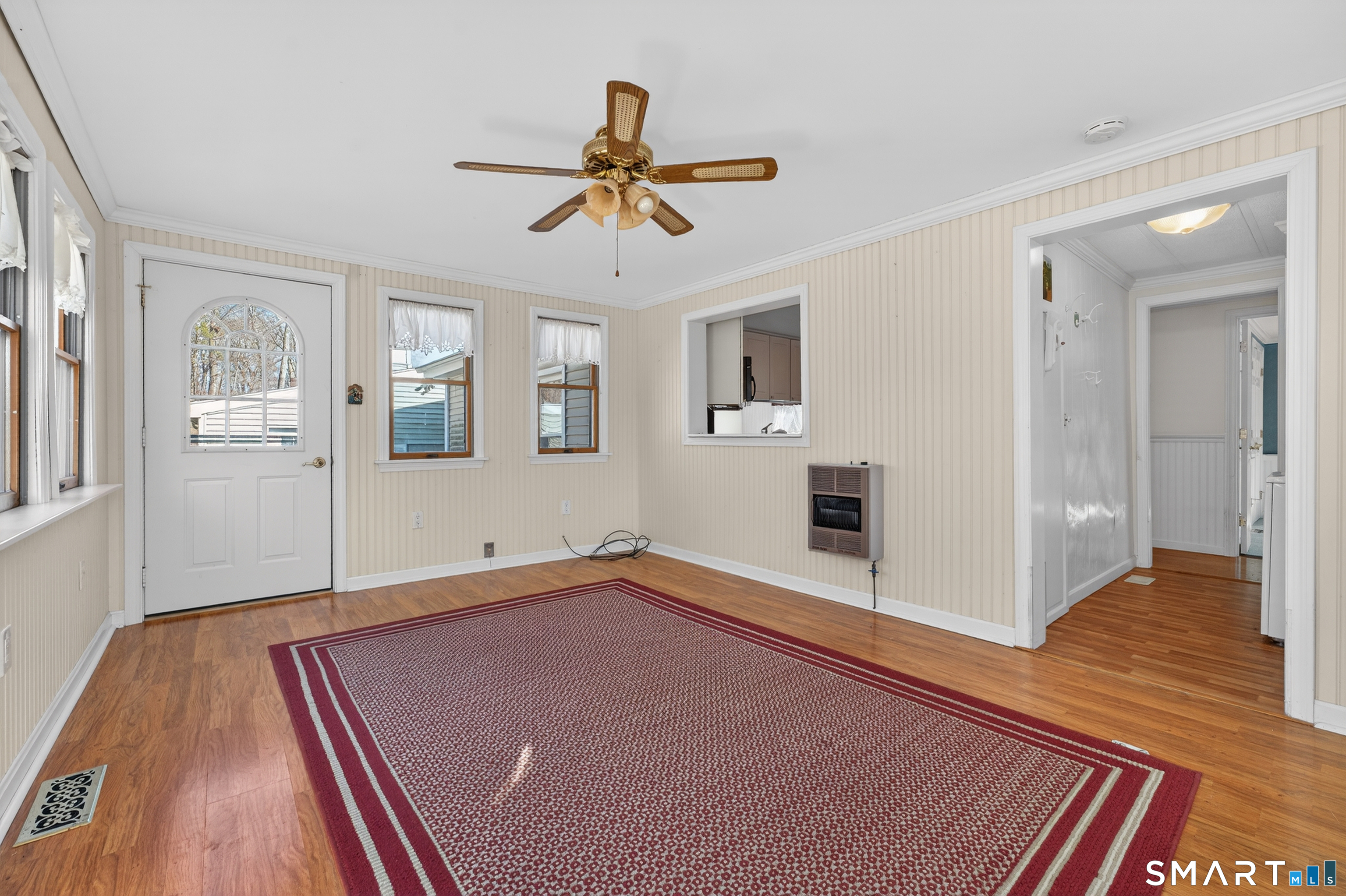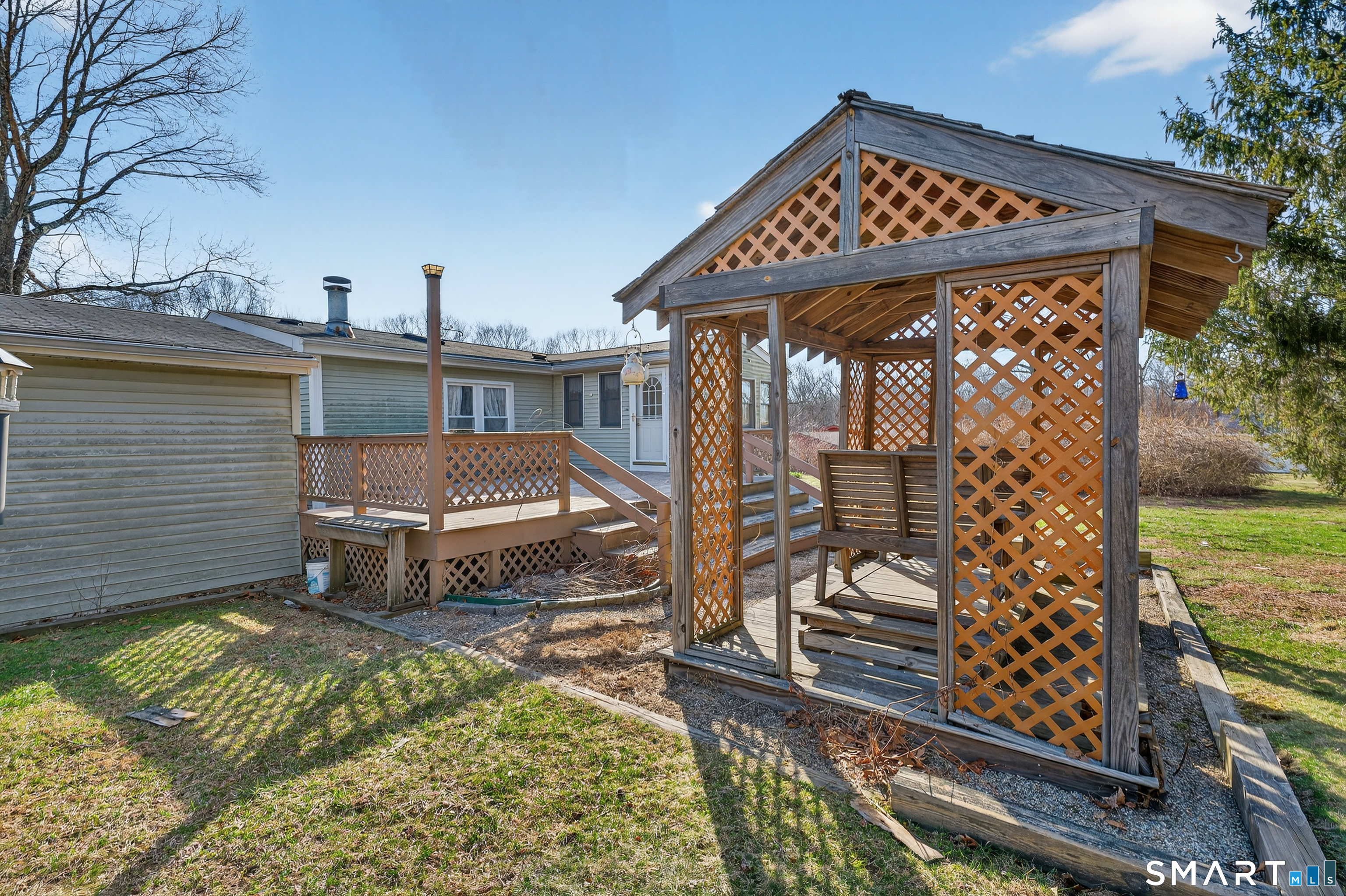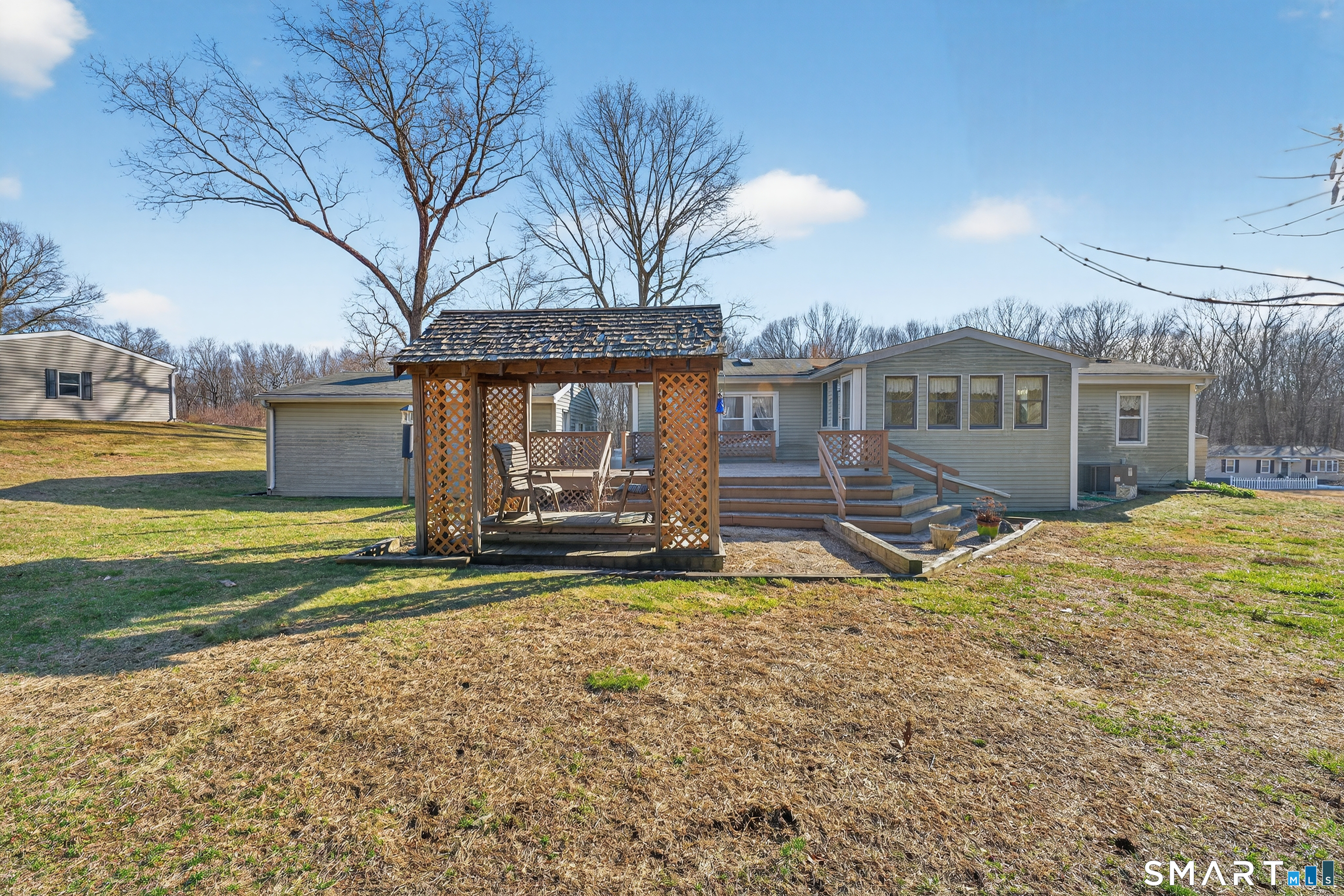 Discover comfortable, easy living in this charming 55+ community. This home offers a spacious layout designed for both relaxation and entertaining. Step inside to a large great room featuring a cozy fireplace perfect for gathering with family and friends. A beautiful enclosed sunroom filled with natural sunlight, creating the ideal space to enjoy your morning coffee, read, or simply unwind while overlooking the yard. The kitchen and dining room provide plenty of room for everyday meals or hosting guests. Outdoor living is just as inviting with a large deck perfect for entertaining, grilling, or enjoying the peaceful surroundings. A unique highlight of this property is the art studio/barn located at the back of the yard, complete with electricity making it ideal for artist, hobbyists, or a private work-shop. Additional feature include a 2 car garage. Buyers must have park approval. Owners must be 55 or older, 2nd person must be 40 or older. Only 2 pets are allowed. The association includes lawn maintenance, snow removal, trash, water, septic, clubhouse, and pool. Association rules and regulations apply. New owners are required to purchase 3 shares at 1, 500. which totals $4, 500. Owners will get the $4, 500 when they sell their home. Don't miss the opportunity to make this home your own! Home being sold As-Is.