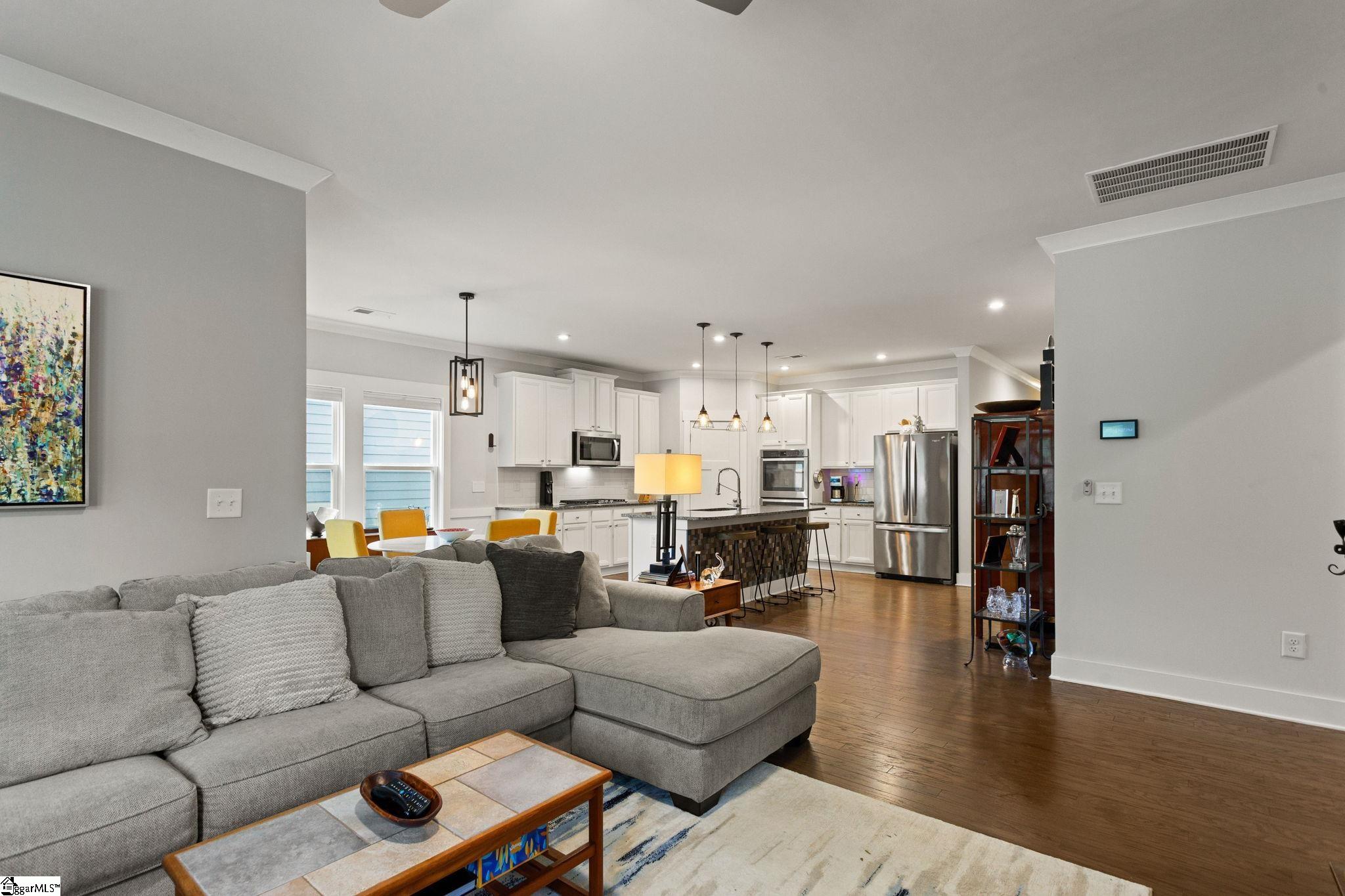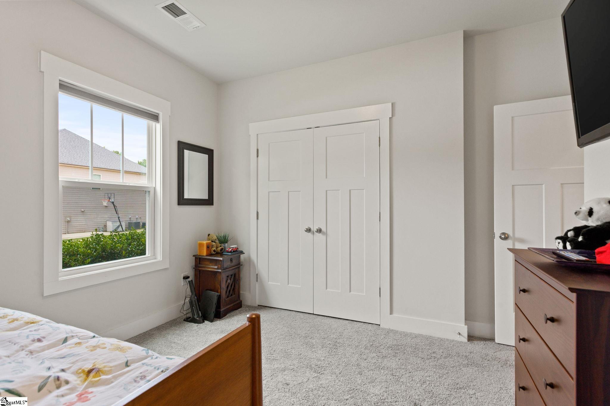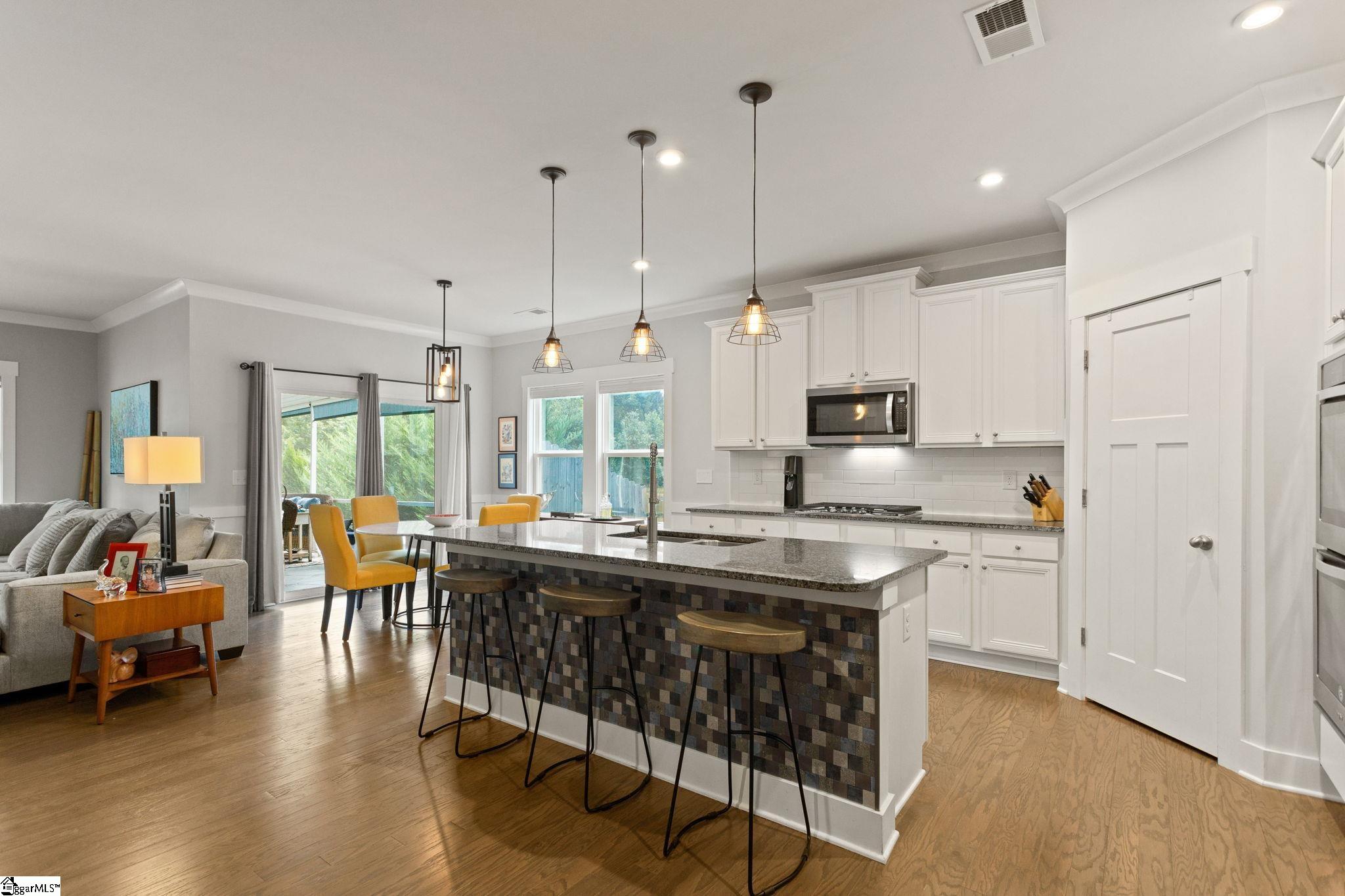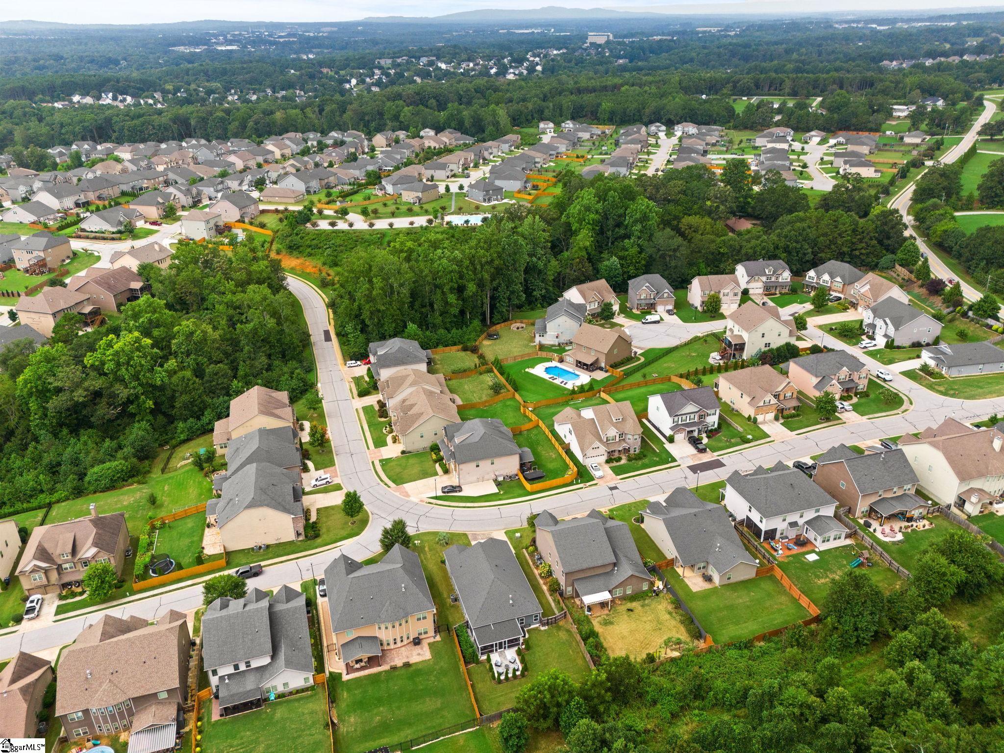Looking for a turn key ready home in a neighborhood in Greer with FANTASTIC AMENITIES, like a pool and playground? This one is it. This home has so many upgrades from the owners that separate it as superior from many other 3 bed homes that are out there, offering the feel of new construction without the wait. Inside, you’ll find an upgraded gourmet kitchen with dual ovens, gas cooktop, stainless steel appliances, and refrigerator. The open great room is filled with natural light, features a cozy gas log fireplace, and flows seamlessly into the large breakfast/dining area. Hardwood floors run throughout the living areas, primary suite, office, and one additional bedroom, with only a single bedroom featuring carpet. The primary suite boasts a tray ceiling, a CUSTOM California Closets system with new flooring, and a spa-like bath with quartz double vanities, ceramic tile, and an oversized walk-in tile shower. Bedrooms 2 and 3 share a full bath with double vanities and upgraded fixtures. The office/flex room is enhanced with custom frosted-glass barn doors for style, function, and privacy. Additional upgrades include: Lutron lighting throughout, Cat5 wiring in multiple rooms, window tinting on the front, new toilets and faucets, full privacy fencing, and a Cimate-Controlled 2-car Garage with custom interlock flooring. Outdoor living is the true showstopper. What was once a simple corner patio has been transformed into an expansive stamped-concrete entertaining space with a custom screened porch (electrical + fans), a walkway to the gas fire pit, and a built-in gas line to the grill. Professional landscaping with mature trees, shrubs, stone edging, and hardscaping completes the backyard oasis. Located in a desirable community, this home blends modern style, thoughtful upgrades, and exceptional outdoor spaces—move right in and enjoy every detail.