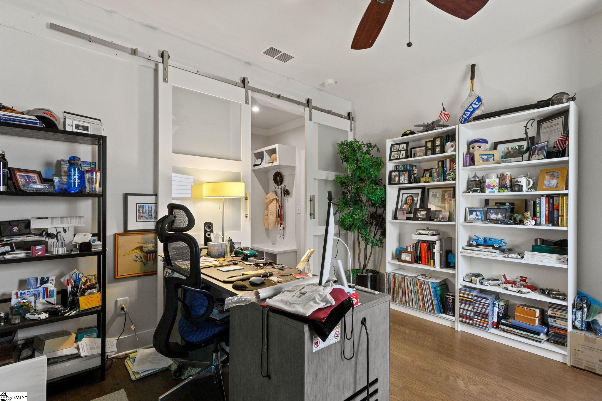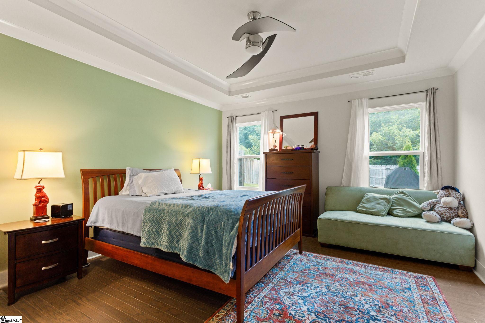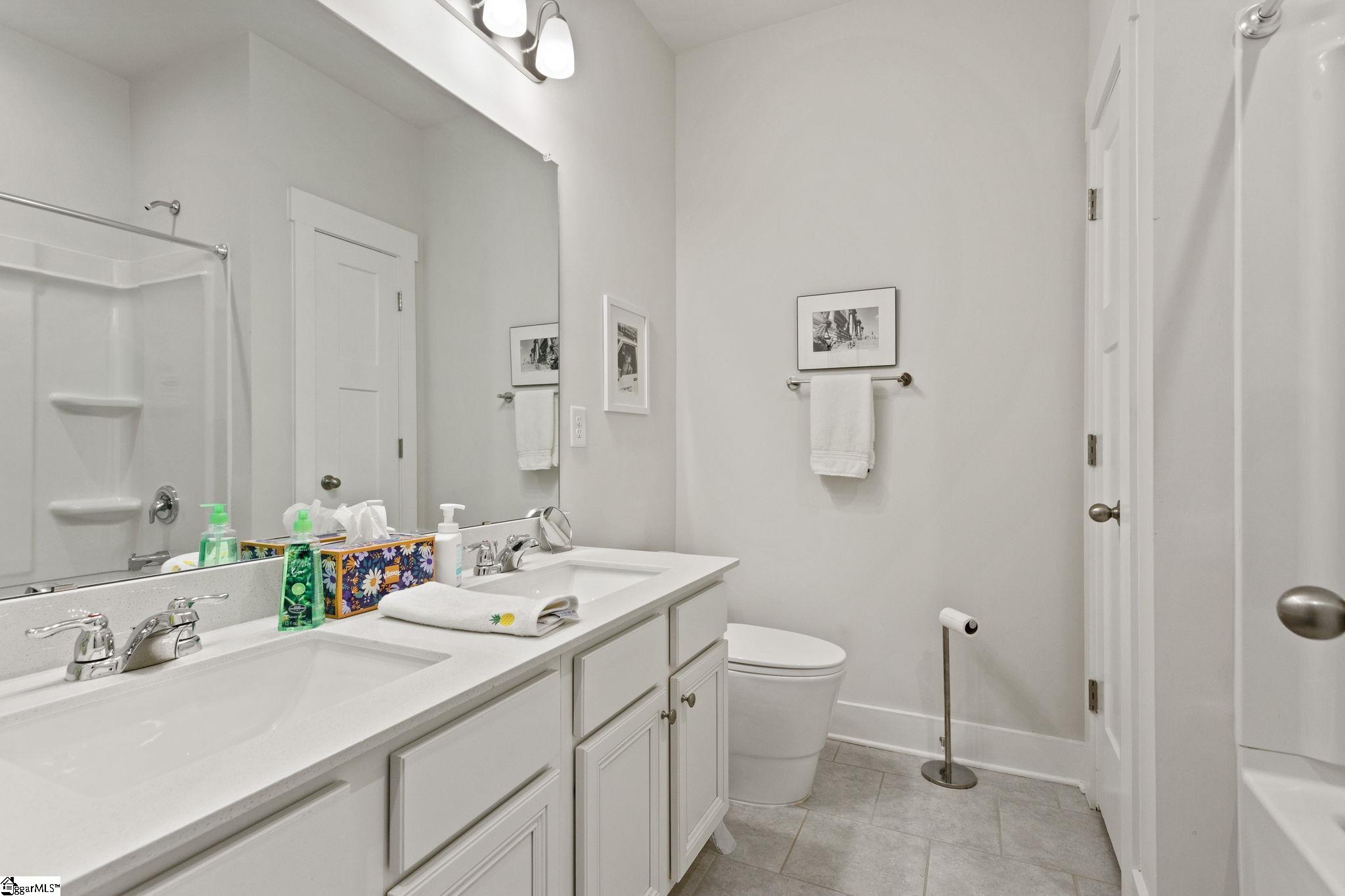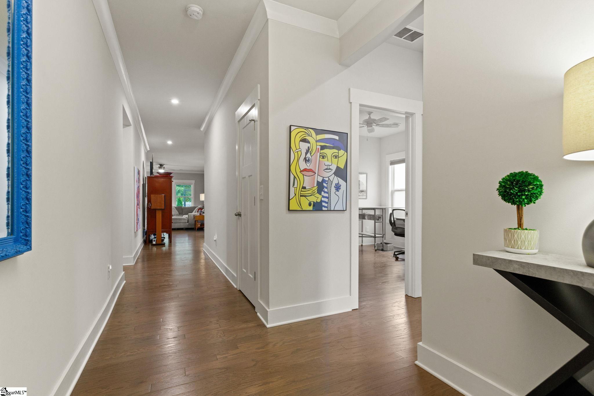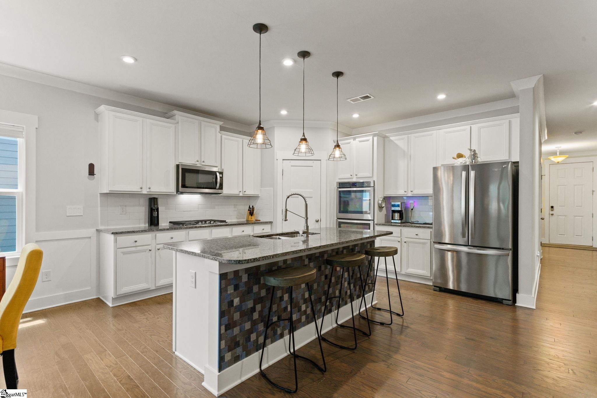 Looking for a turn key ready home in a neighborhood in Greer with FANTASTIC AMENITIES, like a pool and playground? This one is it. This home has so many upgrades from the owners that separate it as superior from many other 3 bed homes that are out there, offering the feel of new construction without the wait. Inside, you’ll find an upgraded gourmet kitchen with dual ovens, gas cooktop, stainless steel appliances, and refrigerator. The open great room is filled with natural light, features a cozy gas log fireplace, and flows seamlessly into the large breakfast/dining area. Hardwood floors run throughout the living areas, primary suite, office, and one additional bedroom, with only a single bedroom featuring carpet. The primary suite boasts a tray ceiling, a CUSTOM California Closets system with new flooring, and a spa-like bath with quartz double vanities, ceramic tile, and an oversized walk-in tile shower. Bedrooms 2 and 3 share a full bath with double vanities and upgraded fixtures. The office/flex room is enhanced with custom frosted-glass barn doors for style, function, and privacy. Additional upgrades include: Lutron lighting throughout, Cat5 wiring in multiple rooms, window tinting on the front, new toilets and faucets, full privacy fencing, and a Cimate-Controlled 2-car Garage with custom interlock flooring. Outdoor living is the true showstopper. What was once a simple corner patio has been transformed into an expansive stamped-concrete entertaining space with a custom screened porch (electrical + fans), a walkway to the gas fire pit, and a built-in gas line to the grill. Professional landscaping with mature trees, shrubs, stone edging, and hardscaping completes the backyard oasis. Located in a desirable community, this home blends modern style, thoughtful upgrades, and exceptional outdoor spaces—move right in and enjoy every detail.