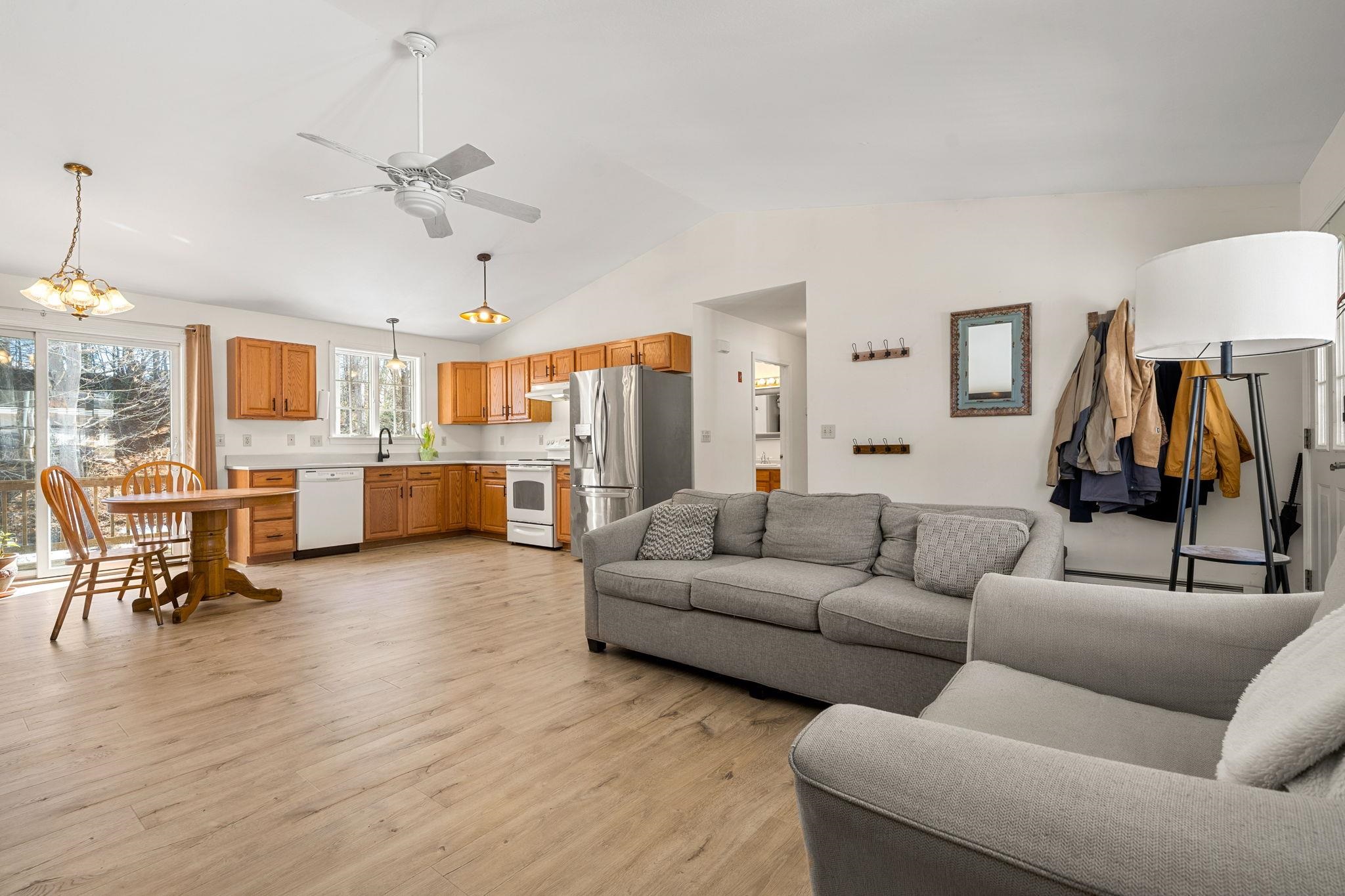 Enjoy easy one-story living in low-tax Alton. Set on 0. 65 acres at the end of a quiet dead-end street, this move-in ready ranch offers a peaceful setting just minutes from Lake Winnipesaukee and the shops, restaurants, and waterfront charm of Alton Bay. This home offers a footprint that feels both manageable and full of possibility—perfect for someone starting out, simplifying, or looking for a comfortable space for a small household. Inside, the living areas feel bright and welcoming, with a layout that makes everyday living easy. The kitchen has been thoughtfully improved with new luxury vinyl plank flooring, quartz countertops, a new sink, and a newer refrigerator, along with a built-in pantry featuring sliding soft-close pullout shelving that maximizes storage and organization. The bathroom includes a laundry hookup and direct access to the spacious primary bedroom, which offers generous closet space. Two additional bedrooms down the hall provide flexibility for guests, a home office, or hobbies. The walkout basement offers high ceilings, abundant storage, and potential for future finished space if additional square footage is desired. Whether you're planting roots in the Lakes Region or searching for a home that’s comfortable, efficient, and easy to maintain, this property offers the perfect balance of charm, practicality, and location. Offer deadline Tuesday 3/24 at Noon.