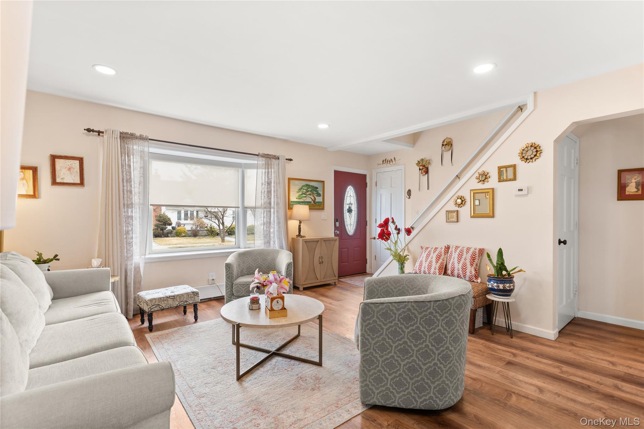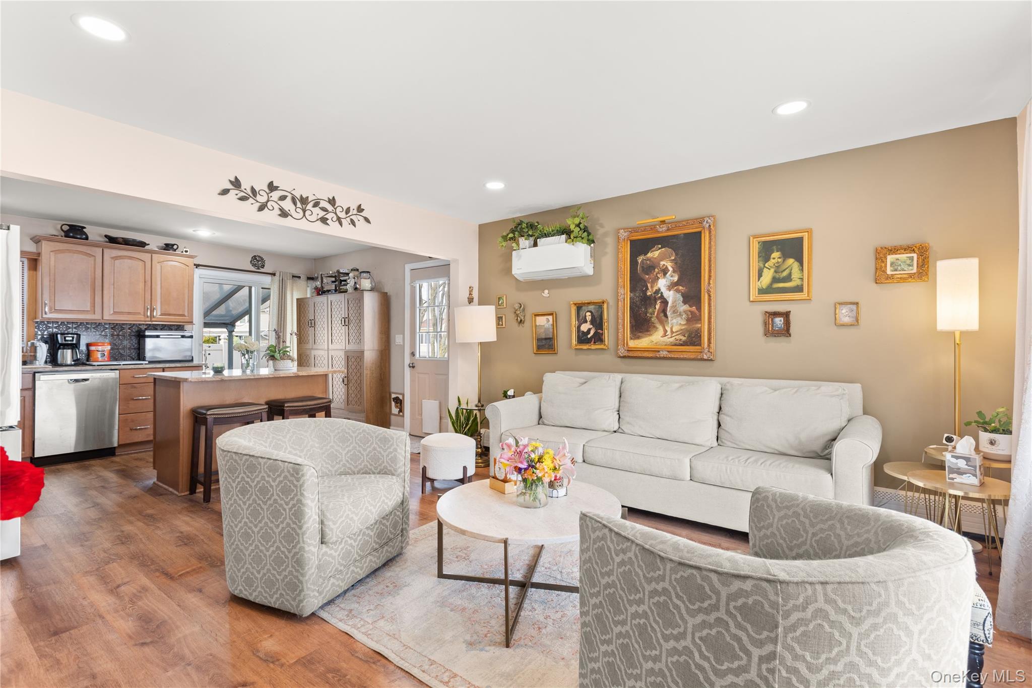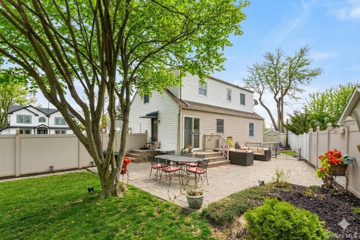 Welcome to 8 Garden Blvd in Hicksville! This charming Cape Cod-style home, perfectly situated on a desirable corner property, offers the ideal blend of comfort, functionality, and thoughtful updates throughout. Step inside to a bright and inviting living room featuring a split-unit system for year-round comfort. The eat-in kitchen is well-appointed with stainless steel appliances, including a brand-new refrigerator and dishwasher, making it both stylish and practical for everyday living. The first floor boasts a generously sized primary bedroom and an updated full bathroom—perfect for convenient one-level living. The home also features a basement with a separate outside entrance, offering great potential for additional space, storage, or flexible use. Outside, enjoy your own private retreat with a beautifully designed paver patio, ideal for entertaining or simply relaxing. The fully fenced corner lot provides added privacy, extra yard space, and exceptional curb appeal. Whether you're looking for room to grow, space to entertain, or a place to truly call home, this property delivers comfort and versatility in a prime location—just minutes away from LIRR , shopping, transportation, parks, and major roadways. A fantastic opportunity to own in Hicksville—don’t miss it!