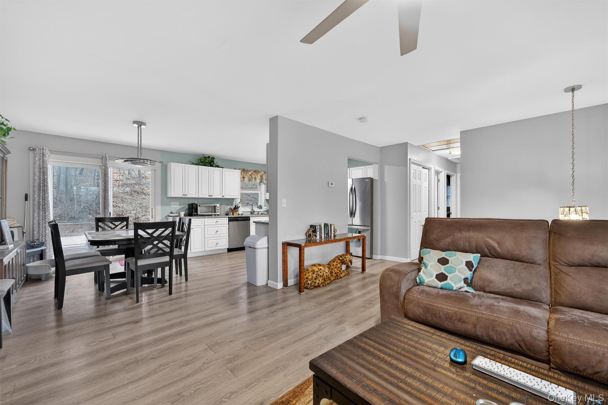 Beautifully Updated Bi-Level in the Town of Woodbury with Cornwall Schools, thoughtfully updated, ideally located in a prime commuter location in the Town of Woodbury and part of the highly sought-after Cornwall School District. This home offers 4 bedrooms, with three bedrooms on the main level along with a full bath, and an additional bedroom on the lower level with another full bath, providing a flexible layout for today’s lifestyle. The home features 2-year-new laminate flooring on both the upper and lower levels and 2-year-new carpeting in the bedrooms for added warmth and comfort. The kitchen includes white cabinetry, granite countertops, and stainless-steel appliances that are only 2 years new, while the bathrooms have been updated, including a full renovation of the main bathroom within the past 2 years with a new vanity and updated finishes. Additional updates and features include replaced baseboards throughout, a one-car garage with remote access, young windows approximately 13 years old, a 10-year-young propane furnace, and a brand new electric hot water heater just 4 months old. The laundry and mudroom offer added convenience with a slop sink and a 2-year-old Whirlpool washer and dryer, and an attic fan provides additional efficiency. Three window air conditioning units will remain, including a large unit for the living room and two for the bedrooms. Step outside to a 12x20 paver patio overlooking a private, lightly wooded backyard, perfect for relaxing or entertaining. Residents of the Town of Woodbury enjoy exceptional recreation amenities, including a town beach with lake access for swimming and a beautiful pool with slides, offering wonderful recreational opportunities for residents. Set on a large driveway in a lovely neighborhood, this home offers a great commuter location close to major routes, shopping, and parks, and is less than four miles to the Woodbury Common Premium Outlets, the New York State Thruway, and Metro-North.