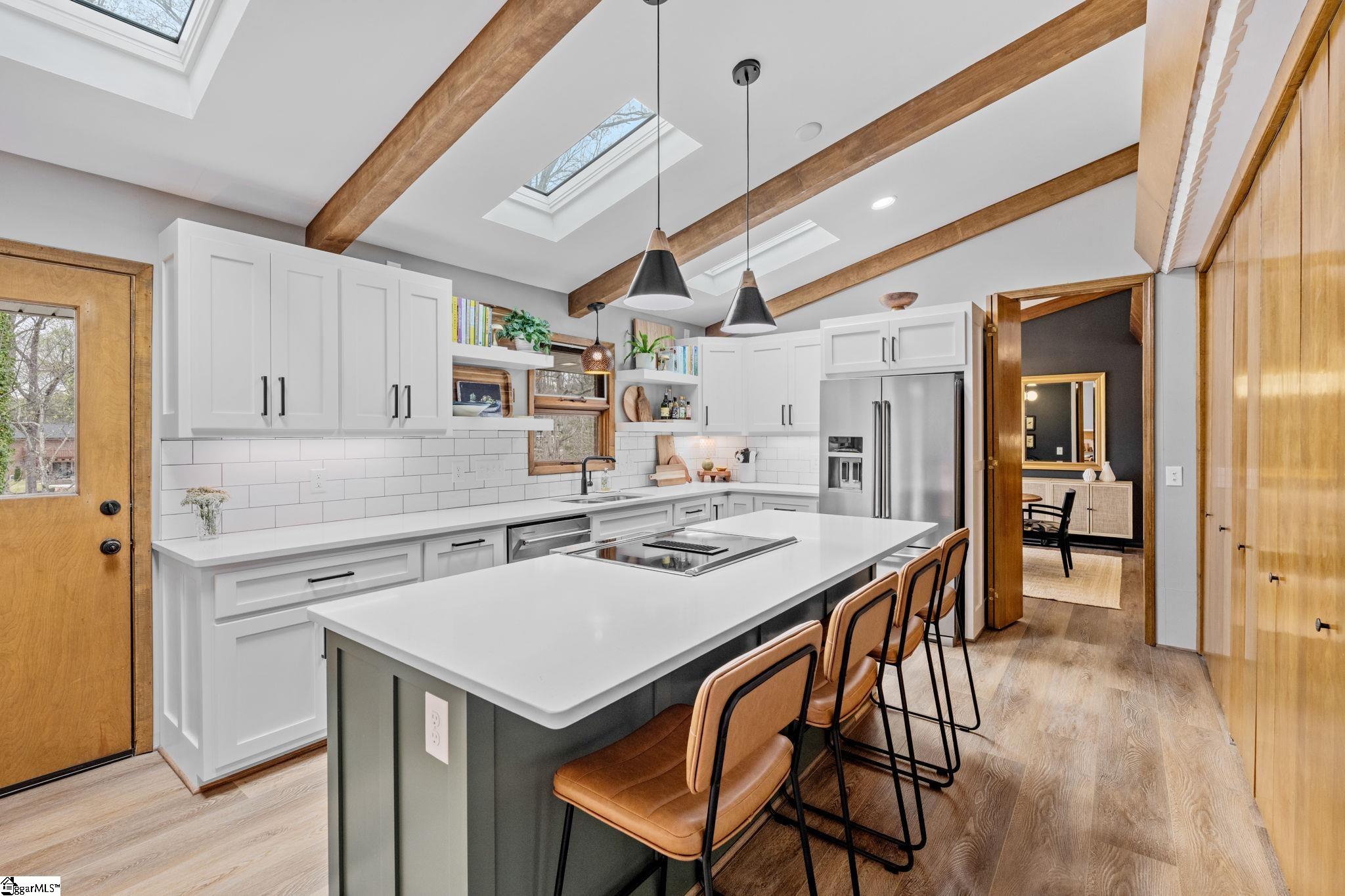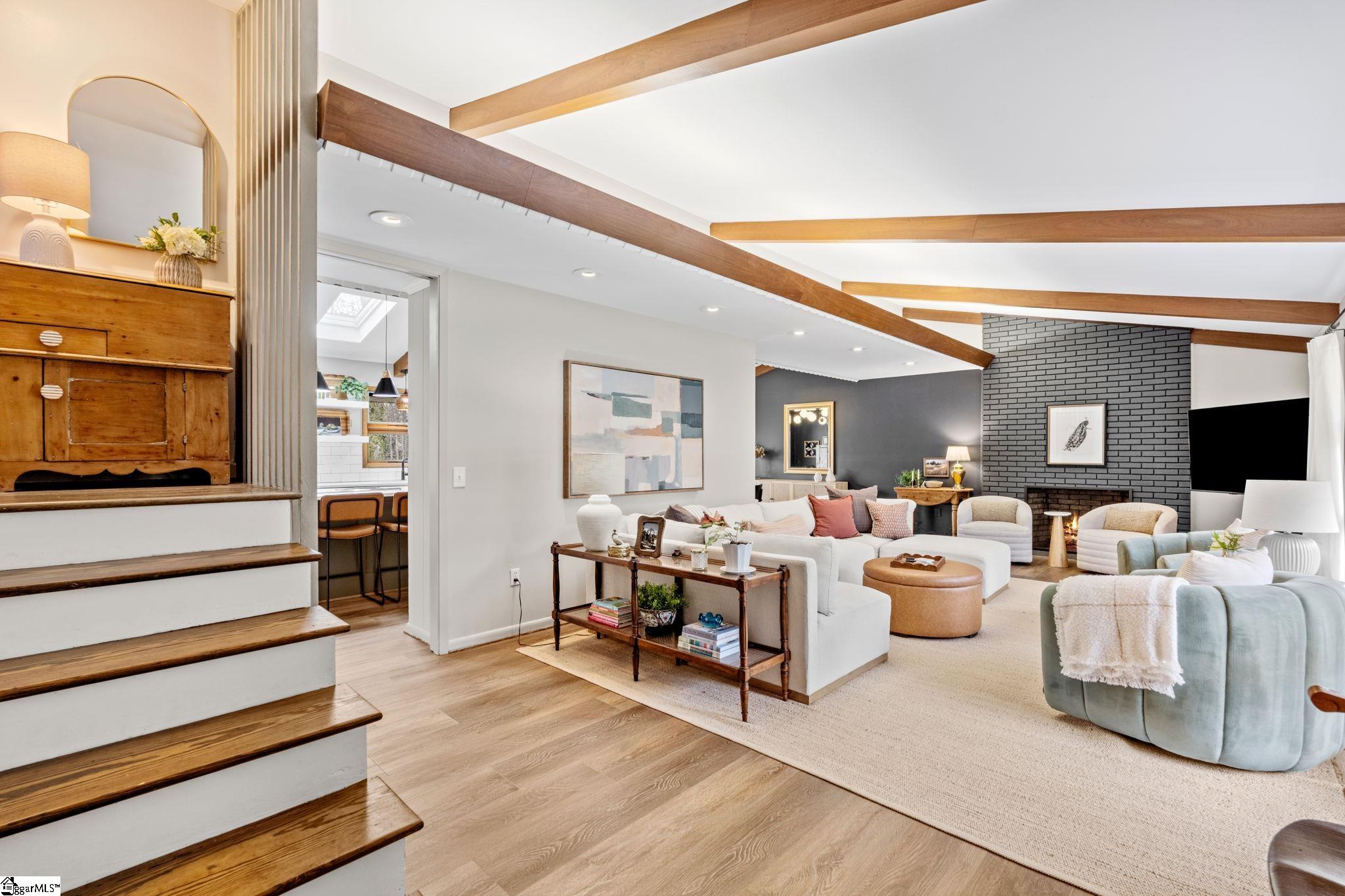 207 Asbury Circle, Easley, SC isn’t just a home, it’s where extraordinary living begins. This stunning mid-century modern retreat offers 5 bedrooms, 3. 5 baths, and just under 4, 200 square feet of thoughtfully designed living space, set on 1. 46 acres with a rare spring-fed pond. Lovingly transformed over the past year, the homeowners elevated an already solid foundation into a true showcase property, blending timeless character with modern comfort. Though they envisioned this as their forever retirement retreat, the pull of children and grandchildren now opens the door for you to step into what was meant to be their dream home. Inside, you’ll find the perfect balance of preserved character and modern comfort. The living and dining rooms feature stunning hardwood ceiling beams that highlight the home’s timeless mid-century appeal. The dining room opens seamlessly onto a private deck with stunning sunset views, creating a natural extension of your living space and setting the stage for effortless indoor-outdoor entertaining. The layout offers both openness and flexibility, including a welcoming sitting room and a spacious family room designed for everyday living. The kitchen is where form and function beautifully collide. Designed to exceed expectations, it features updated cabinetry, quartz countertops, stainless steel appliances, and exceptional pantry storage. The signature wood beams continue here, adding warmth and architectural continuity, while natural light floods the space, creating an inviting atmosphere perfect for both quiet mornings and lively gatherings. The primary suite is a sanctuary of its own, featuring a walk-in closet designed for the true clothing and shoe connoisseur. One additional bedroom is currently styled as a home office, offering flexibility for remote work or creative pursuits. In addition, you’ll find a private guest suite with its own full bath and separate entrance provides ideal accommodations for visitors, extended family, or even potential rental income. The lower level is made for gathering, featuring a spacious entertainment room with custom built-ins and one of two cozy fireplaces, creating the perfect ambiance for movie nights or relaxed evenings at home. Charming and convenient touches, like a laundry chute and a beautiful bay window, add both personality and function, while abundant storage throughout makes organization effortless. The home is also prepped for a whole house generator, offering added peace of mind and convenience. Step outside and experience your own private retreat. A spring-fed pond just beyond the backyard invites peaceful mornings fishing from your dock or drifting in a flat-bottom boat. The fenced side yard offers a safe haven for pets while still allowing ample space for entertaining, hosting, and watching kids play. And when it comes to hosting, this home truly shines. With a layout designed for seamless flow, the current owners comfortably entertained 60+ guests with ease. Enjoy the best of small-town living in Easley, South Carolina, where affordability, convenience, and natural beauty come together. Located near the Blue Ridge Mountains, you’ll love easy access to hiking, waterfalls, lakes, and the popular Doodle Trail. Local parks and a charming downtown filled with specialty shops, restaurants, a theater, and everyone’s favorite hangout spot, “The Silos”. Pickens County public schools are highly rated (A- on Niche), and you’re just 20 minutes to downtown Greenville and 25 minutes to Clemson University. Whether you’re a young professional, growing family, outdoor enthusiast, or retiree, this location offers the perfect balance of peaceful living with city access nearby. With spaces designed for both quiet moments and lively gatherings, 207 Asbury Circle is more than a house, it’s the backdrop for your next beautiful chapter. Call for your viewing today.