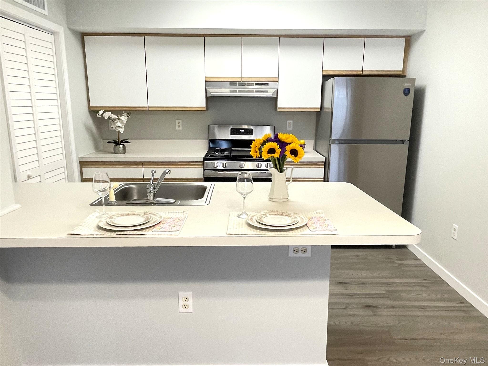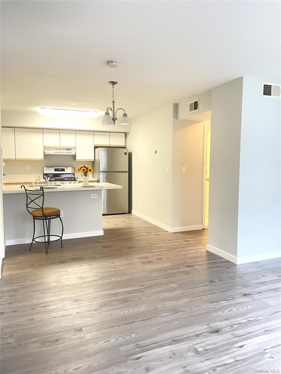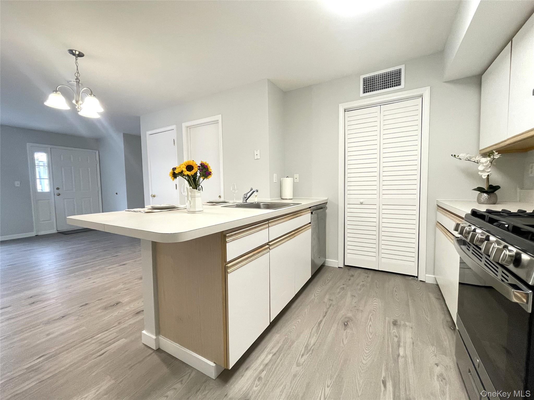 Welcome to The Meadows, a highly sought-after 55+ community in Pearl River, New York. This beautifully renovated first-floor end unit is ideally situated in one of the most desirable locations within the complex, featuring a reserved parking space with direct sidewalk access just steps from your front door for ultimate convenience. This one-bedroom condo includes a versatile bonus room that can easily serve as a second bedroom, den, or home office—perfect for adapting to your lifestyle needs. The updated kitchen boasts brand-new stainless steel appliances and a convenient breakfast bar, ideal for casual dining and entertaining. The spacious primary bedroom offers a peaceful retreat, complete with a large closet and a full bath just outside the entrance. Sliding glass doors open to a private deck, providing the perfect spot to enjoy your morning coffee or unwind outdoors. Additional highlights include a newer A/C and heating system (approximately one year old), abundant closet space, and an extra storage bin in the basement. Set within a beautifully landscaped courtyard, this home blends comfort, style, and low-maintenance living in a serene environment. Conveniently located near public transportation, shopping, and major highways, this is an exceptional opportunity to enjoy easy, carefree living in a welcoming community.