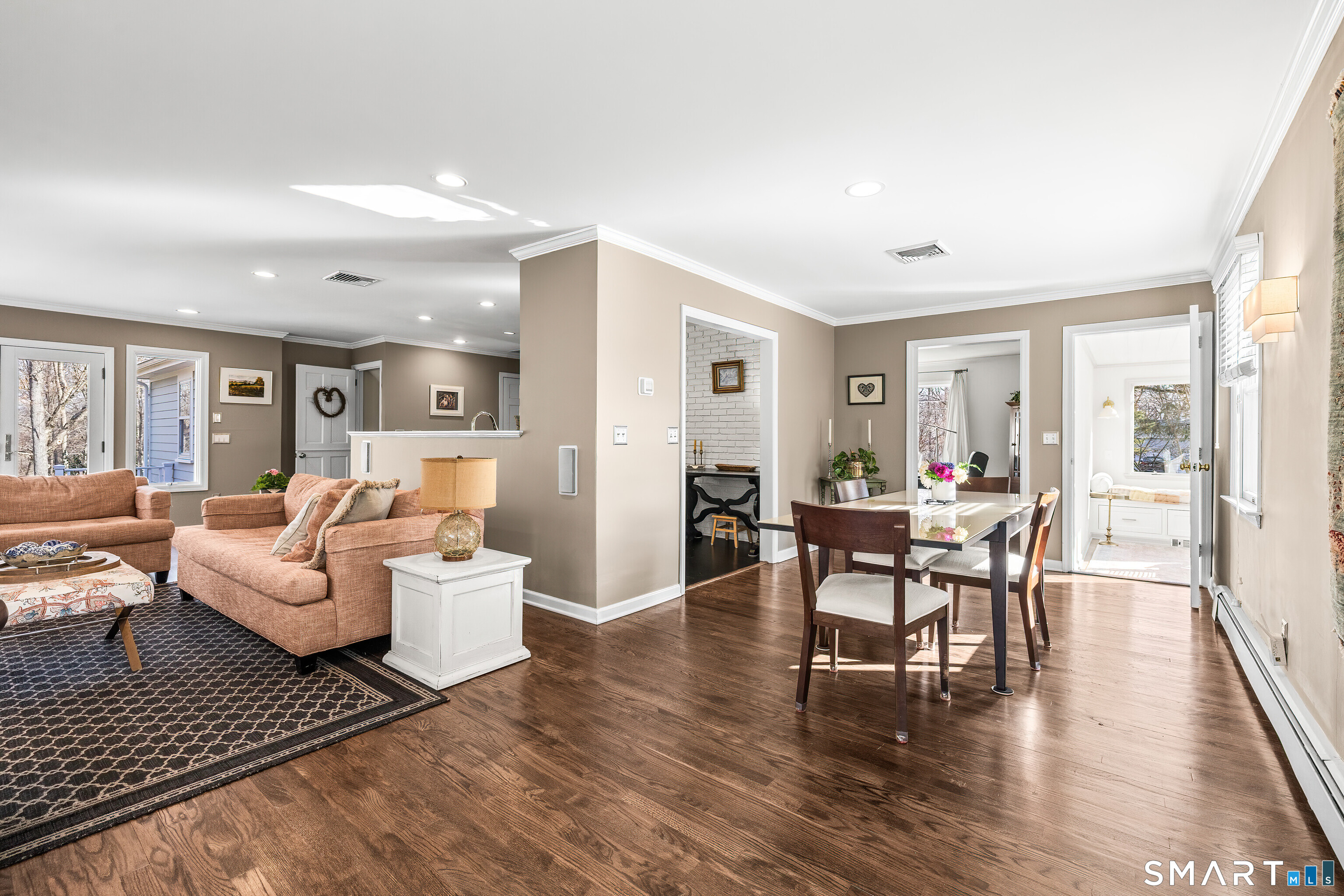 Welcome to this beautifully maintained 3-bedroom ranch, perfectly situated in a peaceful, picturesque setting in sought-after Ridgefield, Connecticut. This home is truly in pristine, move-in-ready condition, offering the perfect blend of comfort, convenience, and timeless appeal. Experience the ease of single-level living within bright, inviting spaces that have been thoughtfully updated throughout. The well-designed, open-concept layout is ideal for both everyday living and entertaining. It features three comfortable bedrooms, an open kitchen/family room, and seamless flow to the outdoor living areas. Versatile flex spaces are ready to serve as your dedicated home office, a workout area, or both. Key features include a full-house generator and durable Hardie Plank siding. Located in one of Fairfield County's most desirable towns, this property offers the best of both worlds: tranquil suburban living with exceptional accessibility. Commuters will appreciate the quick access to nearby Metro-North Railroad stations, offering travel to New York City in under 60 minutes. Enjoy everything that makes Ridgefield special, from its charming downtown, renowned schools, and cultural attractions to its beautiful parks and open spaces-all just moments from your doorstep. This is a rare opportunity to own a meticulously cared-for home in a prime location. Optional membership to Eight Lakes Association and Manamasco Lake Rights. Please note the oven is a convection oven and Induction range. EV charger in garage, Features/Improvment attached.