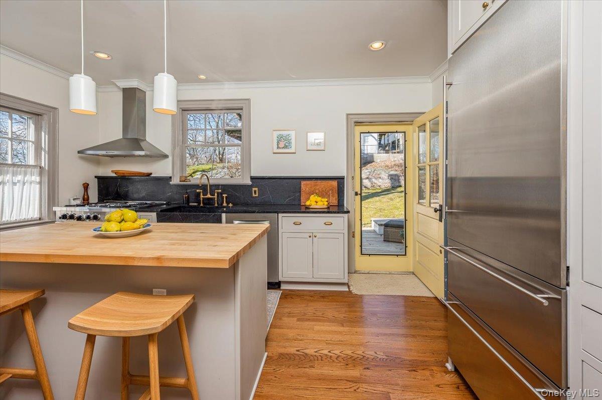 Step into a world of timeless elegance and modern convenience at 21 Kent Ave, a beautifully maintained 1924 Colonial home nestled in the picturesque village of Hastings on Hudson. This stunning move-in ready residence, bursting with original charm, offers the perfect blend of classic architecture and contemporary upgrades, making it an ideal sanctuary. Enjoy generous living spaces with three spacious bedrooms, one downstairs and two upstairs with an additional 2nd floor office/possible 4th bedroom, perfect for accommodating guests. The thoughtfully designed layout includes a convenient half bath on the first floor and full bathroom upstairs. As you approach the home, the enchanting front walkway is lined with fragrant bushes and climbing rose bushes, inviting you into your tranquil retreat. Relax on the charming 9 x 15 ft covered front porch, adorned with beautiful oak plank flooring and bead board ceiling, a perfect spot for morning coffee or evening conversations. The warm and inviting living room features a stunning wood burning stone fireplace, custom built-in shelves, and oversized windows that bathe the room in natural light. This airy space effortlessly flows into the spacious dining room, providing an ideal setting for entertaining friends and family. Culinary enthusiasts will fall in love with the expansive, fully renovated kitchen, complete with custom cabinetry and high-end stainless-steel appliances, including a 36” high-BTU Blue Star range, Liebherr refrigerator, and Bosch dishwasher. The soapstone countertops and elegant backsplashes make cooking a delight. Step outside to a large 12 x 27 ft pressure treated wood deck that overlooks the lush backyard perfect for al fresco dining or weekend barbecues. Venture upstairs to discover two generously sized bedrooms with ample closet space, along with additional office/4th bedroom featuring custom built-ins for your workspace needs. The peaceful ambiance makes this the perfect retreat after a long day. The full unfinished basement offers a workout area, washer and dryer, and plenty of storage. Recent upgrades include a French drainage system (2019) and a sump pump, ensuring peace of mind during inclement weather. Enjoy year-round comfort with the newly installed energy-efficient dual-zoned heat pump HVAC system (2022), providing both central air and heat for optimal climate control throughout the home. The home also has a separate gas-powered generator backup system that automatically engages if and when power is interrupted, along with an outside Tesla wall connector for electric vehicle charging. This delightful home, in highly sought-after Hastings on Hudson, offers a charming village atmosphere with easy access to local parks, shops, and dining. Residents can enjoy the beauty of the Hudson River, numerous outdoor activities and a vibrant community spirit. Commuters will appreciate the convenience of nearby Metro North and other transportation options, making travel to NYC a breeze. Don’t miss your chance to own this remarkable colonial gem at 21 Kent Ave, where classic charm meets modern living. Schedule a private tour and envision your new beginning in the enchanting home.