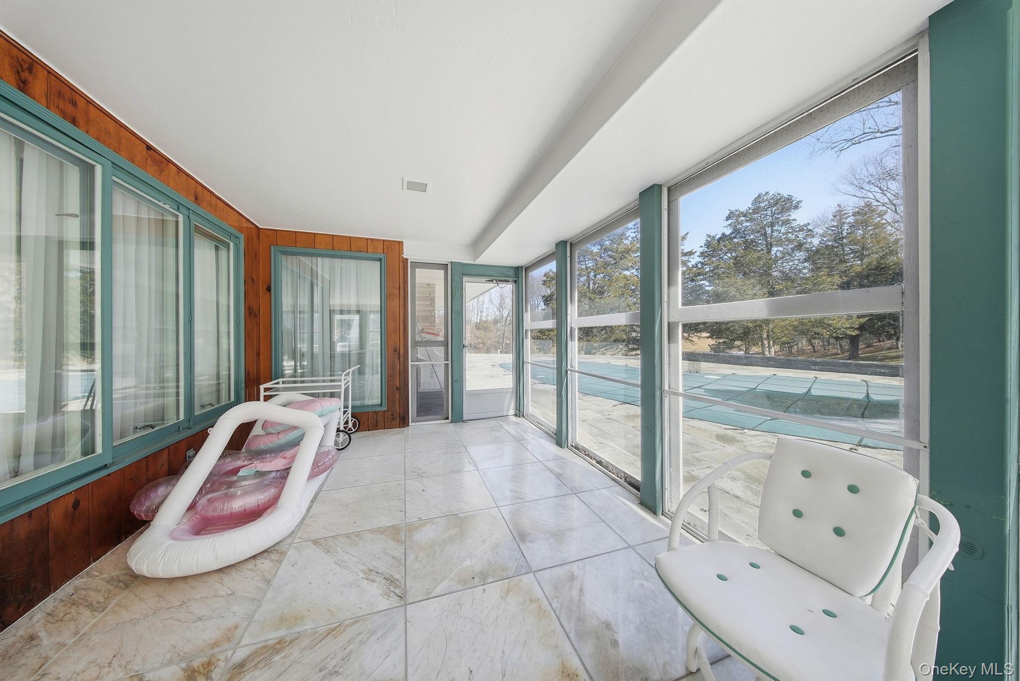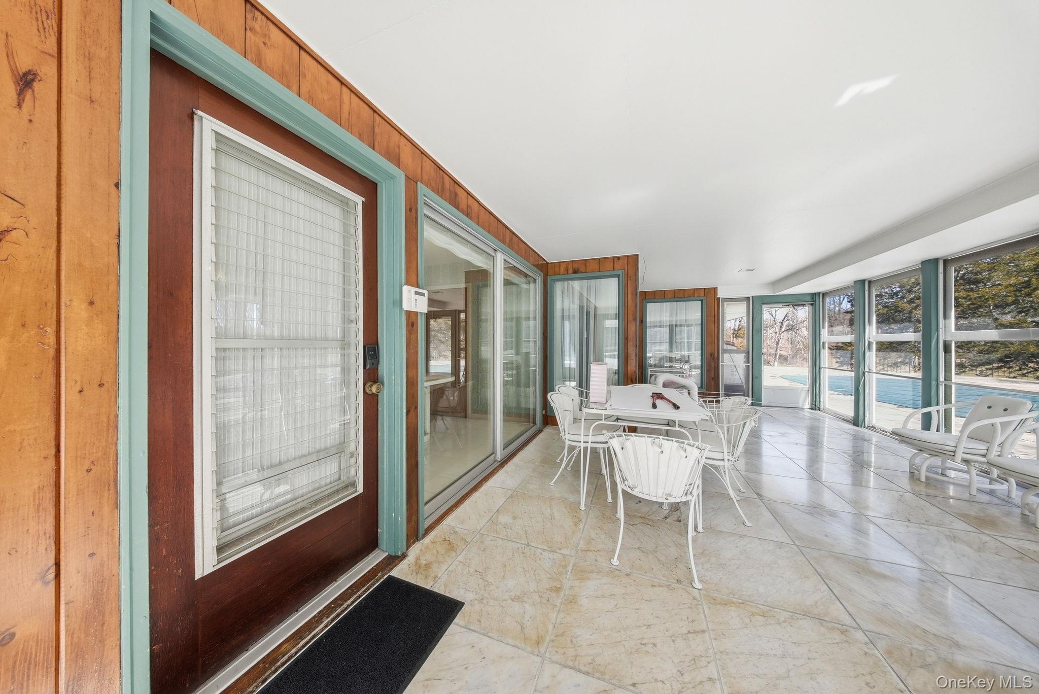Welcome to your ultimate private oasis in the Town of Warwick! Set on a sprawling 15. 5-acre estate complete with a tranquil pond and stream, this stunning, expansive Ranch offers nearly 3, 200 square feet and more of luxurious living space. Boasting 3 spacious bedrooms, 4 full bathrooms, this home is thoughtfully designed for both grand entertaining and everyday comfort. Step inside to a sun-drenched, open floorplan featuring soaring cathedral ceilings, exquisite original details, and a magnificent eat-in kitchen equipped with granite countertops, all appliances, a wet bar with direct access to a large sunroom with marble tile overlooking the gunite pool. Relax by the fireplace in the family room or retreat to the luxurious primary suite with sliders to a new trex deck/railings overlooking your private pond, complete with a walk-in closet and a renovated primary bath with stand up shower. The layout offers incredible versatility, featuring a convenient 1st-floor bedroom and full bath, as well as an ideal in-law floorplan setup. A full walk-out basement provides even more potential. Outside, your resort-style backyard awaits. Entertain by the private pool with over 2000 sf bluestone patio, wander the beautifully landscaped grounds bordered by classic stone walls, or enjoy the serenity of your own private pond waterfront with dock and bridge crossing to open land and wooded trails totally surrounded by Town preserved land. Complete with a 2-car garage, central air, and a generator, this unique property seamlessly blends secluded country living with modern convenience. Don't miss this rare find priced to sell!