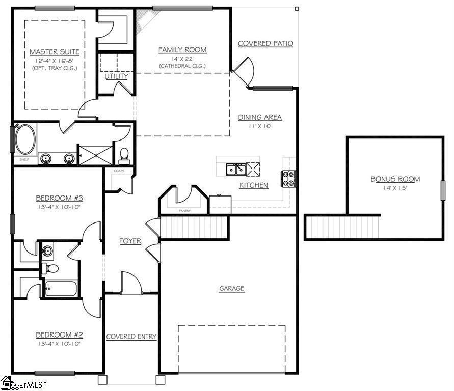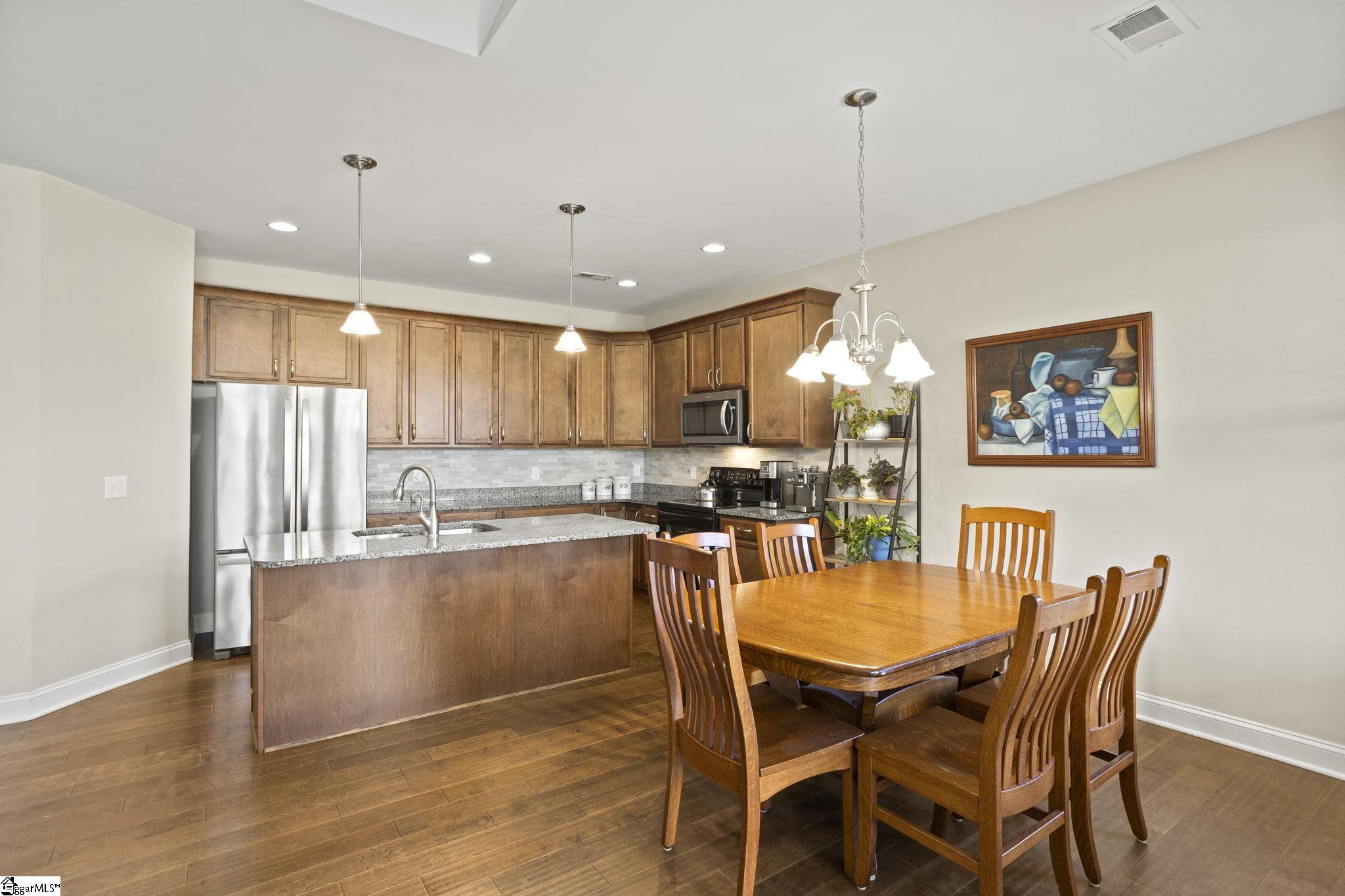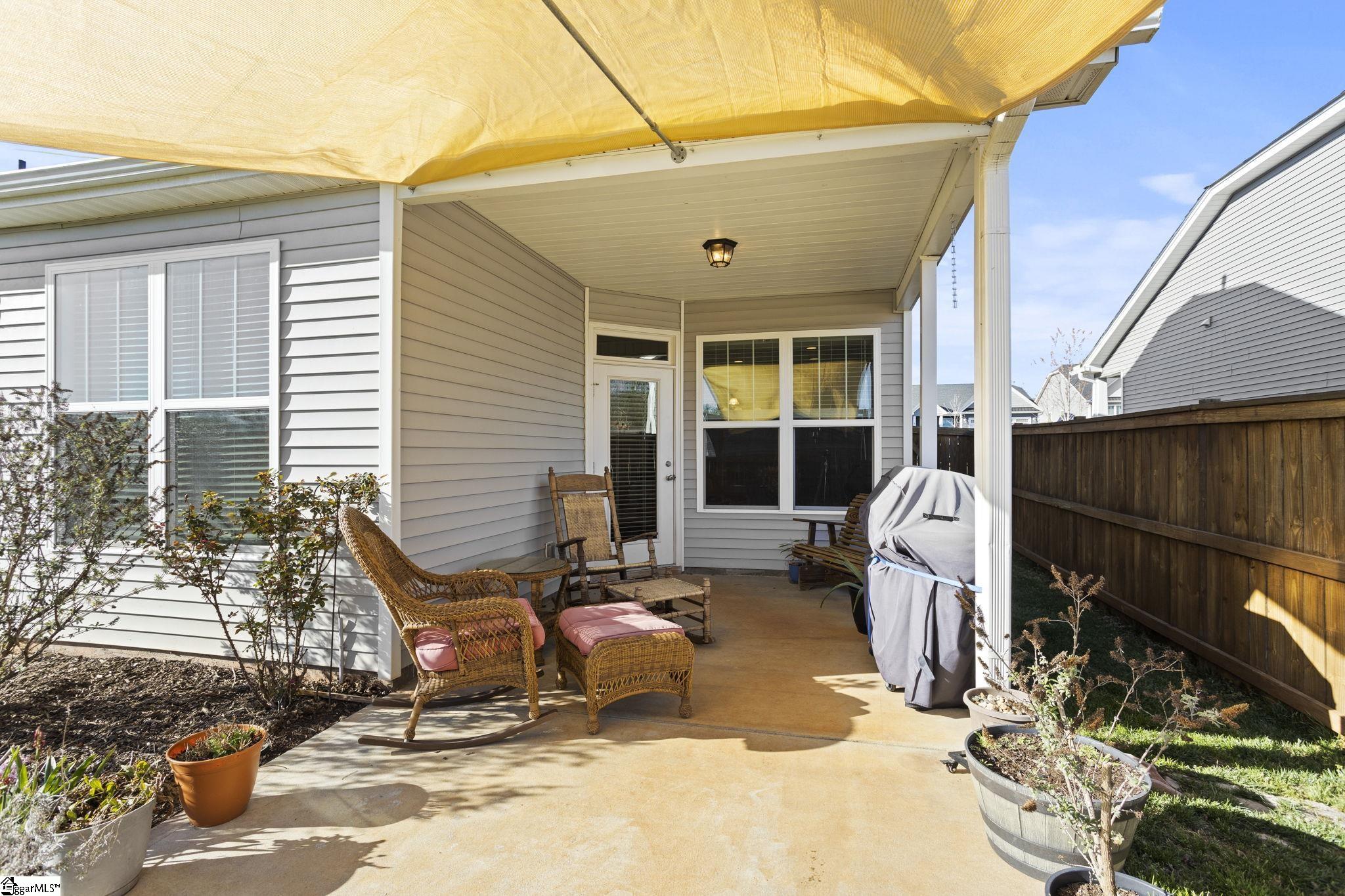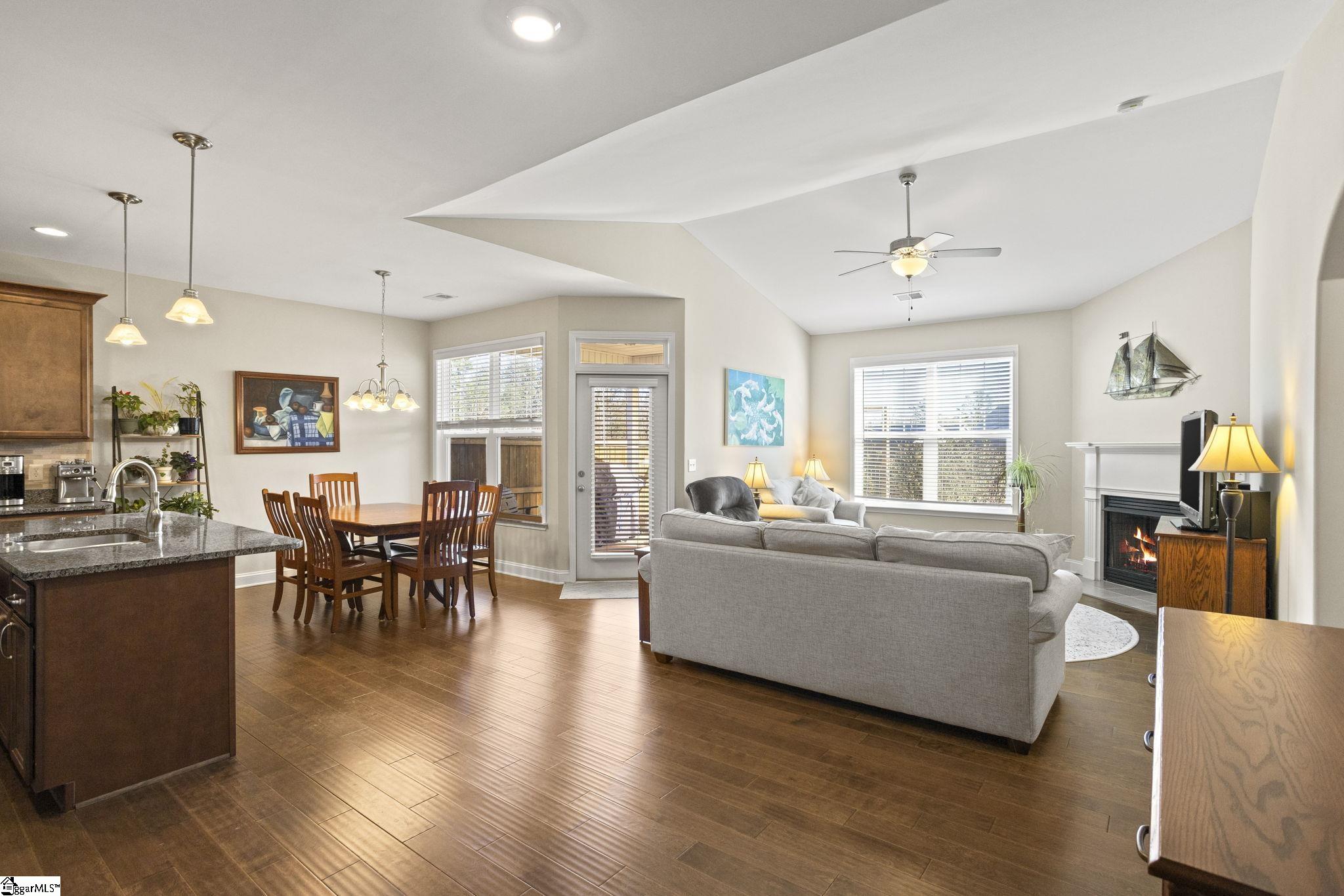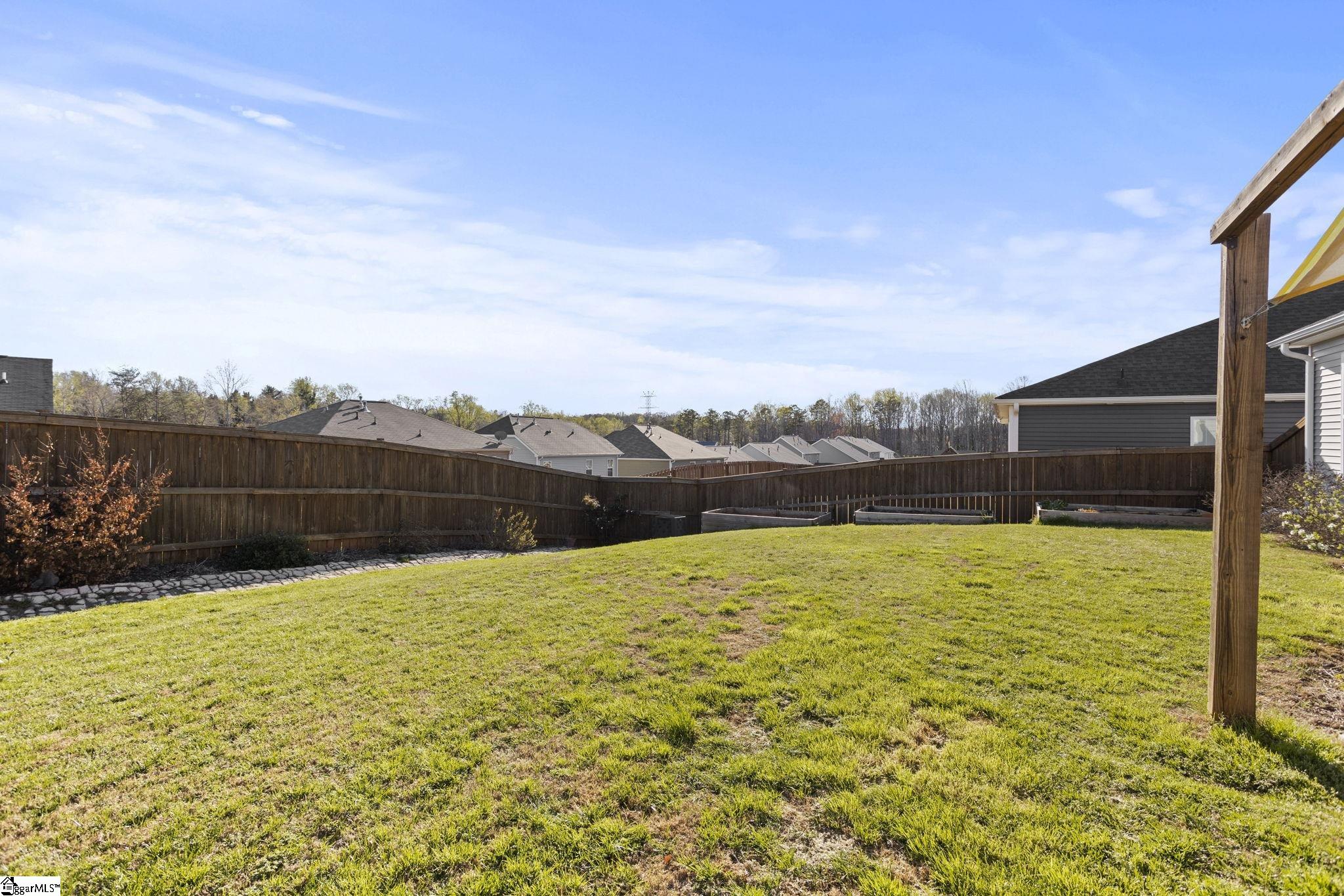 Welcome home to Katherine's Garden located just minutes from the historic, charming and vibrant downtown Greer. This split bedroom floor plan provides endless flexibility. The large kitchen has a ton of storage plus a walk-in pantry, the kitchen island in the heart of the kitchen and is perfect for a casual meal or conversation while entertaining. The dining area opens to the large living room with high ceilings. and a cozy fireplace. If you want to entertain outside, you have a fenced yard, covered back porch plus an additional patio perfect for grilling. The primary bedroom has double sinks, shower with a separate soaking tub and a huge walk in closet. The garage is oversized and there is plenty of room for a work bench.