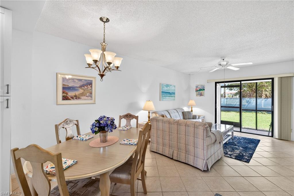 Welcome to Fairways at Par Four, a vibrant 55+ community in the heart of Naples. This well-maintained first-floor residence offers two bedrooms and two baths, highlighted by a bright, open floor plan designed for easy Florida living. The spacious living and dining areas flow seamlessly into a beautifully updated kitchen featuring crisp white shaker cabinetry, soft-close doors and drawers, and elegant quartz countertops. From your screened lanai, enjoy peaceful mornings with a cup of coffee while watching golfers pass by. The primary suite offers a walk-in closet and a private en-suite bath with a walk-in shower. A comfortable guest bedroom and full bath with a tub and shower combination provide the perfect space for visiting family and friends. Tile flooring throughout enhances both style and low-maintenance living, creating a clean, coastal feel. Residents of Par Four enjoy an active lifestyle with a wide array of amenities, including tennis, pickleball, shuffleboard, billiards, a heated community pool, and a full calendar of social events. Exciting enhancements are on the horizon, with the new Gate Golf Club expected in late 2026. This upcoming addition will feature a nine-hole public golf course, illuminated driving range, putting greens, and a bar and restaurant for casual dining and social gatherings. Ideally located just minutes from shopping, dining, and the sugar-sand beaches of the Gulf, this home offers the perfect blend of comfort, convenience, and lifestyle. Don’t miss your opportunity to own a piece of sunny Southwest Florida living