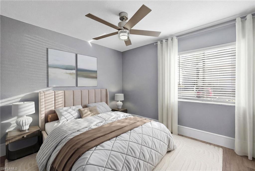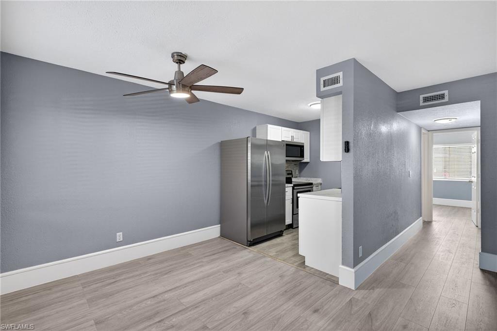 quartz countertops, tile backsplash, and stainless-steel appliances, while both the primary and guest bathrooms have been tastefully renovated with glass-enclosed walk-in showers, marble-look tile, pebble-style shower flooring, modern vanities, updated fixtures, and contemporary lighting. The spacious primary suite includes an ensuite bath and a walk-in closet. Additional upgrades include a freshly painted interior and upgraded 7-inch baseboards. Assigned parking is conveniently located directly in front of the unit, with additional guest parking available. Abaco Bay is a charming Key West–inspired community offering a pool, clubhouse, BBQ and picnic areas, bike storage, and on-site laundry with low monthly condo fees, creating a convenient and maintenance-friendly condominium lifestyle. Located in the heart of the dynamic Bayshore Arts District, residents enjoy close proximity to Celebration Park, Naples Botanical Garden, Sugden Regional Park, Bayview Park boat launch, and the renowned East Naples Community Park, home of the U. S. Open Pickleball Championships. Just minutes to Downtown Naples, 5th Avenue South, Naples Bay, and the Gulf’s white-sand beaches, this location places some of Naples’ most desirable lifestyle destinations within easy reach. Ideal as a full-time residence, seasonal retreat, or investment property, this rental-friendly community allows leases up to four times per year. With